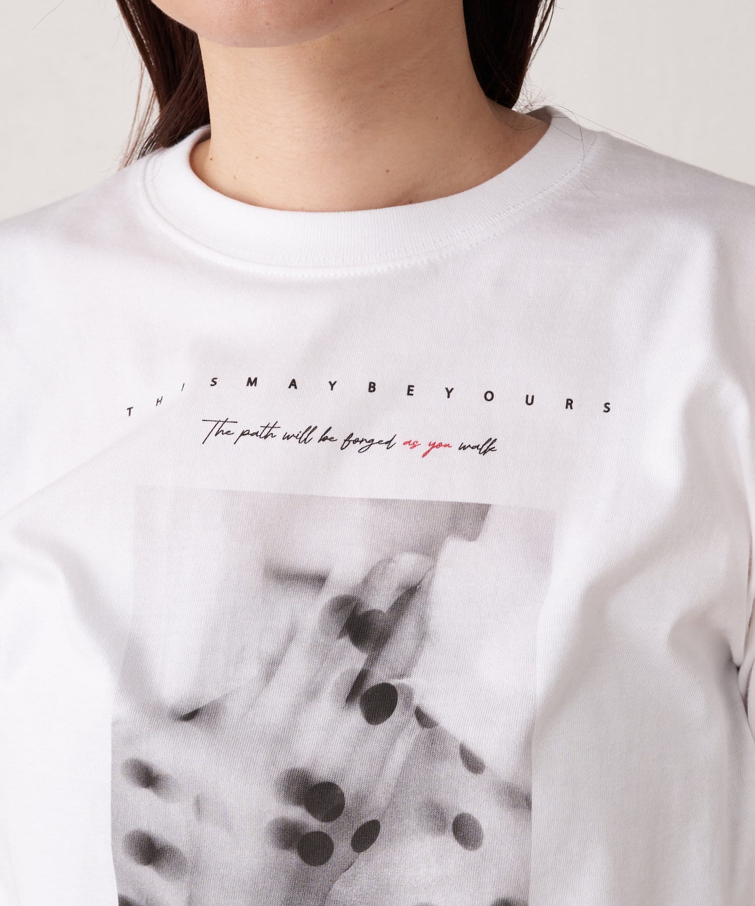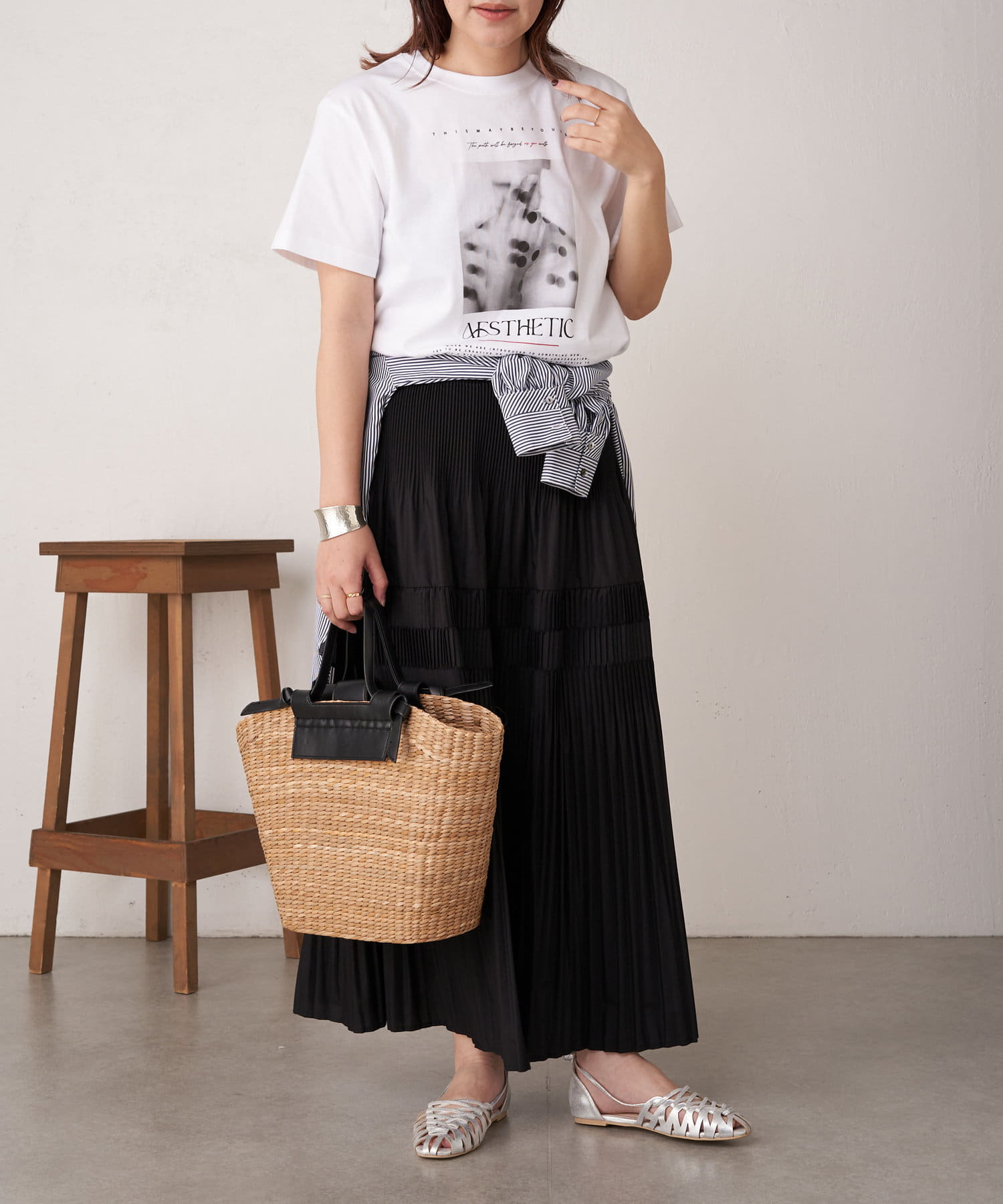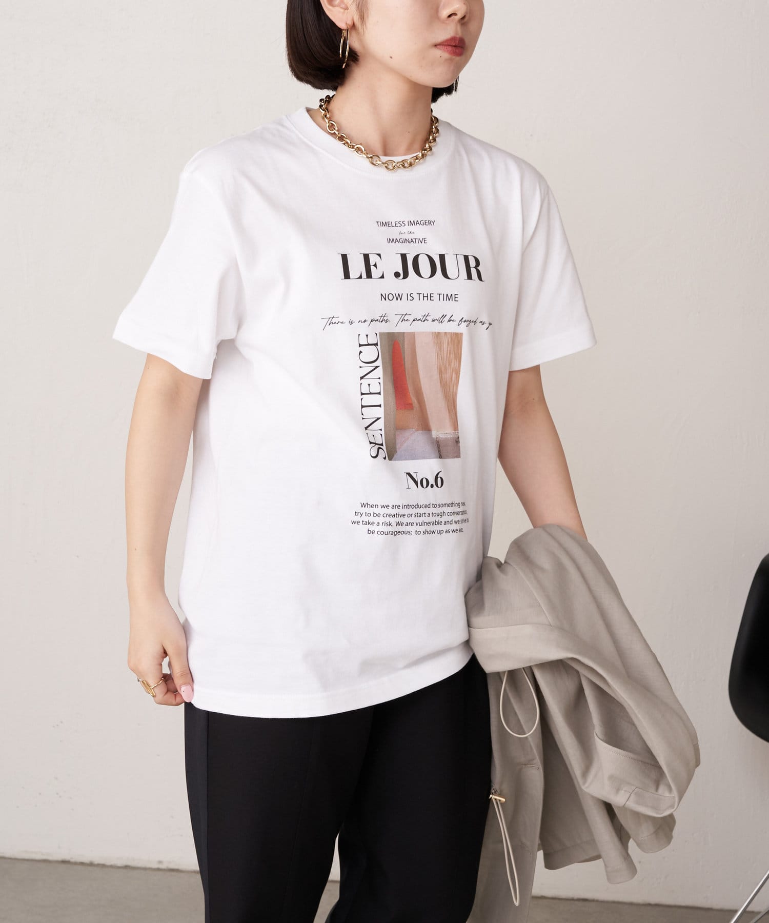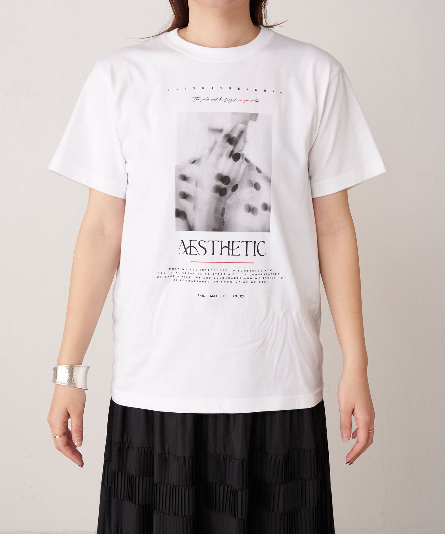 ・モノクロのフォトプリントがモード感が溢れる一枚です。