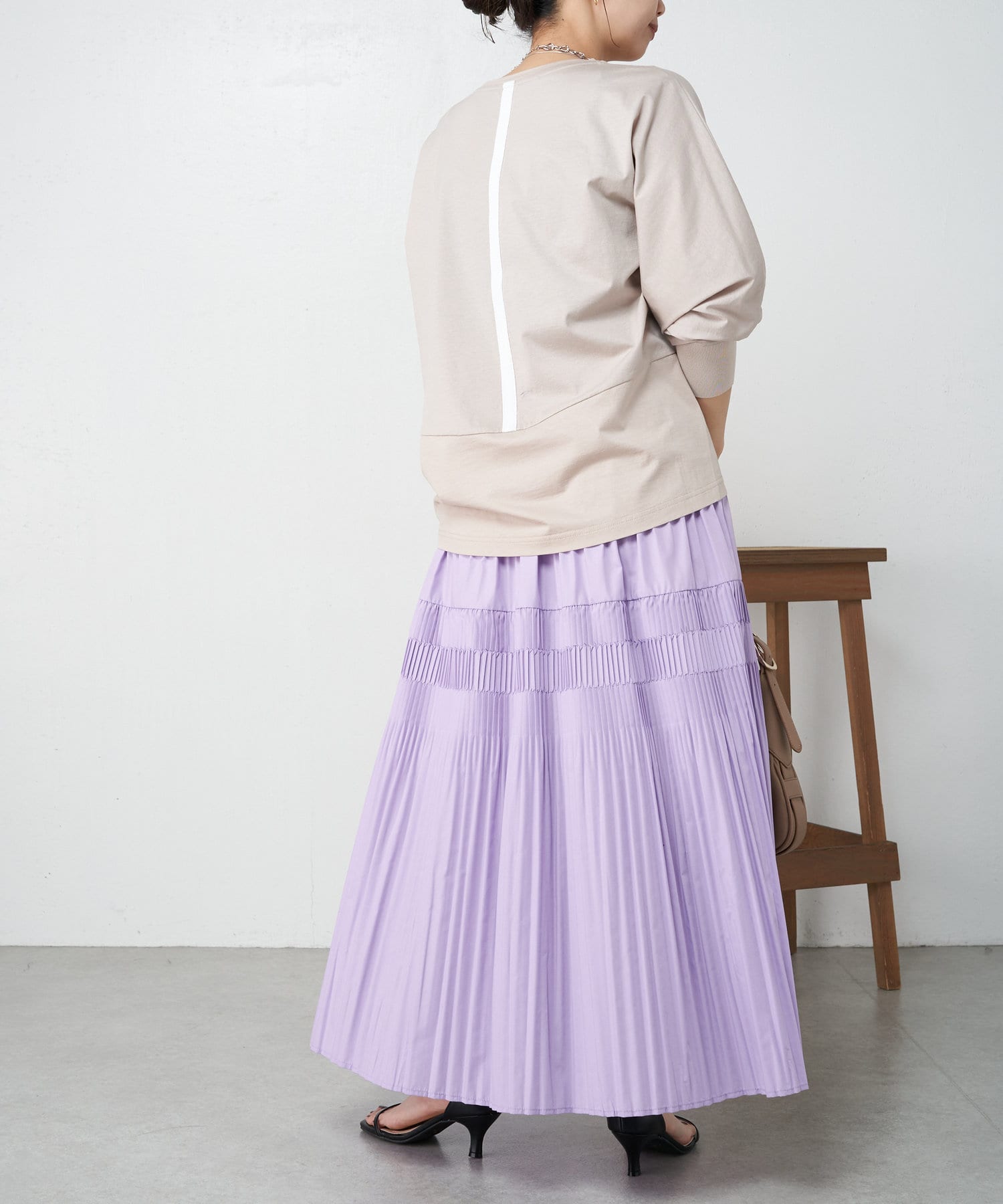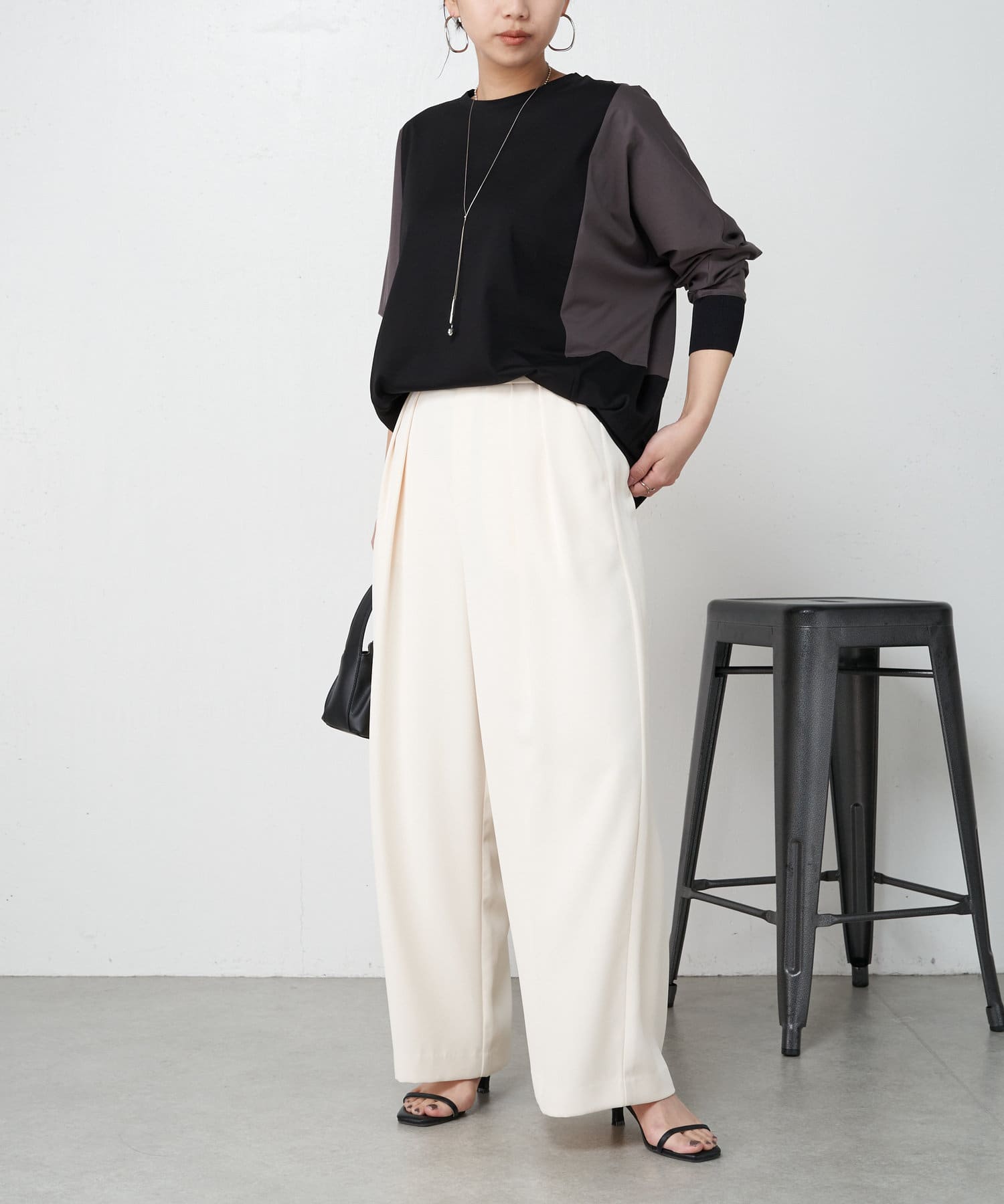 ・ワイドパンツや、ロングスカートとも相性抜群のトップス。