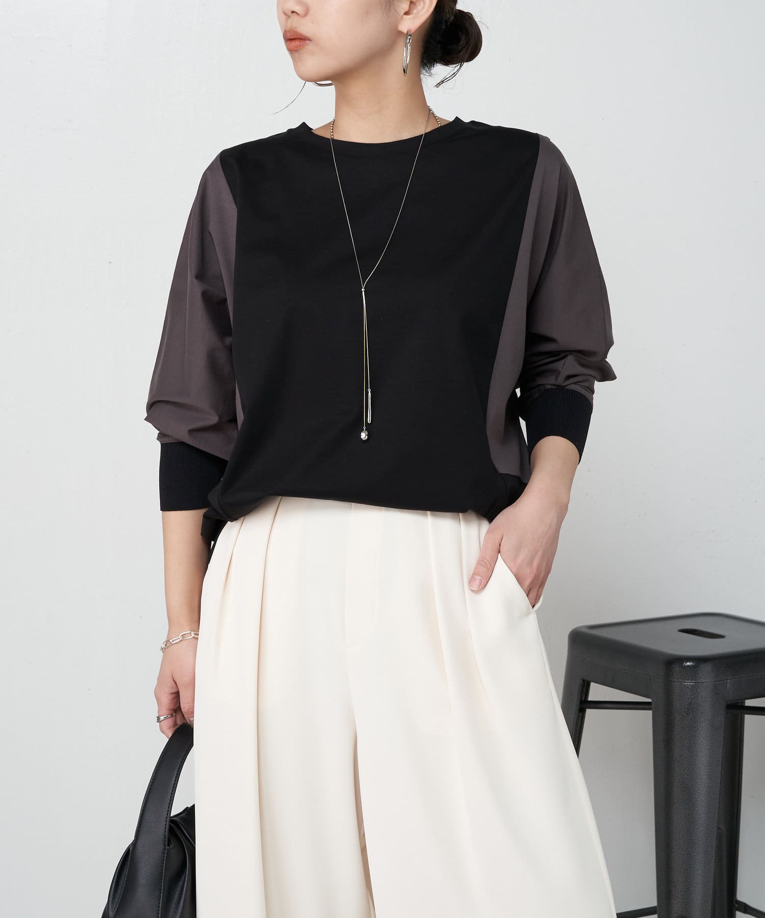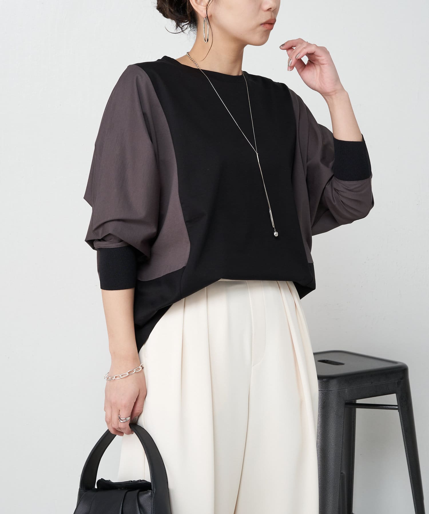 配色ドルマンカットソー