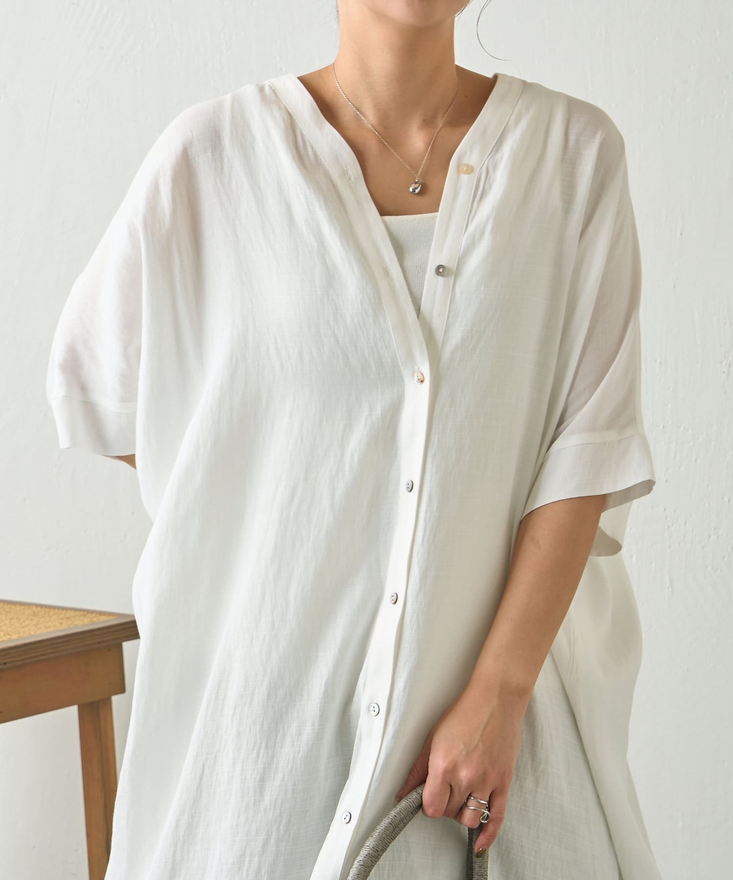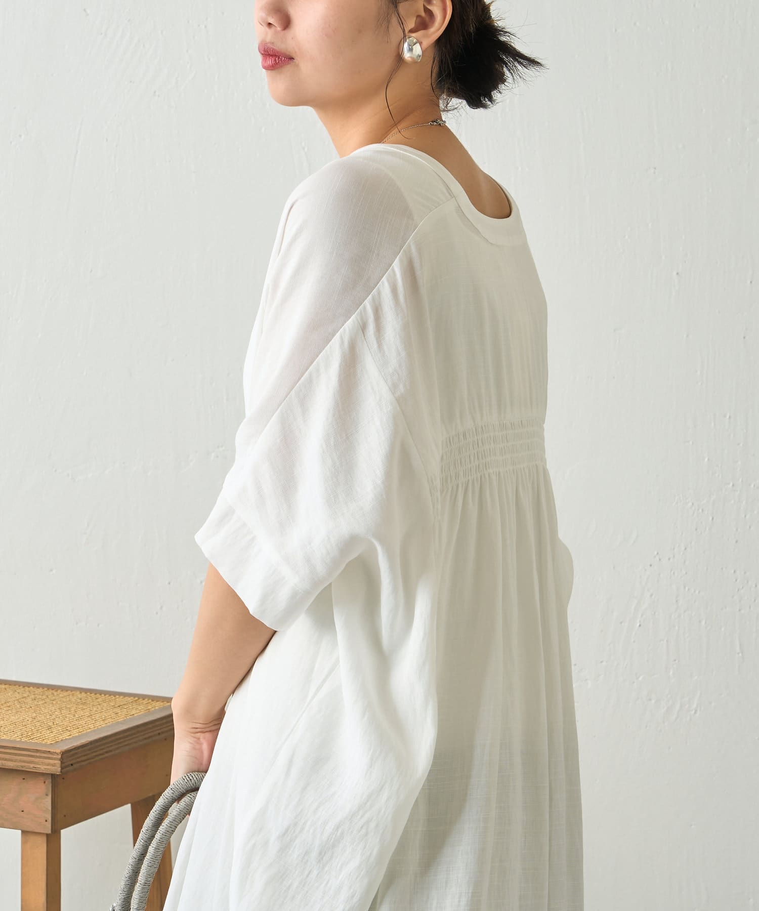 ・リネンライク素材がドライタッチの肌触りの良い質感で、上品見えも叶います◎