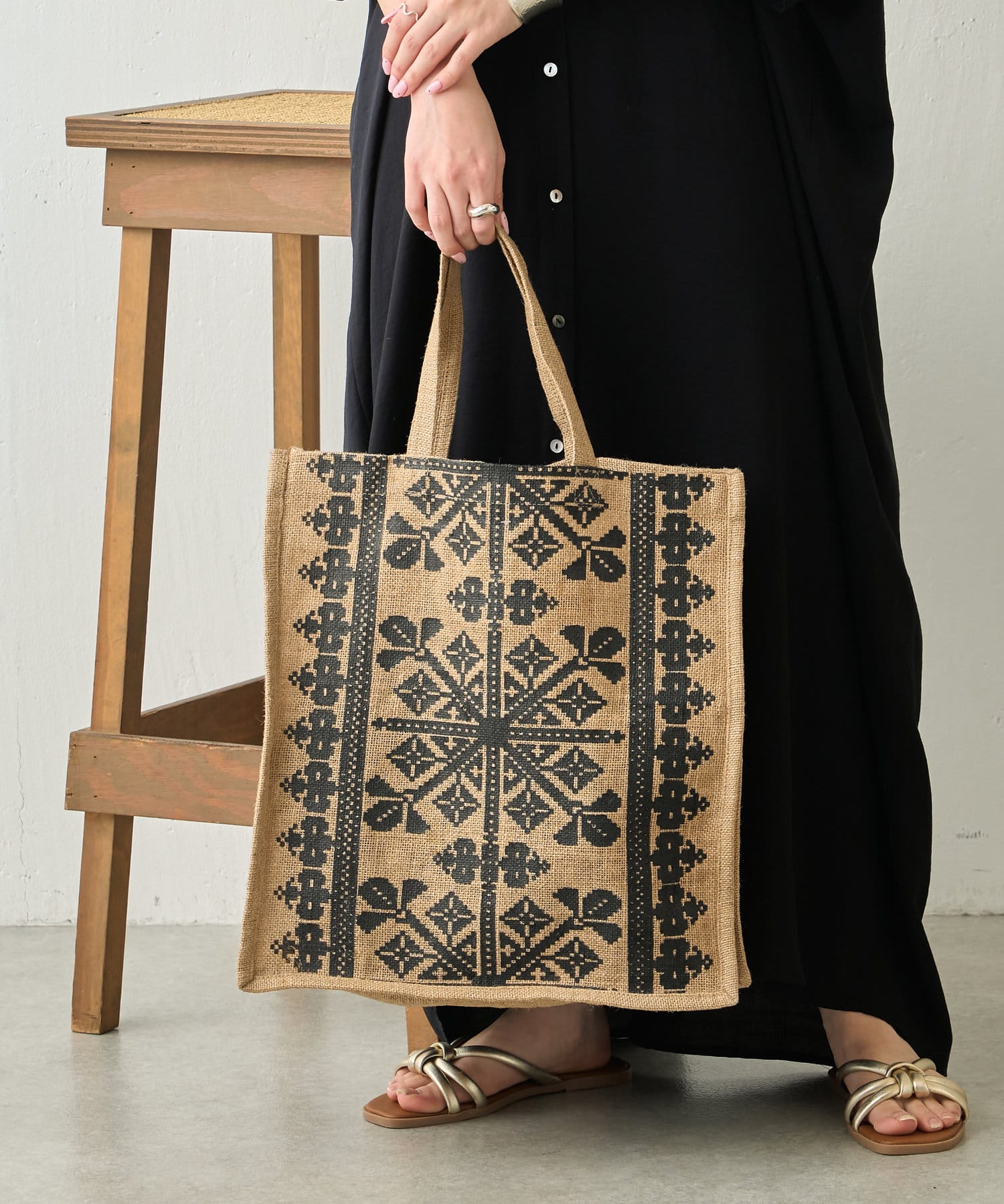 ・ジュート素材のナチュラルな風合いのトートバッグ。