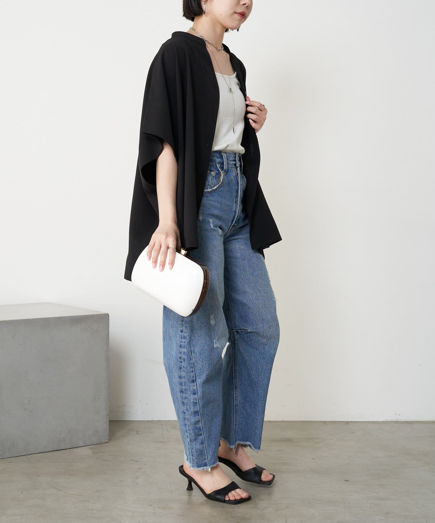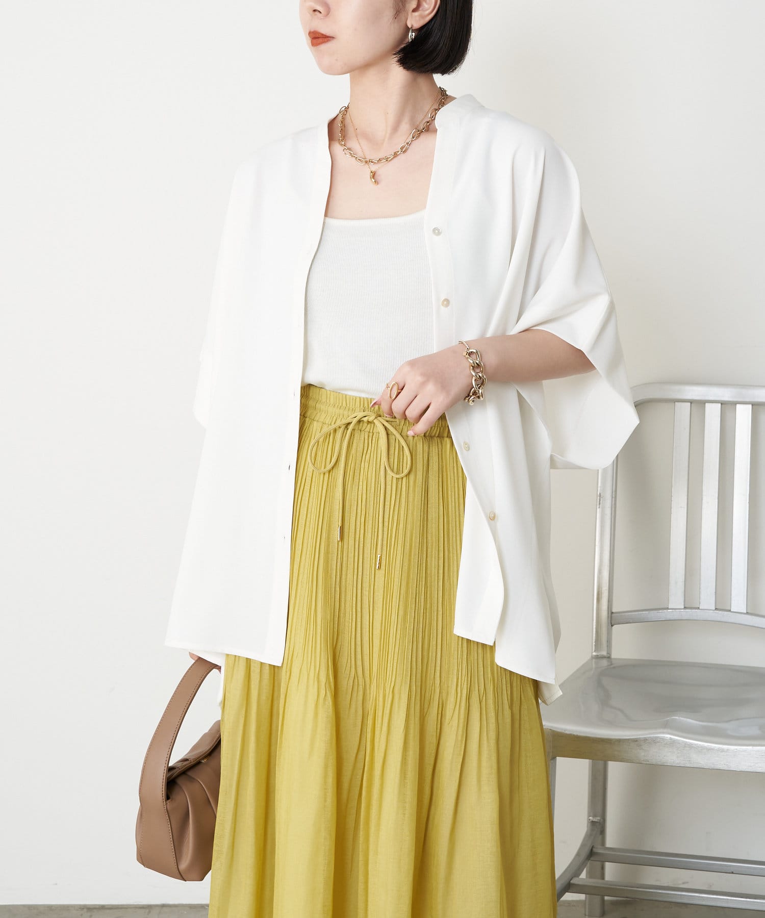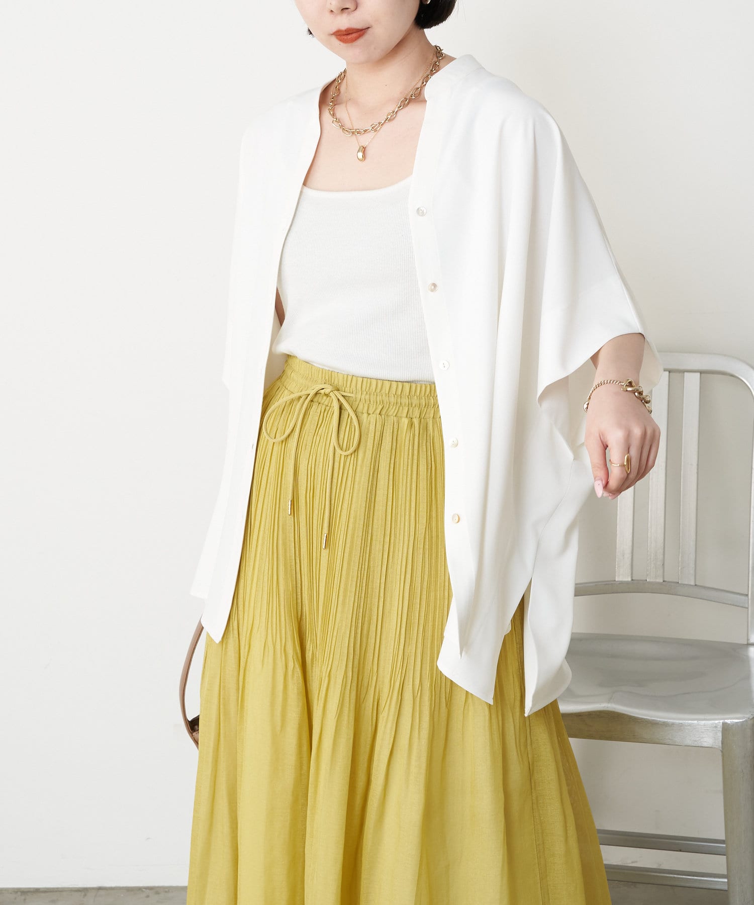・キレイめな生地感なので、スリムパンツやスラックスを合わせてオフィスカジュアルにもぴったり。