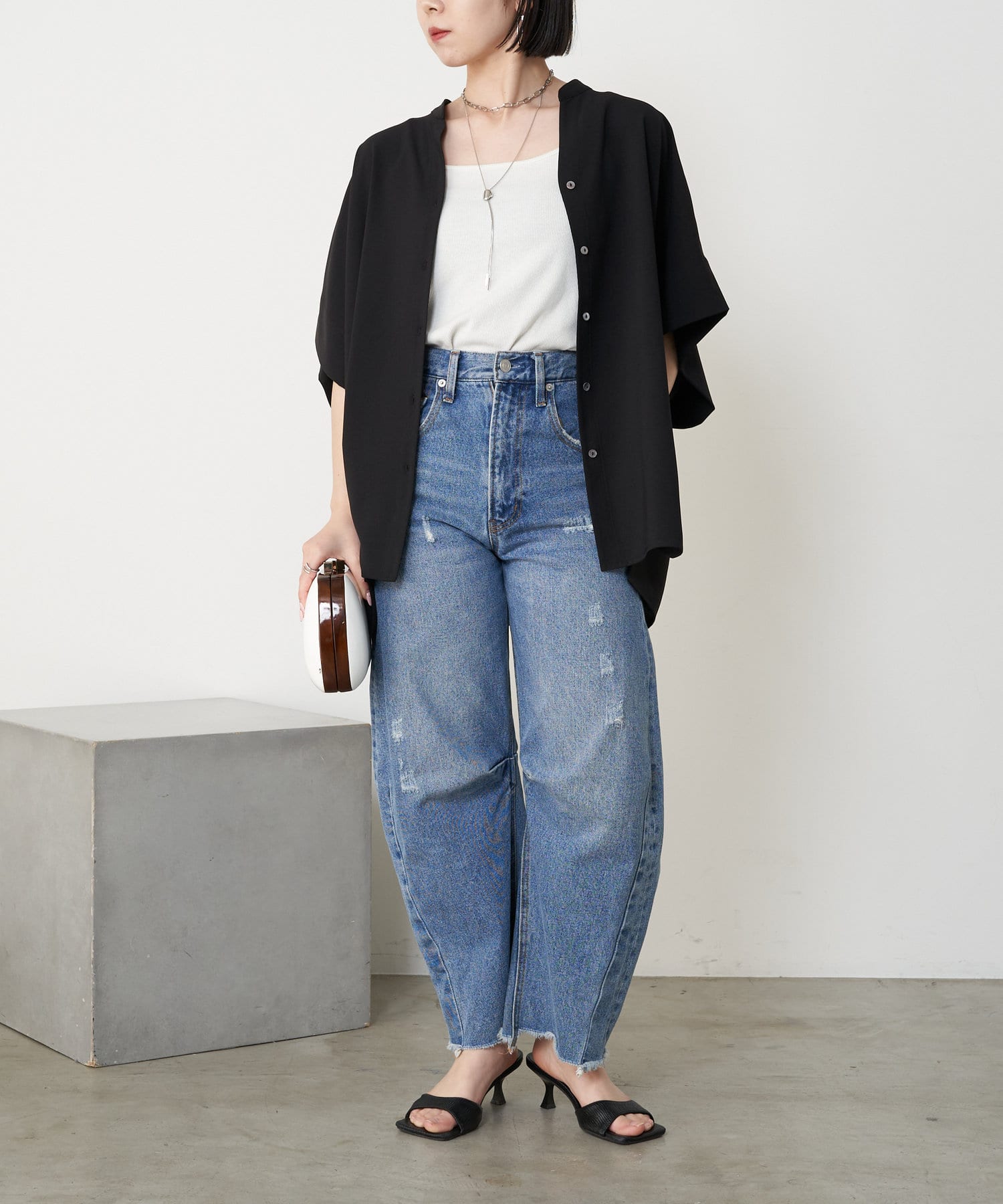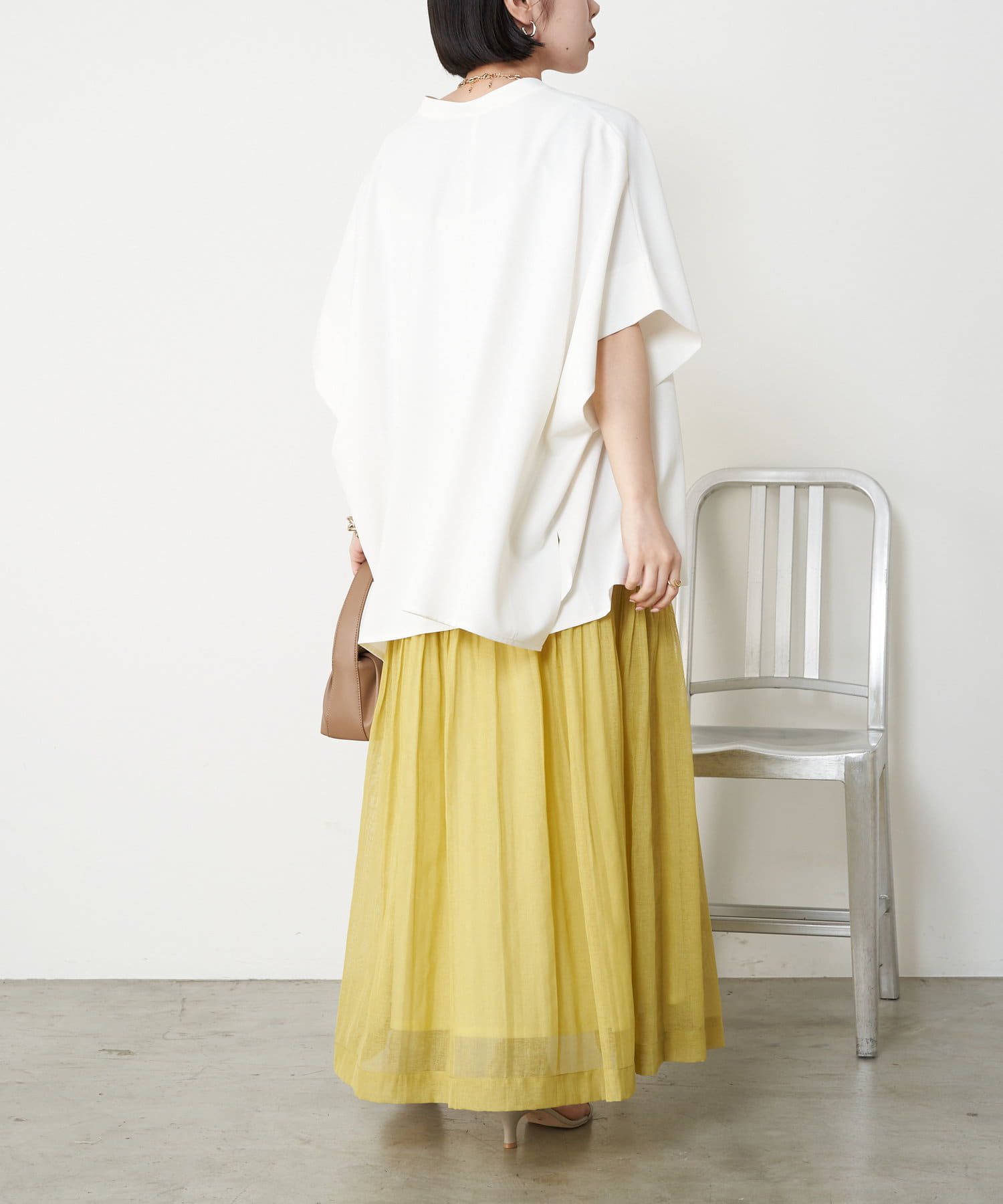 ・首周りがスッキリしている分、身頃と袖はゆったりとしたシルエットでリラクシーな着心地です。