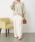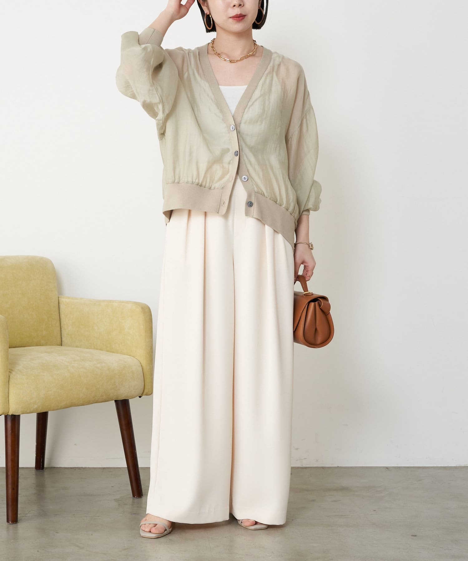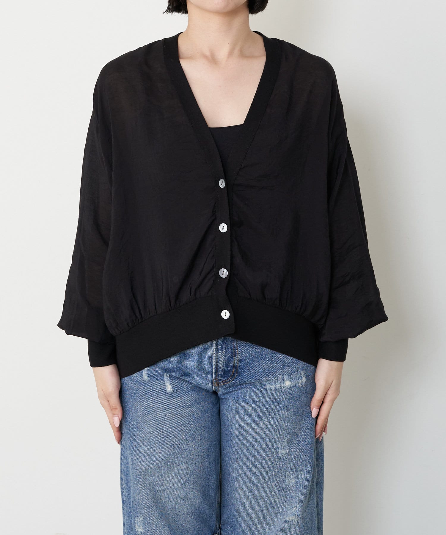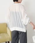 ・シャツ×ニットの異素材ミックスがお洒落なシアーカーディガン。