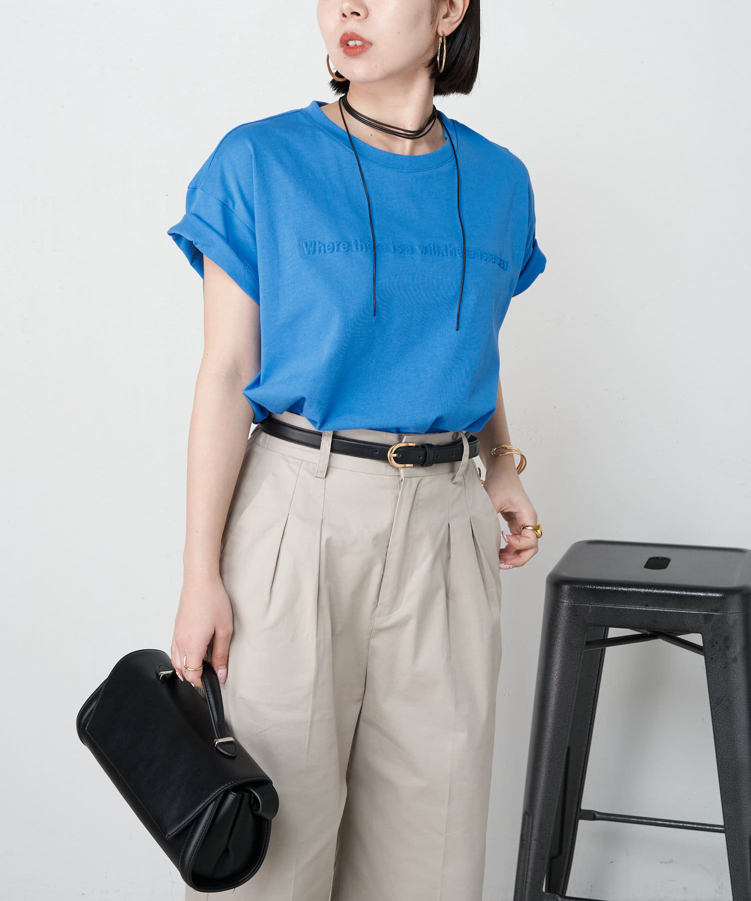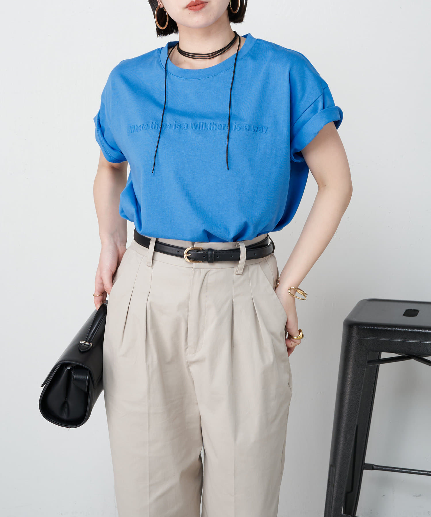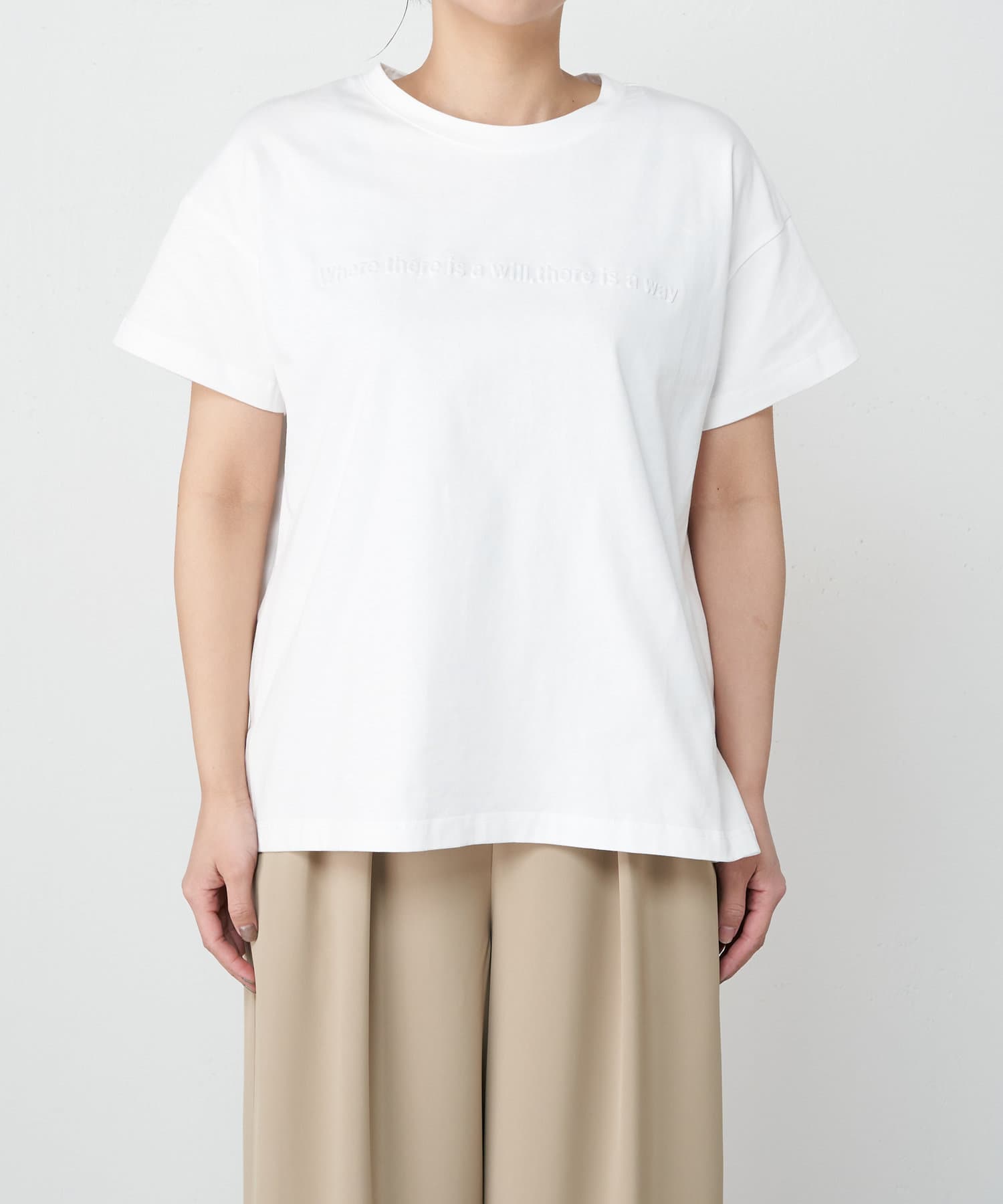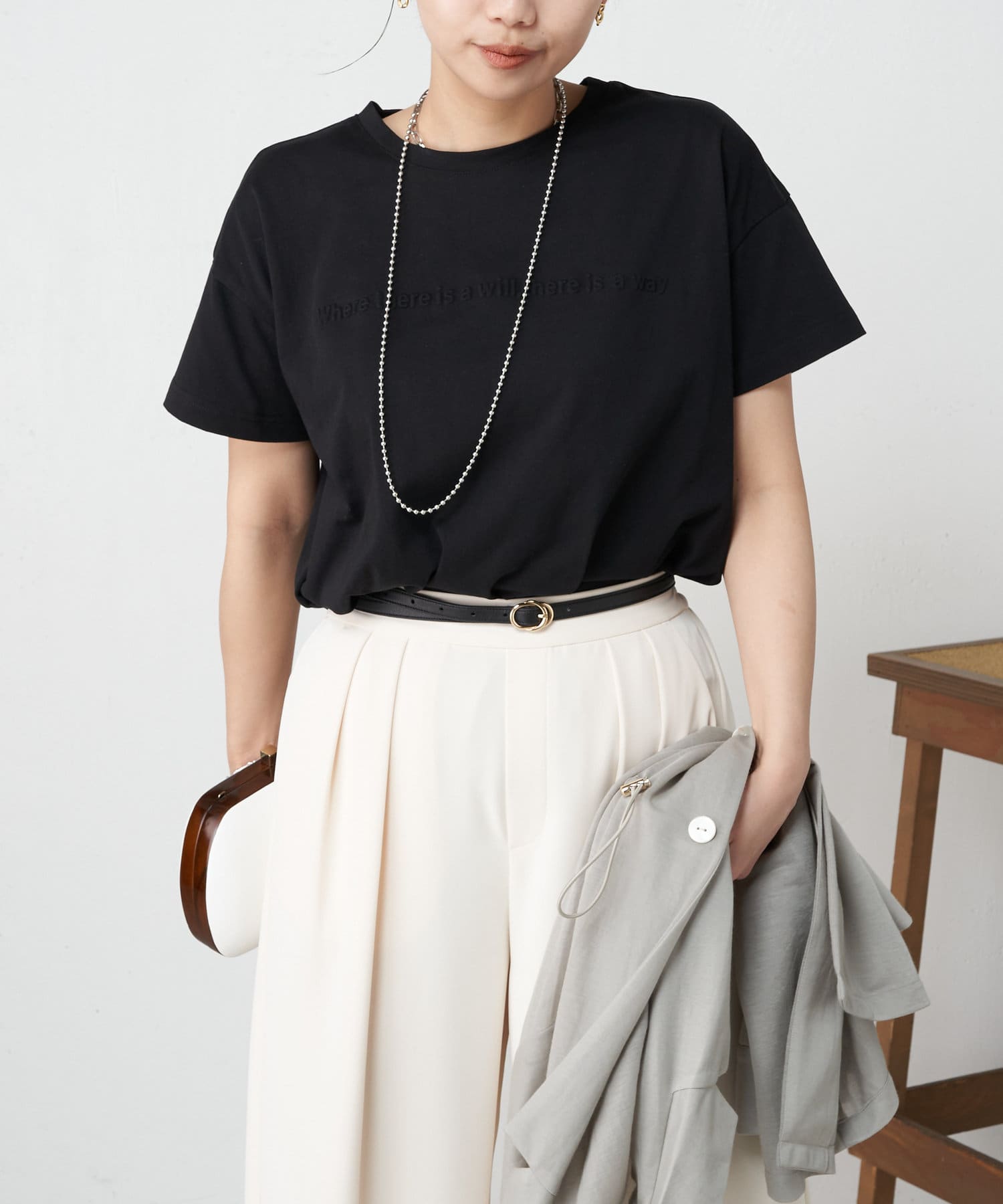 ・エンボス加工の凹凸デザインでロゴを表現。普通のTシャツとは少し違った雰囲気で楽しめます。