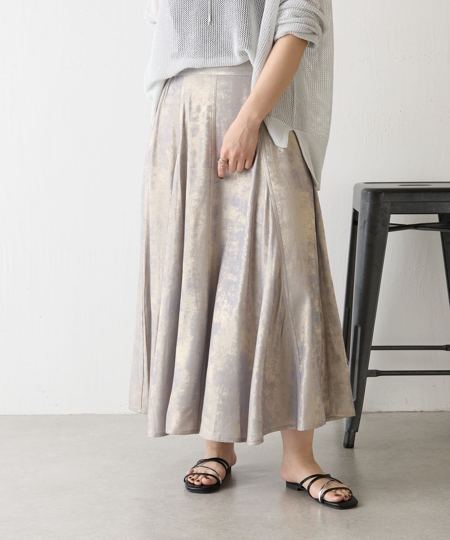 ・動きのある柔らかな雰囲気の箔プリントスカート
