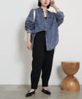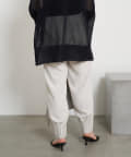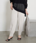 ・テーパードシルエットと裾のタックが新鮮な美シルエットパンツ。