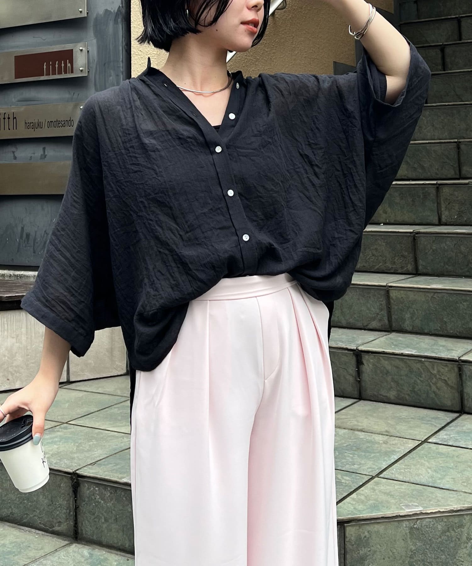 ・前身ごろはミドル丈ながら、ドルマンスリーブで横幅があるのでゆったりとご着用いただけます。