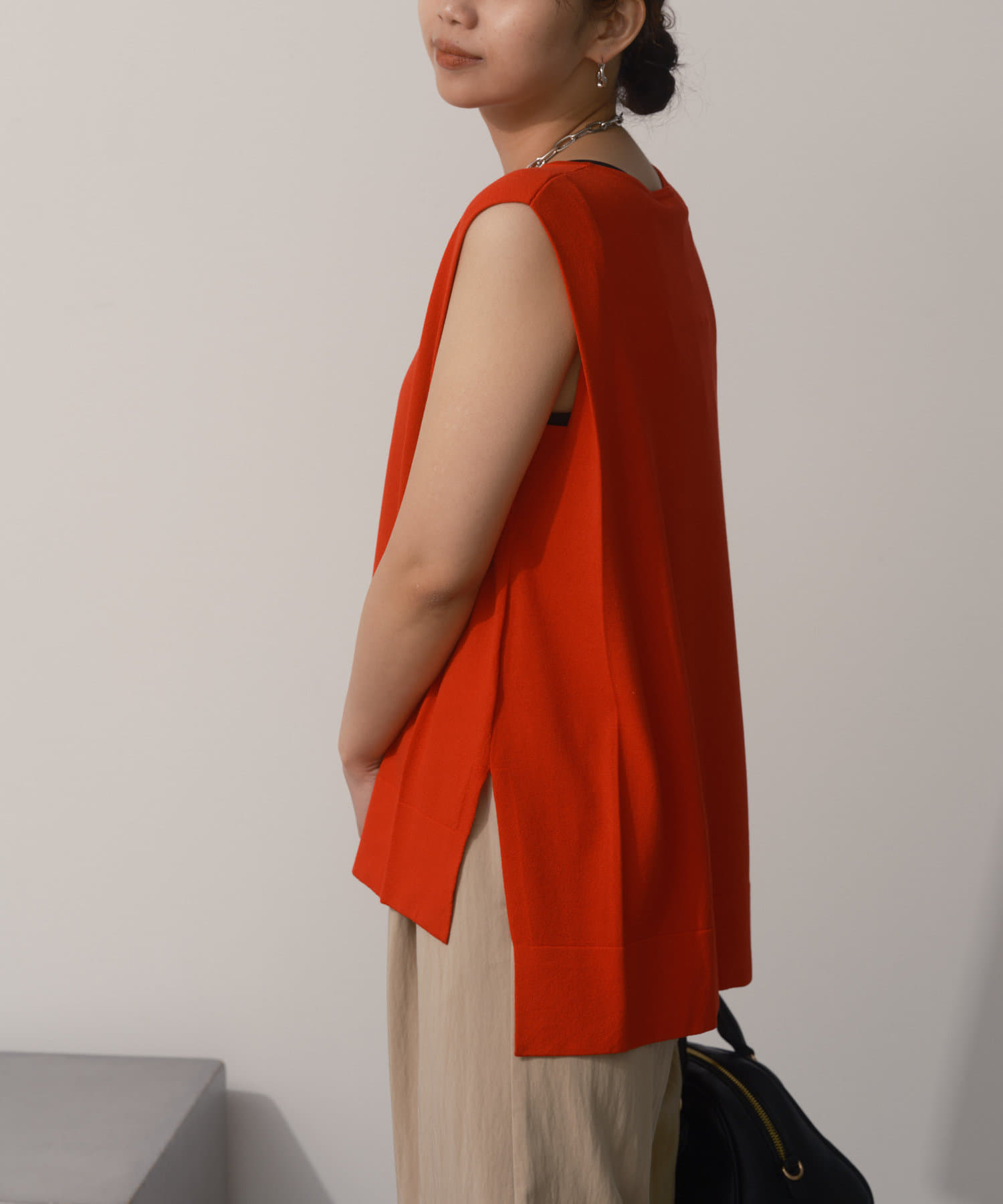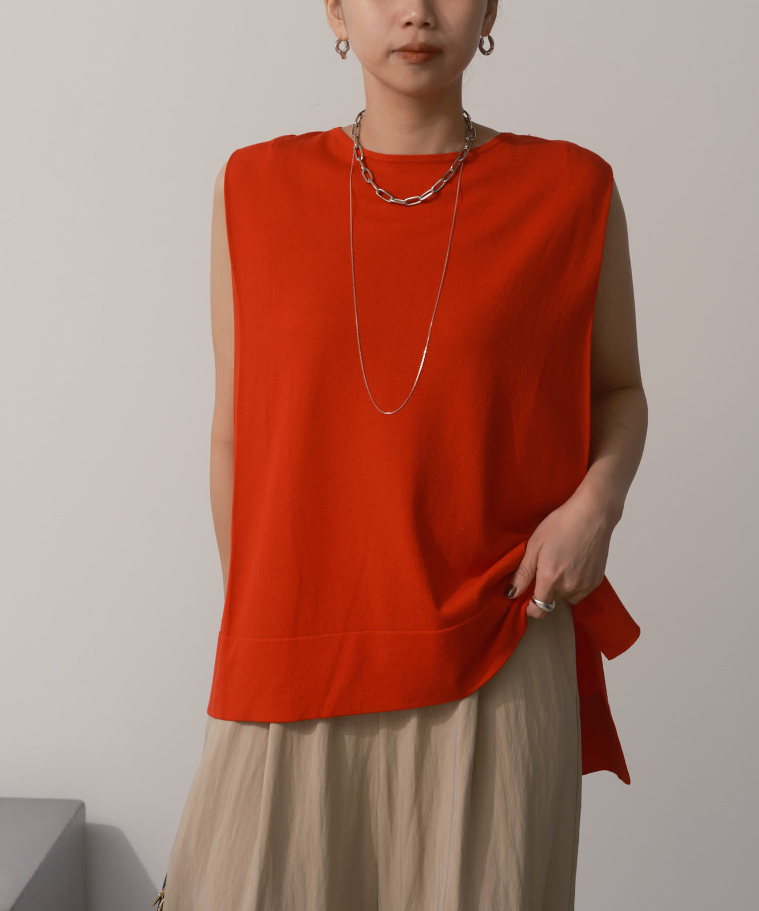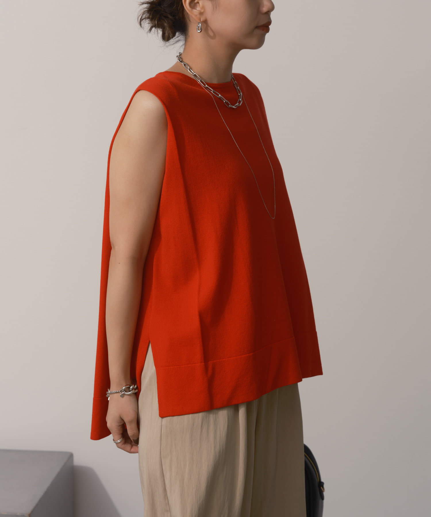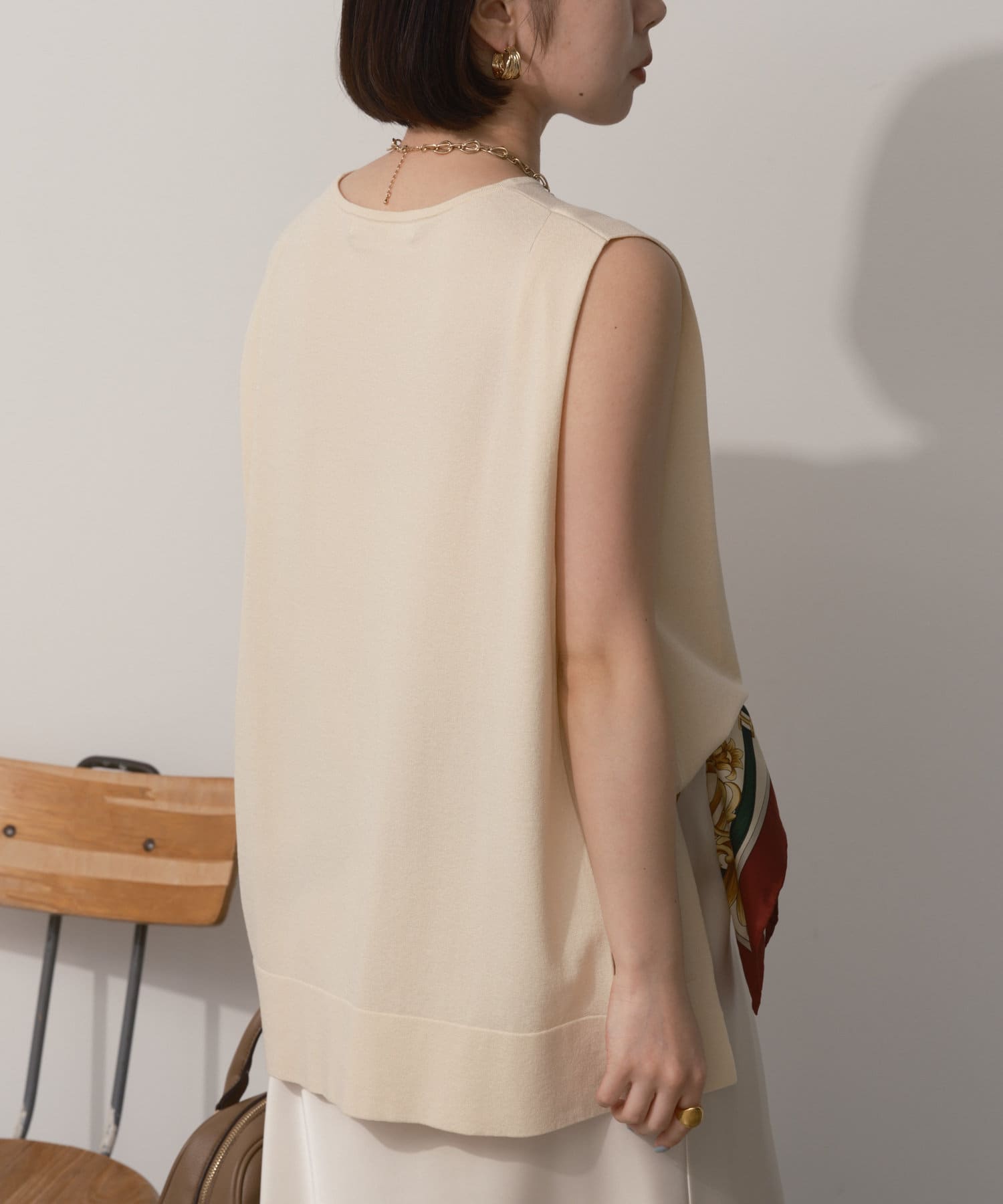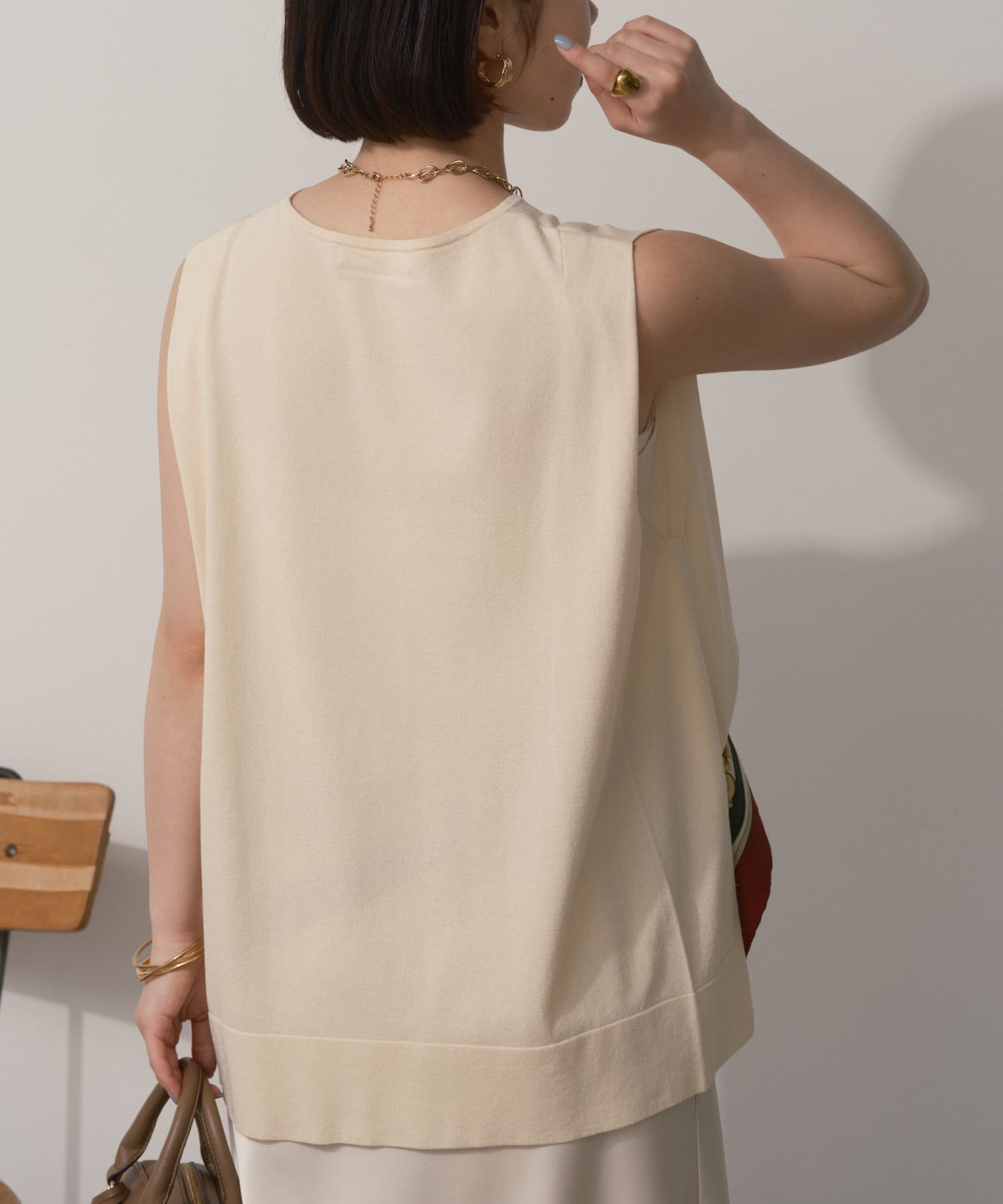 タックノースリーブニット