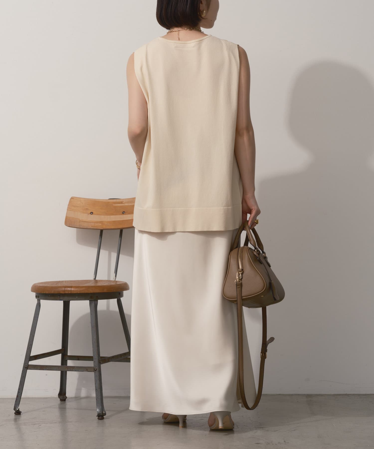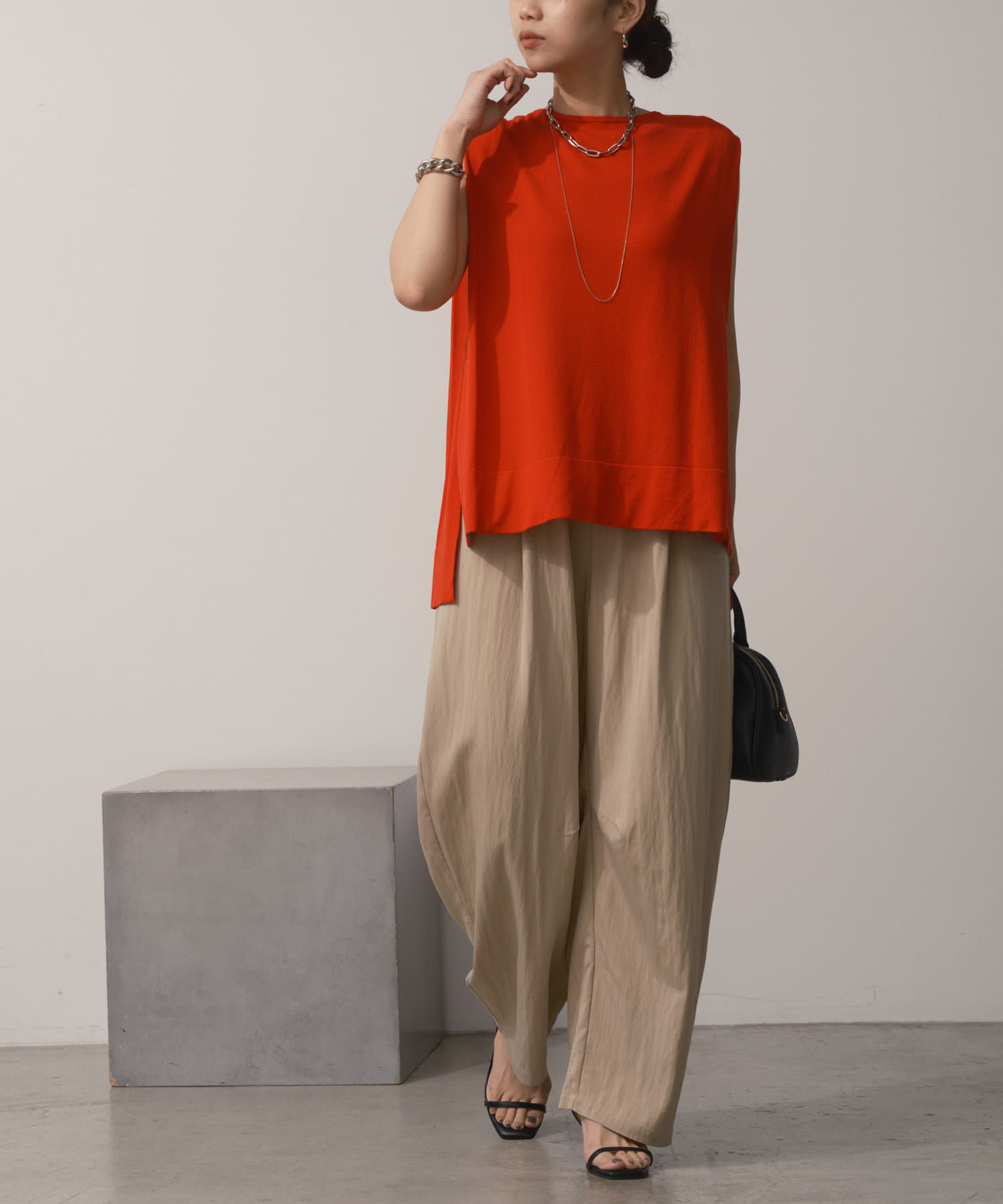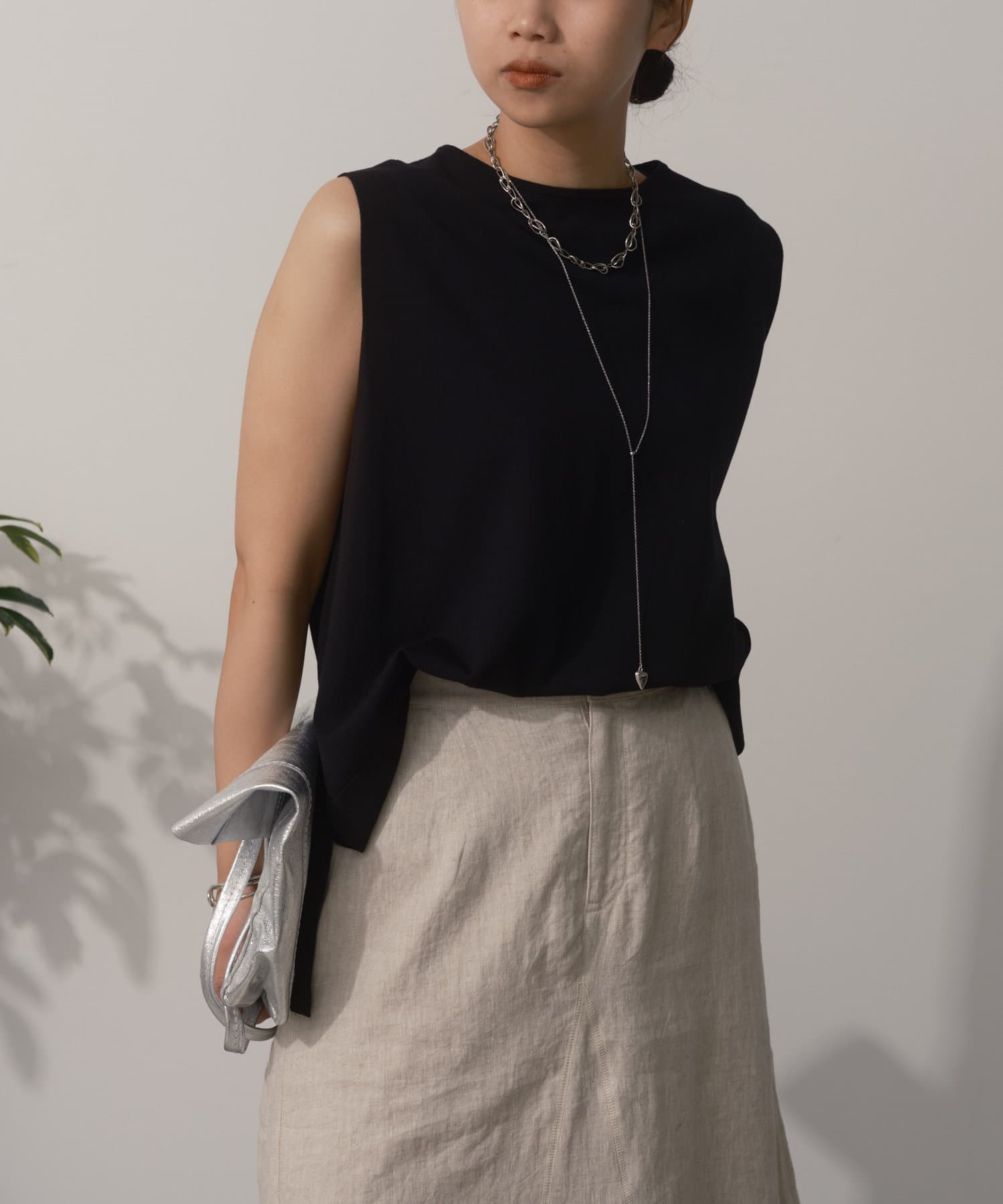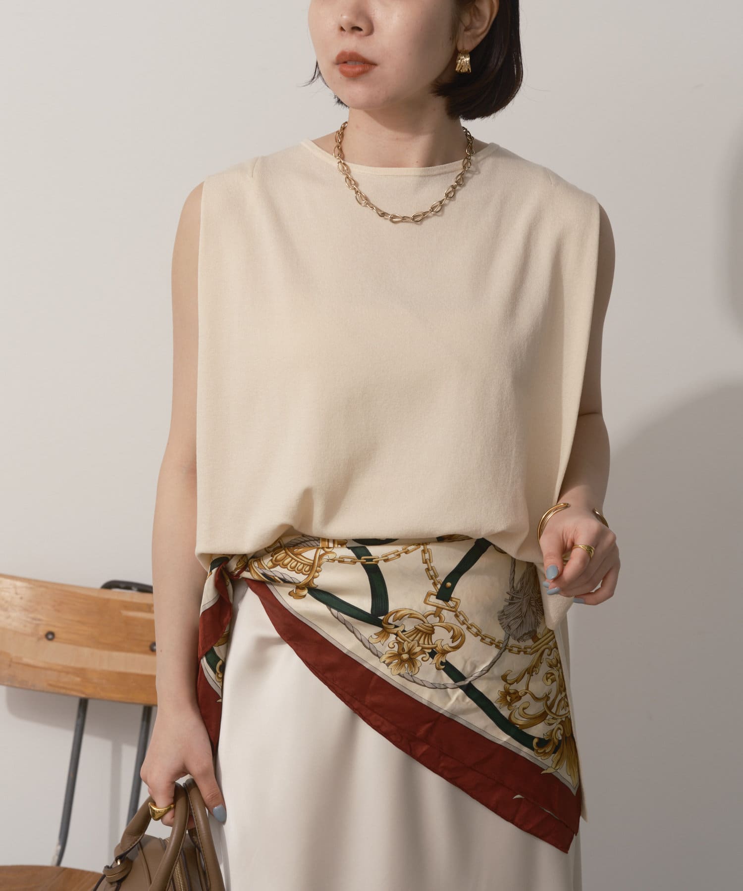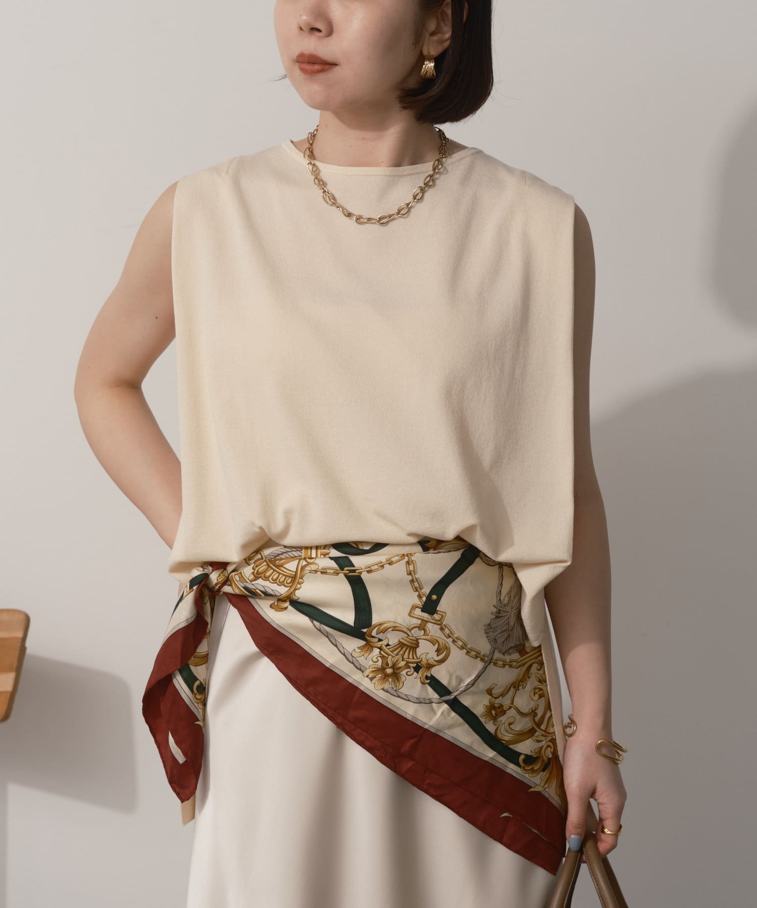 タックノースリーブニット