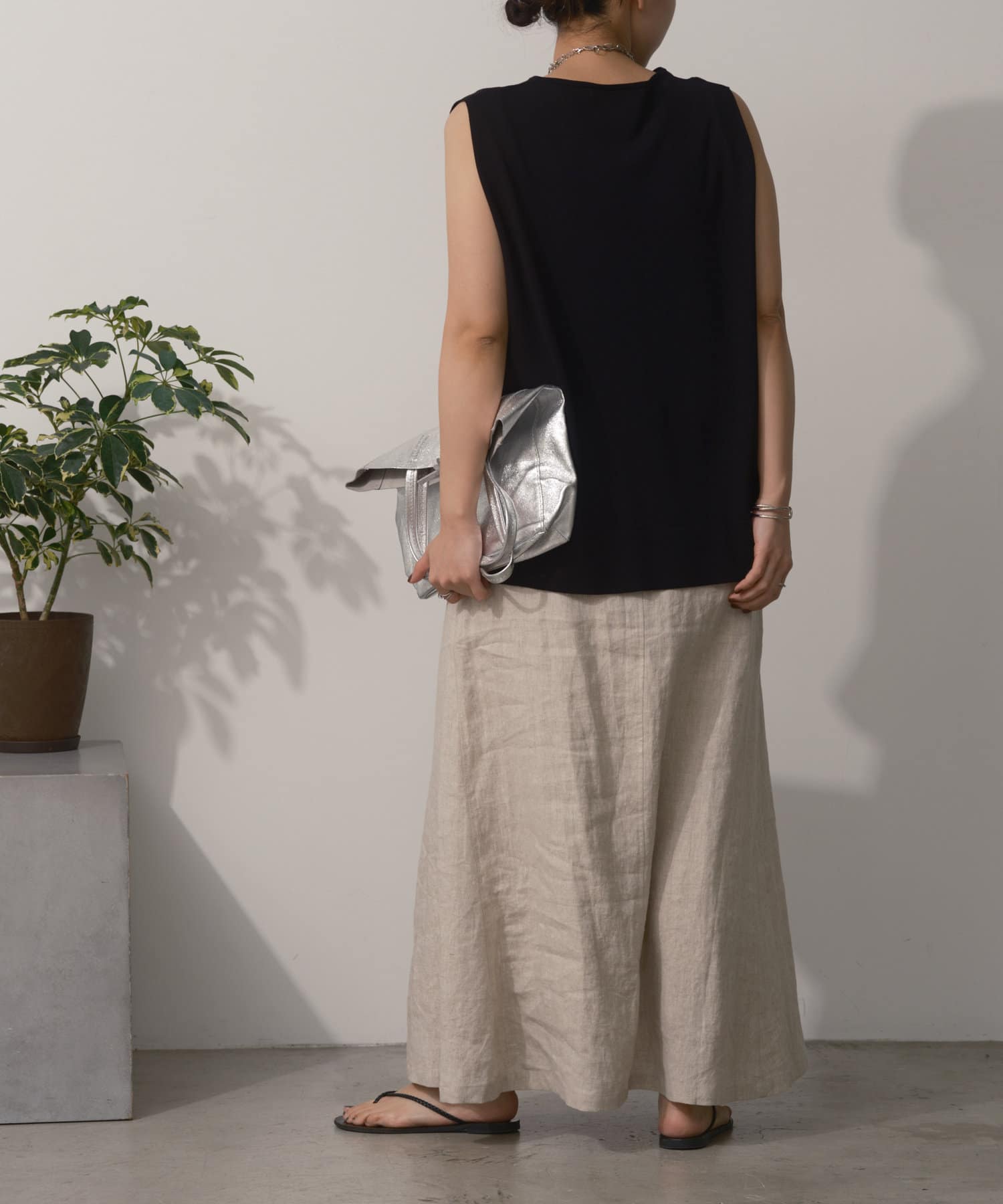 ・ノースリーブで程よく二の腕がカバーできる袖丈に。
