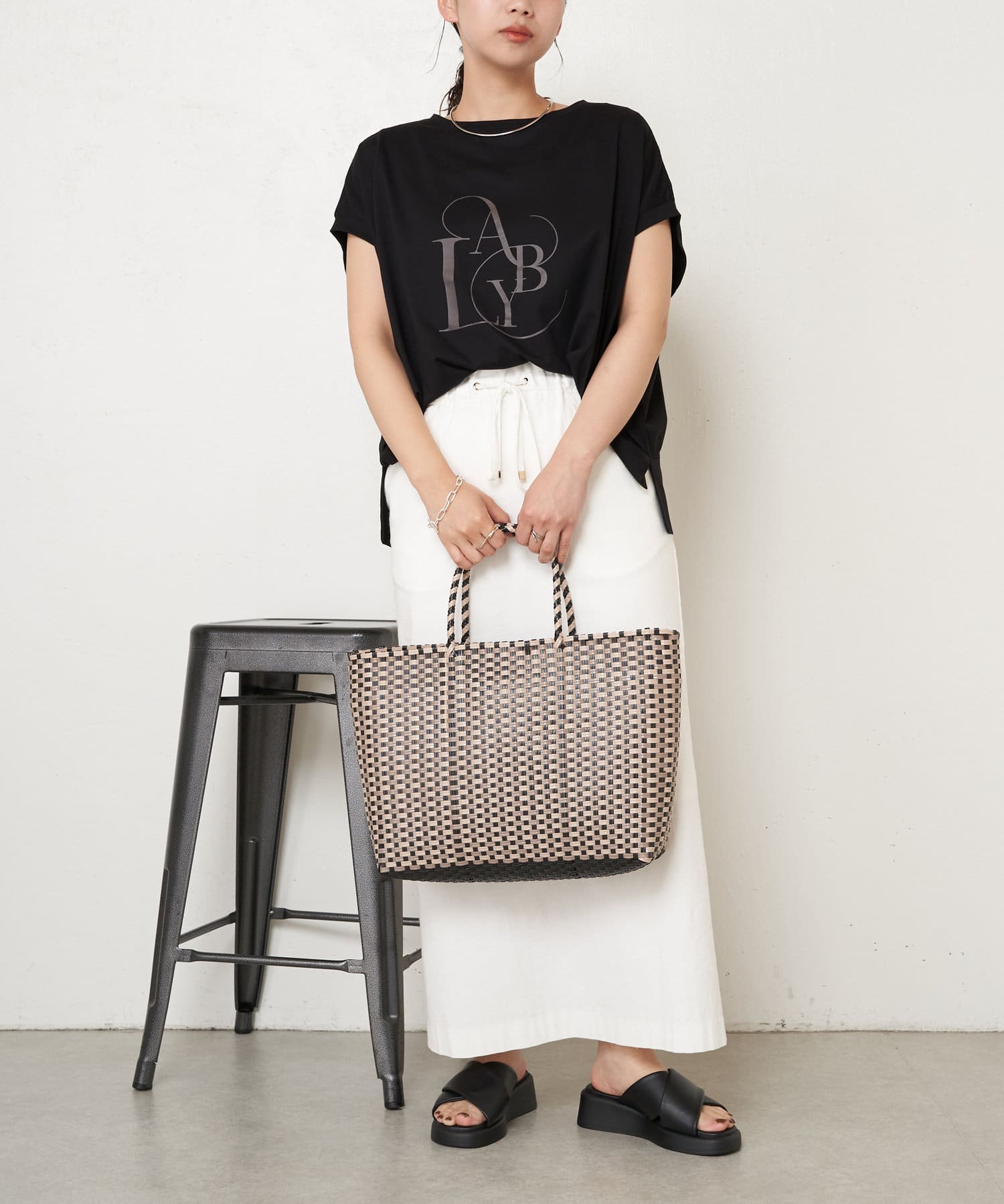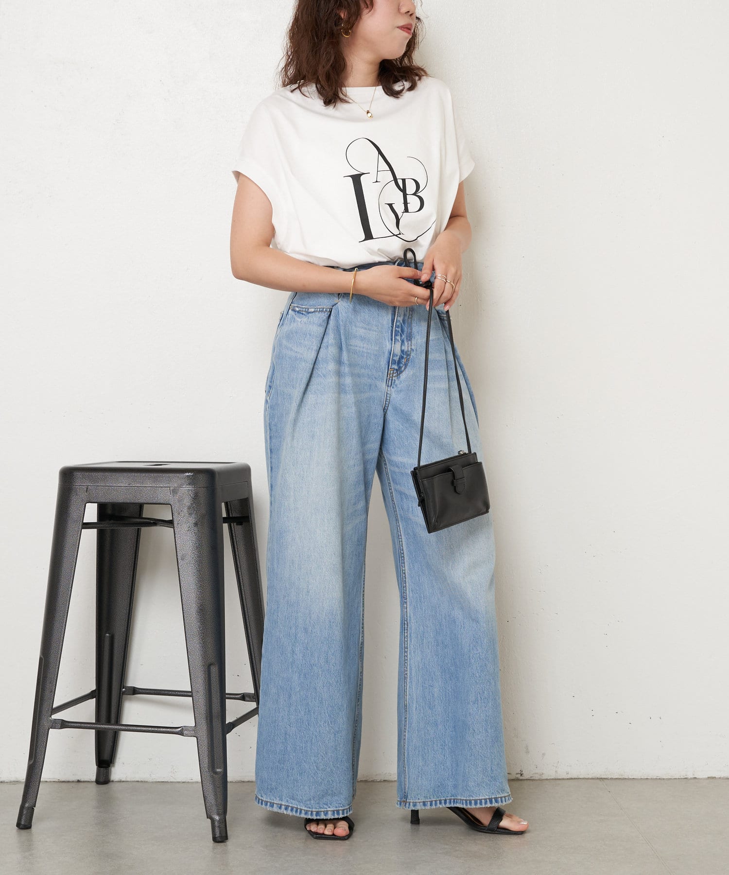 ・細目のロゴでカジュアルダウンしにくく、女性らしいスタイリングにもマッチします。