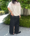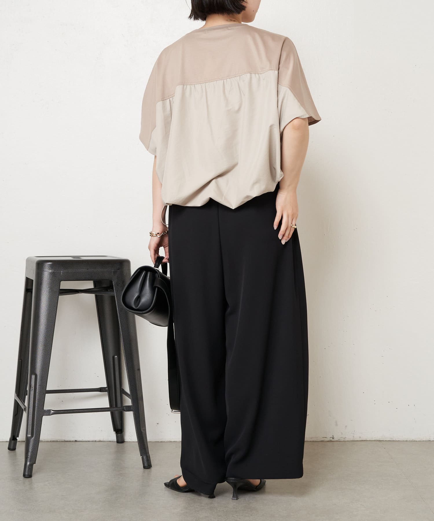 裾の絞り具合で雰囲気が変わりパンツでもスカートでも良い感じに合わせられます