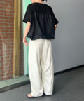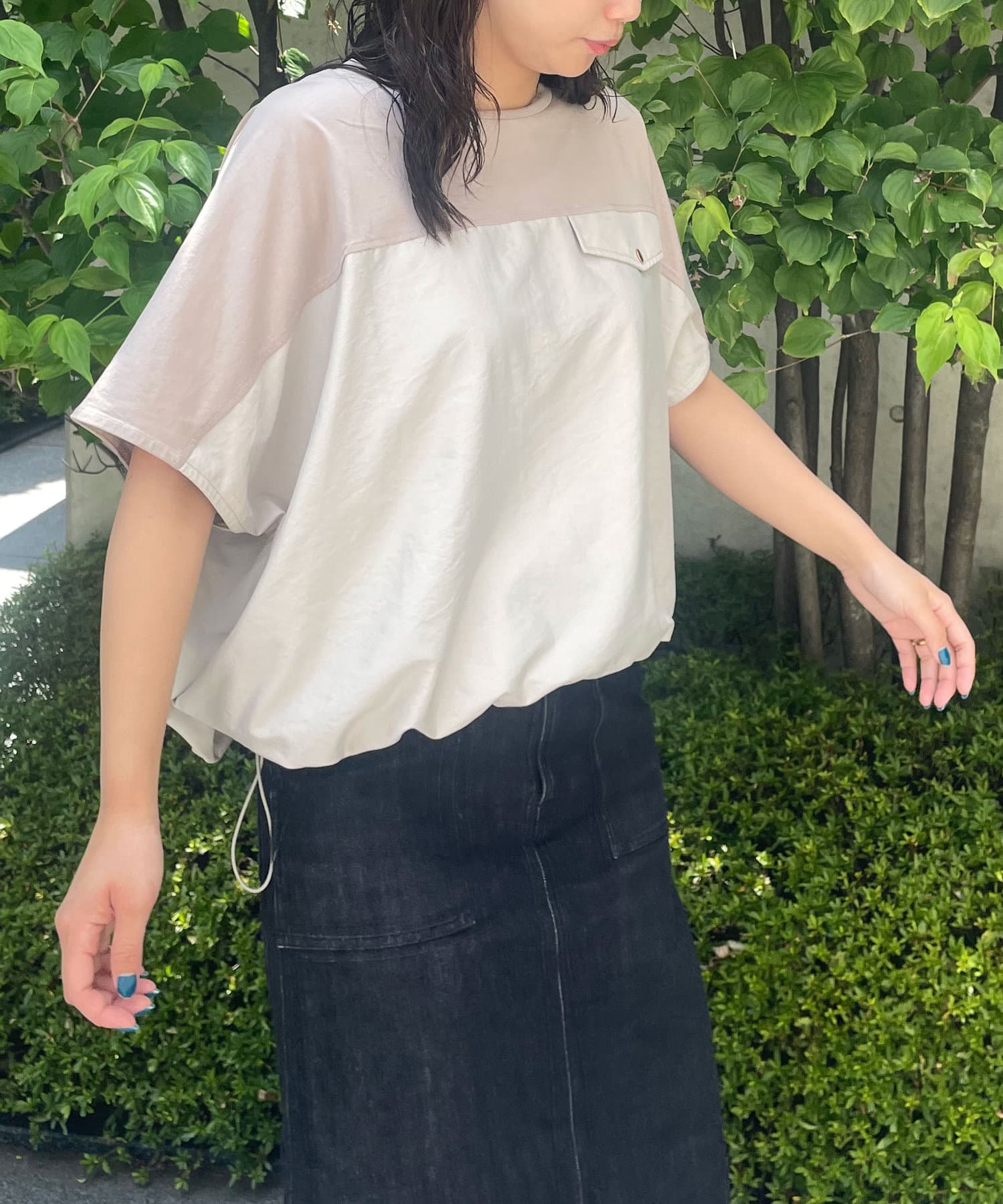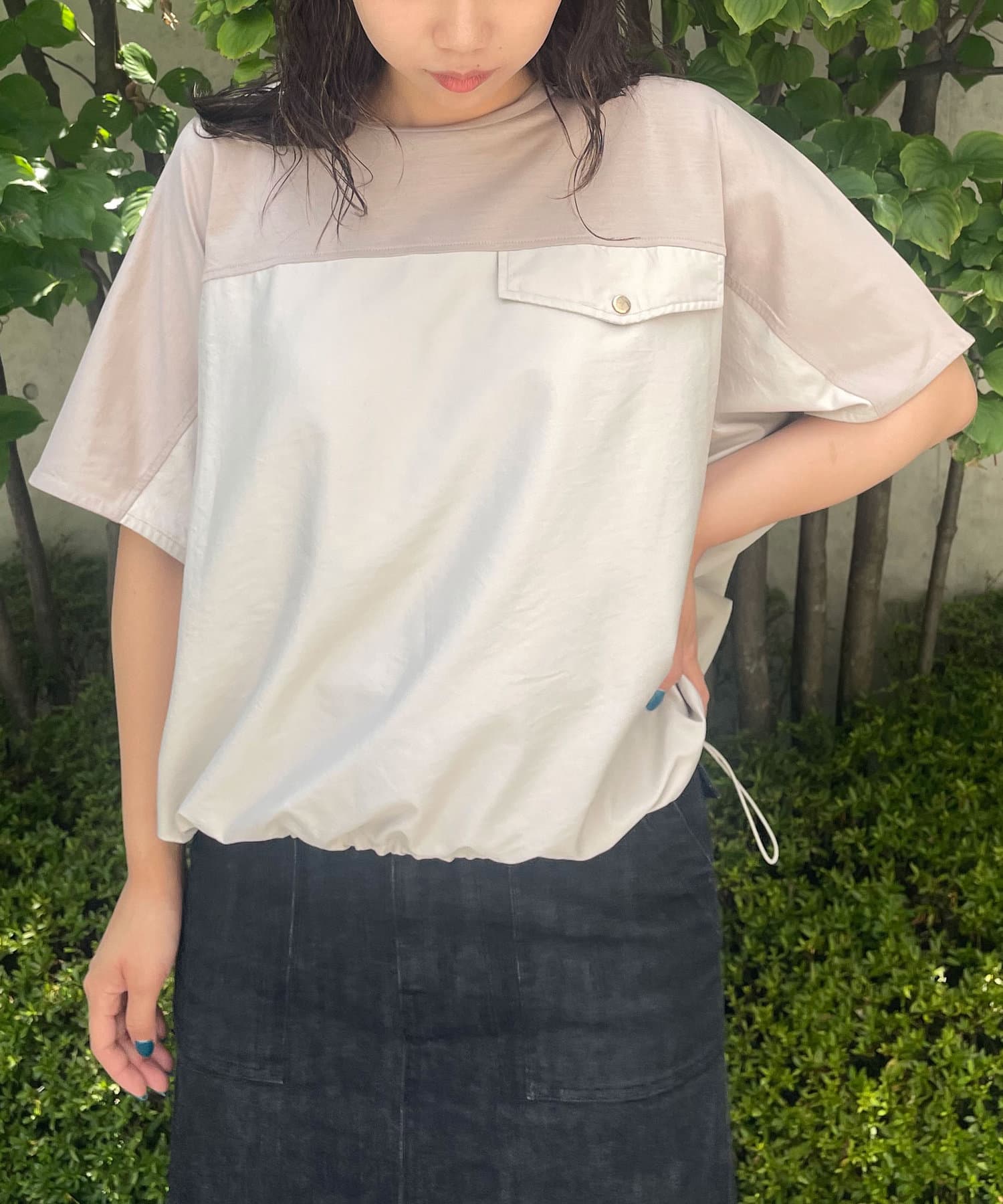裾をしぼると シルエットが変わるので 色んなボトムスに合わせやすそうです