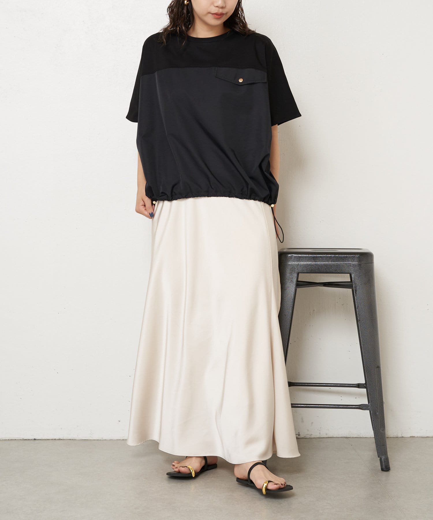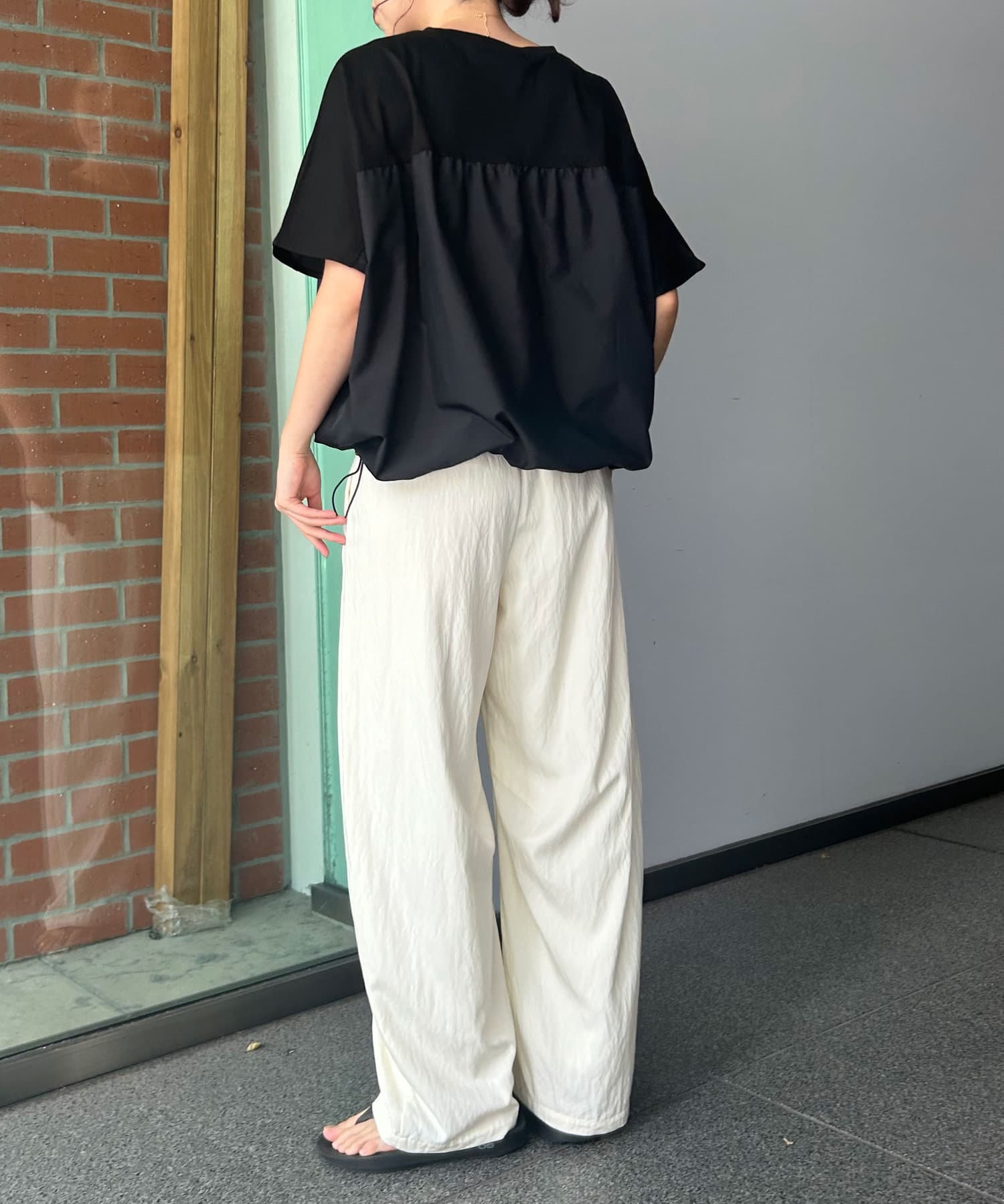 切り替えのした部分は、くしゅくしゅ素材で、サラサラしていてシワになりにくいです。