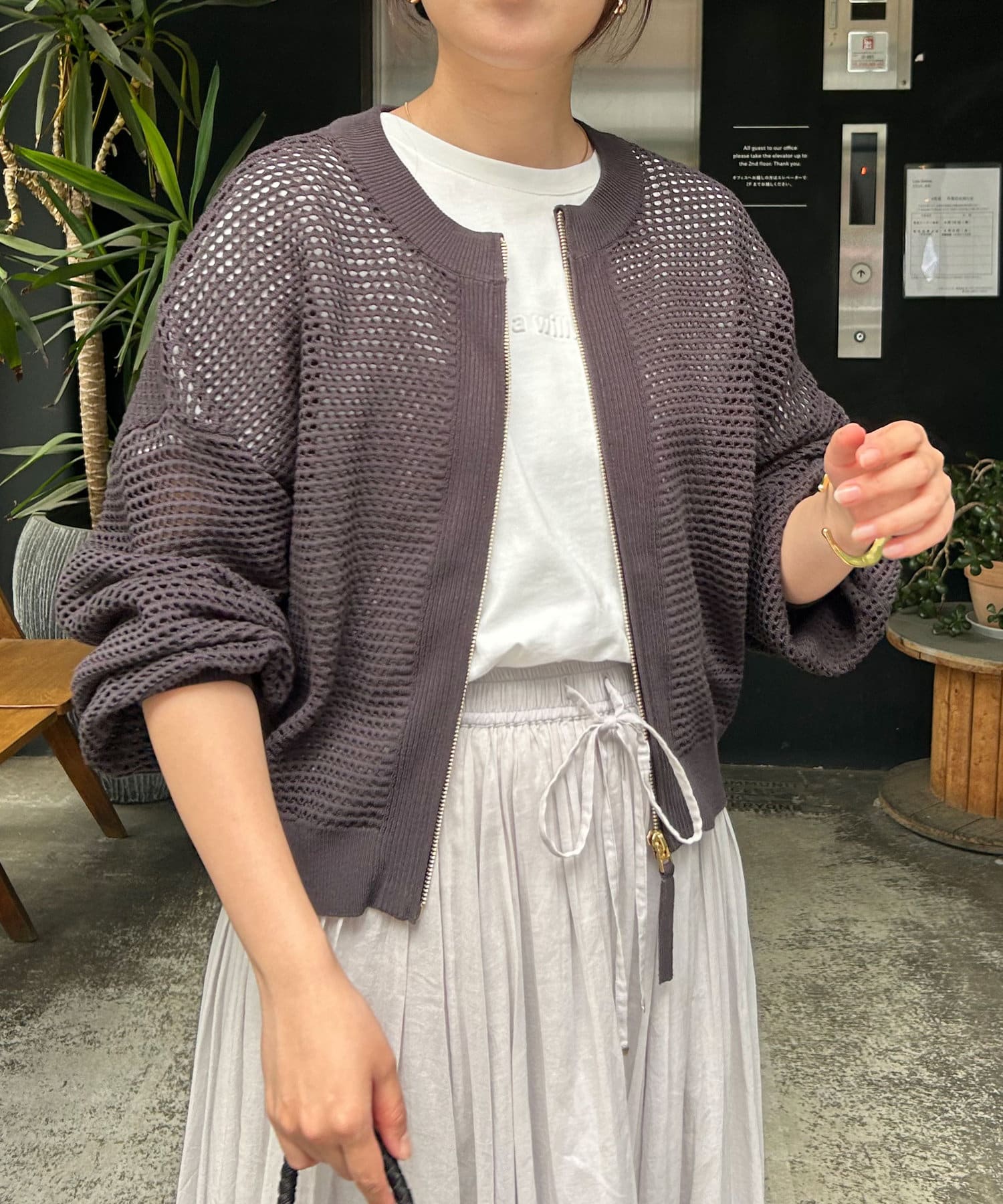 ・春夏らしいメッシュ柄の編地が涼しげな印象に。