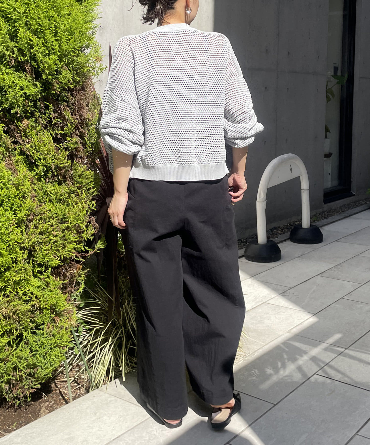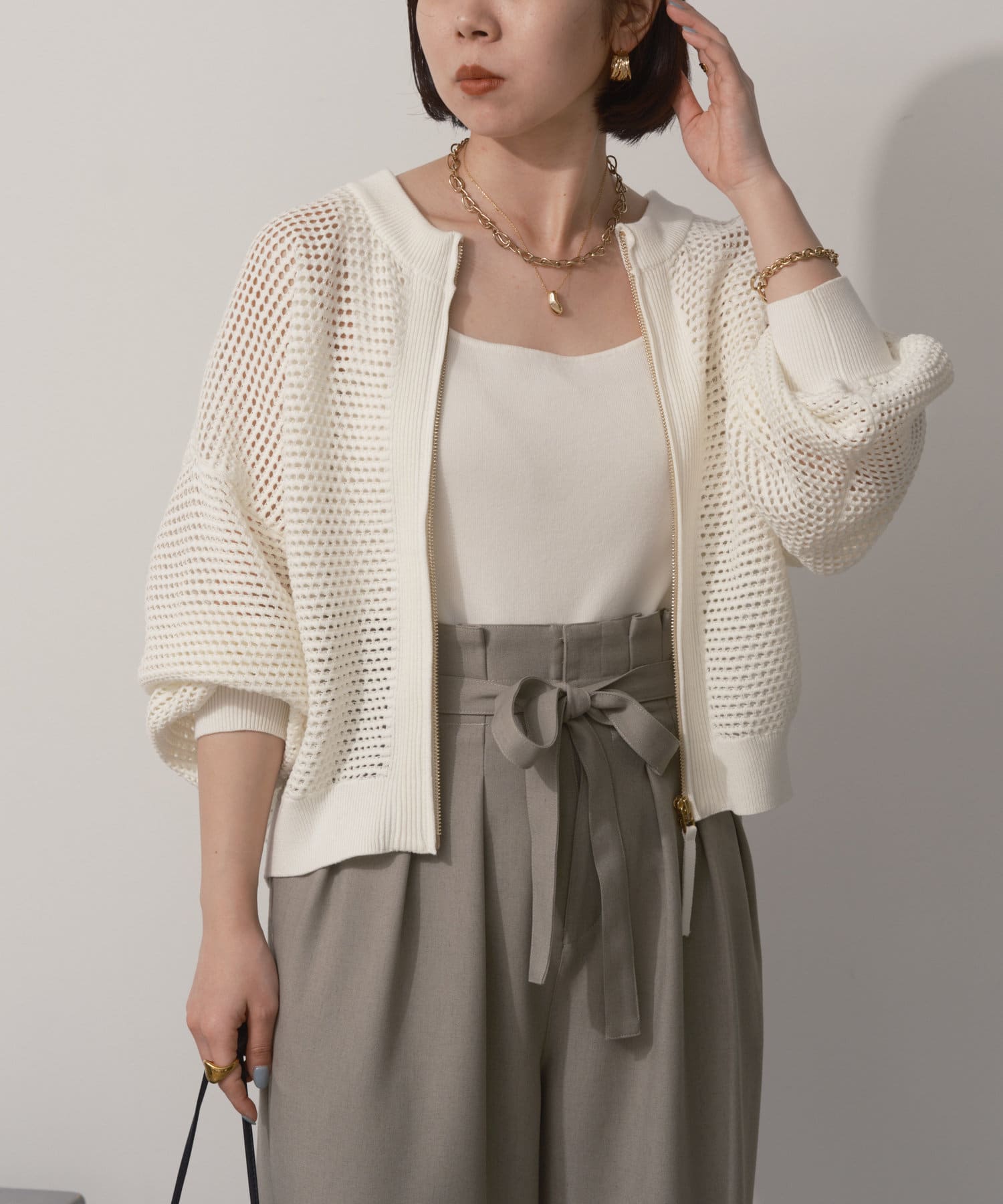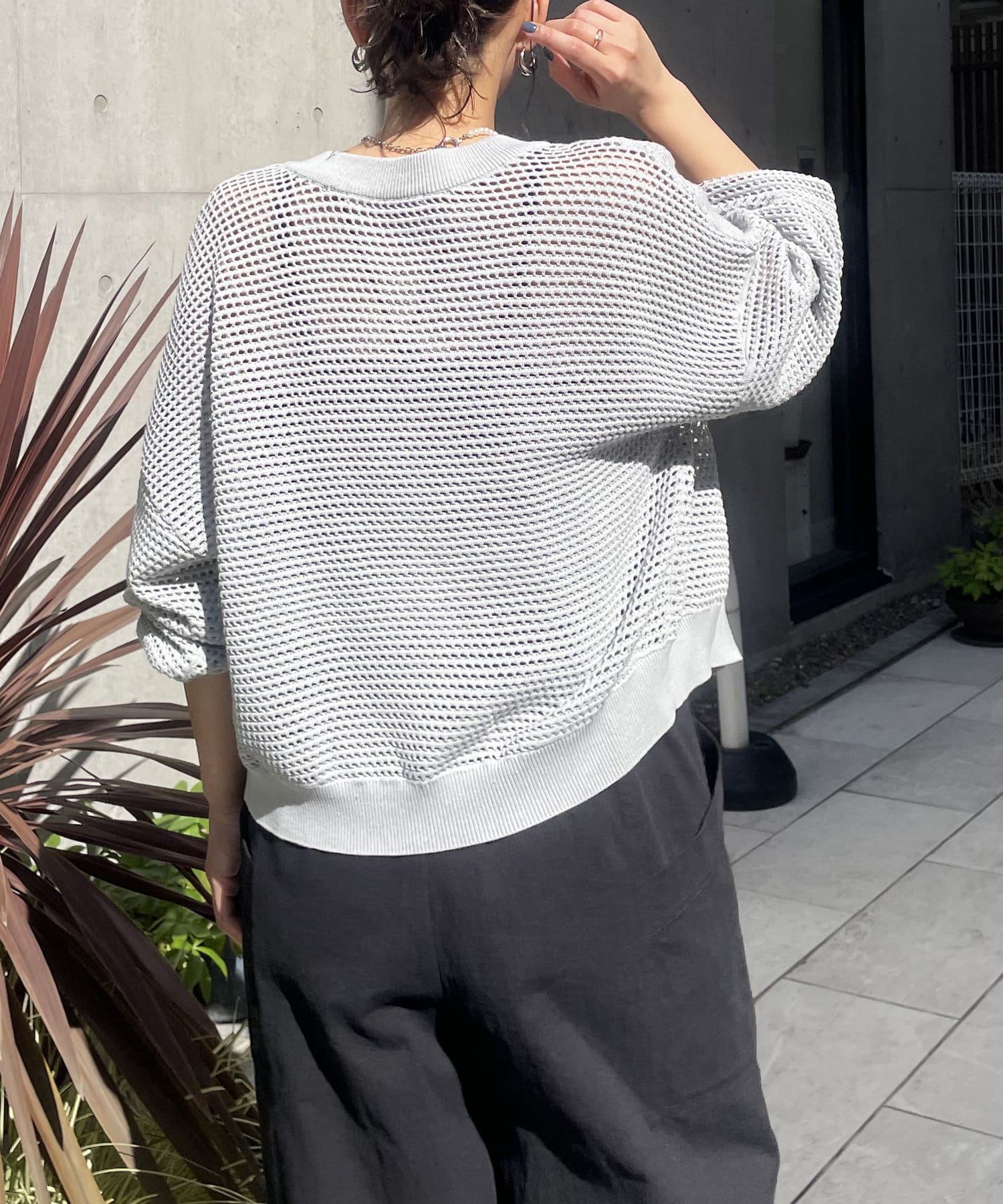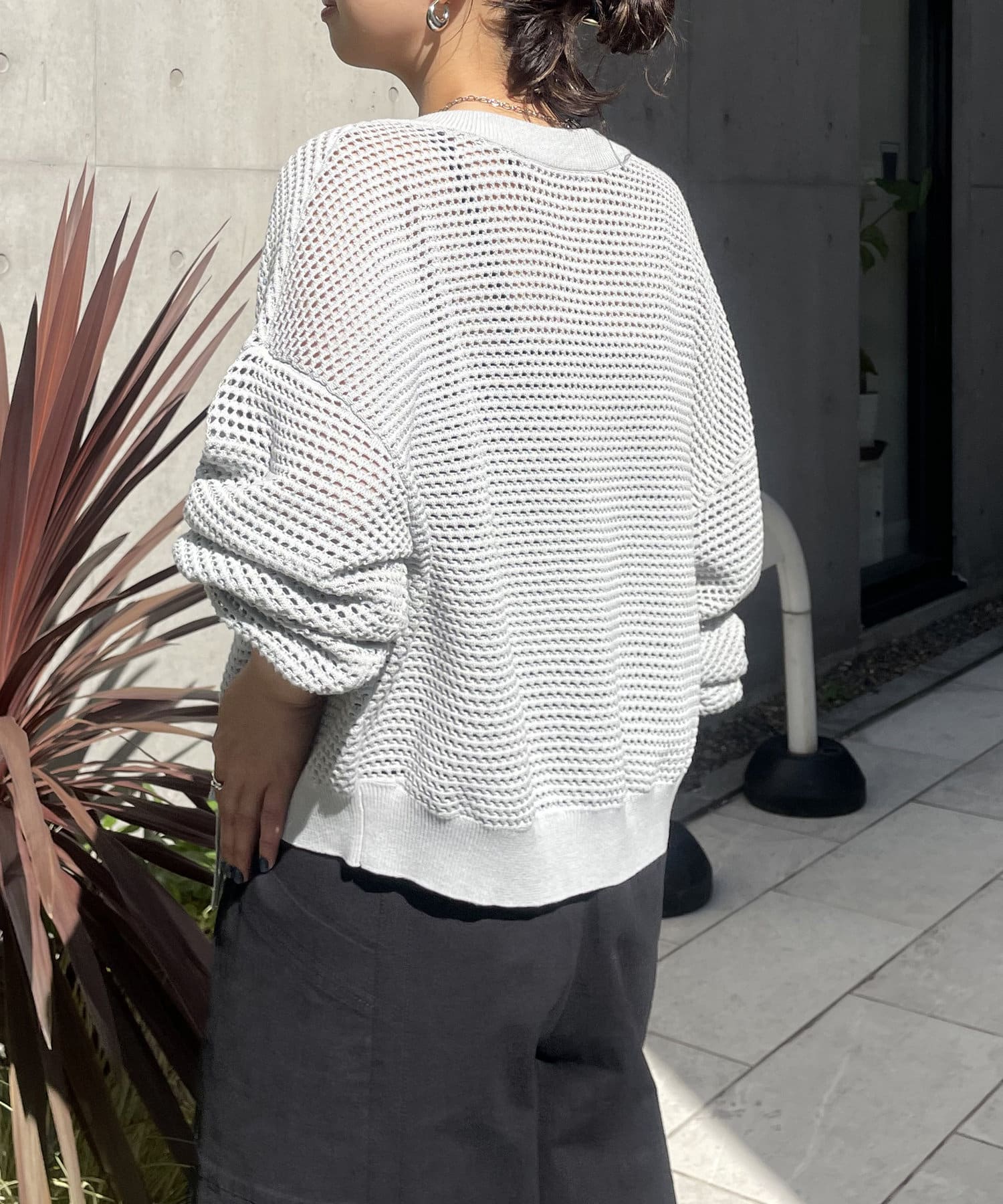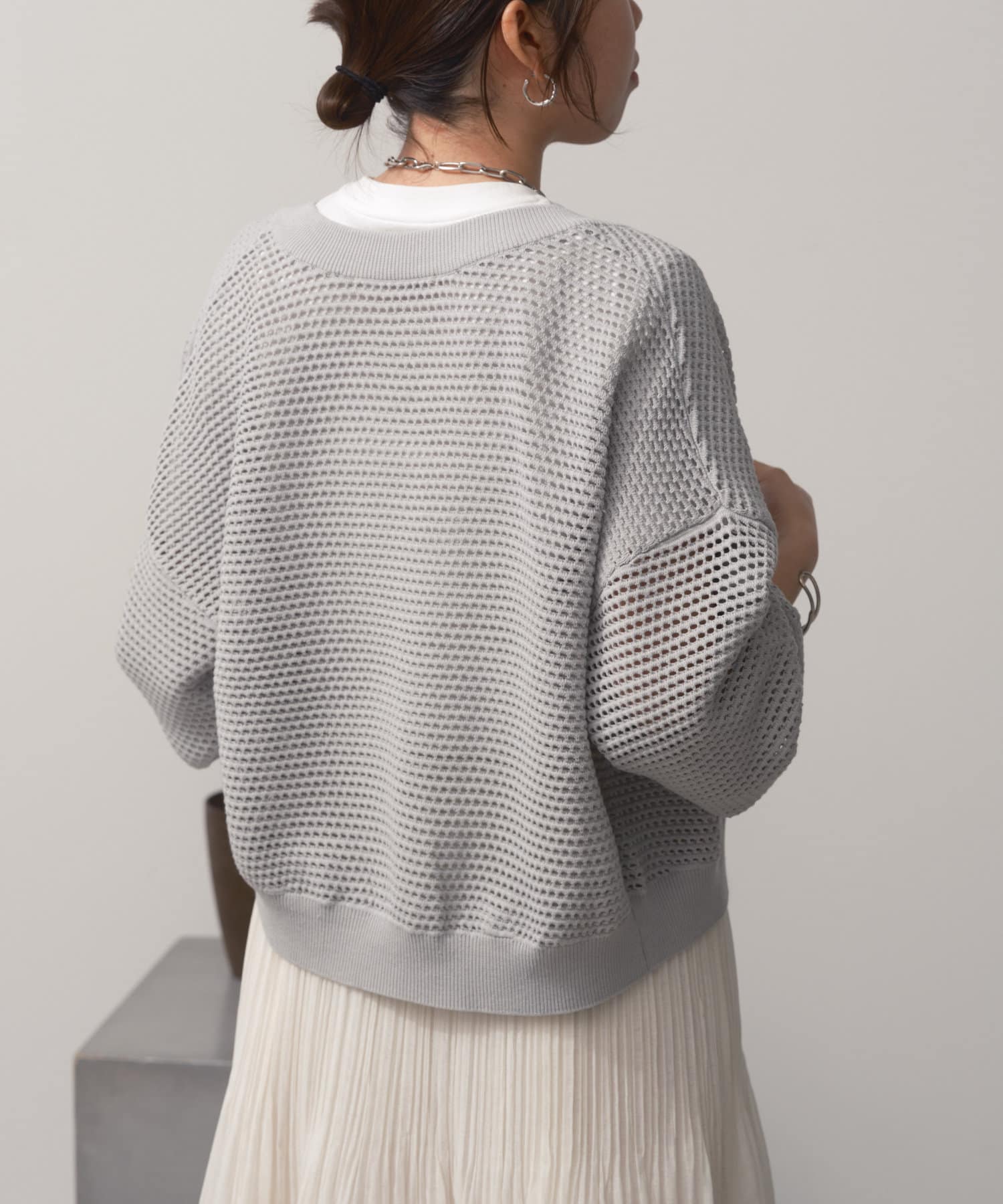 ・春夏らしいメッシュ柄の編地が涼しげな印象に。