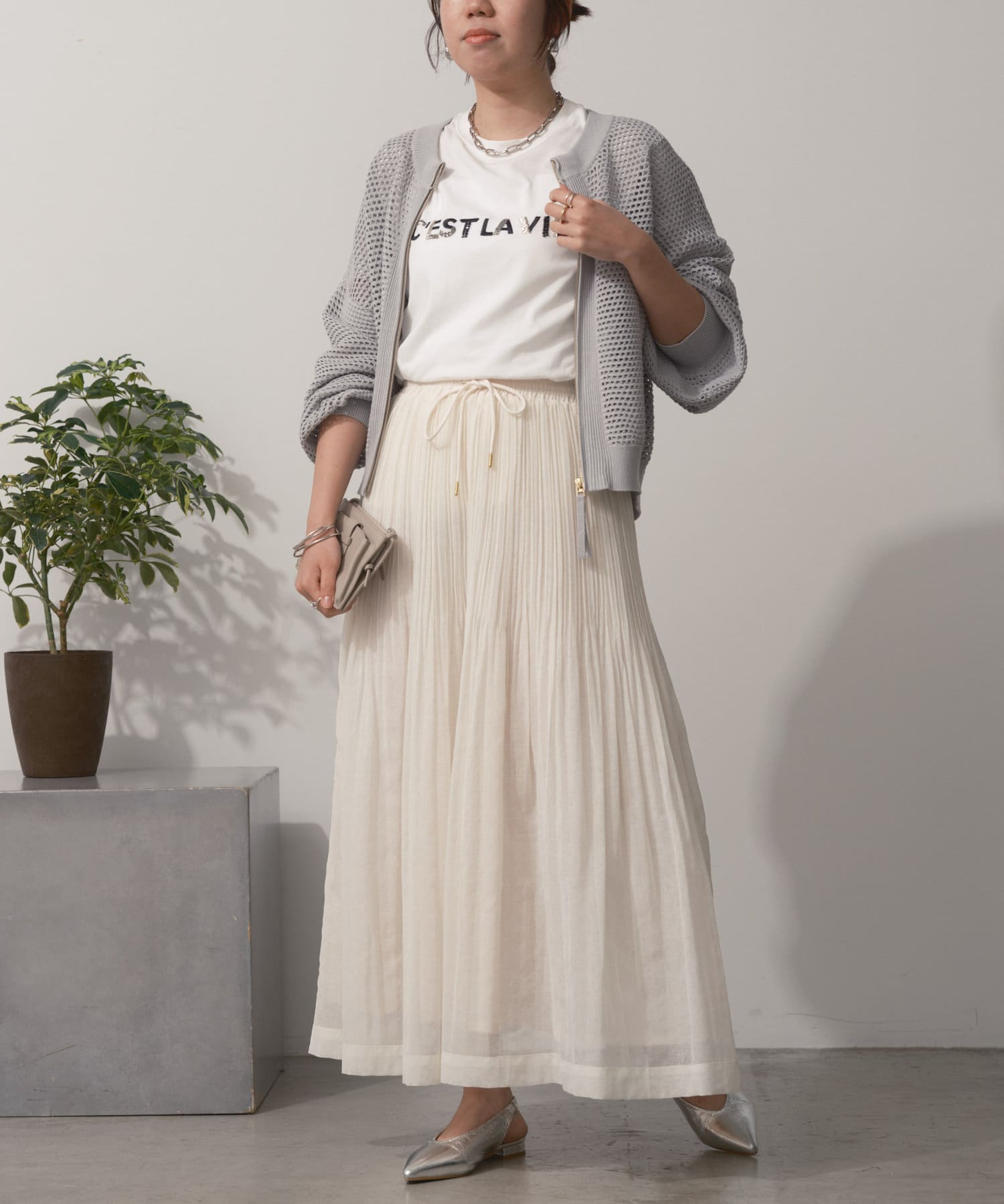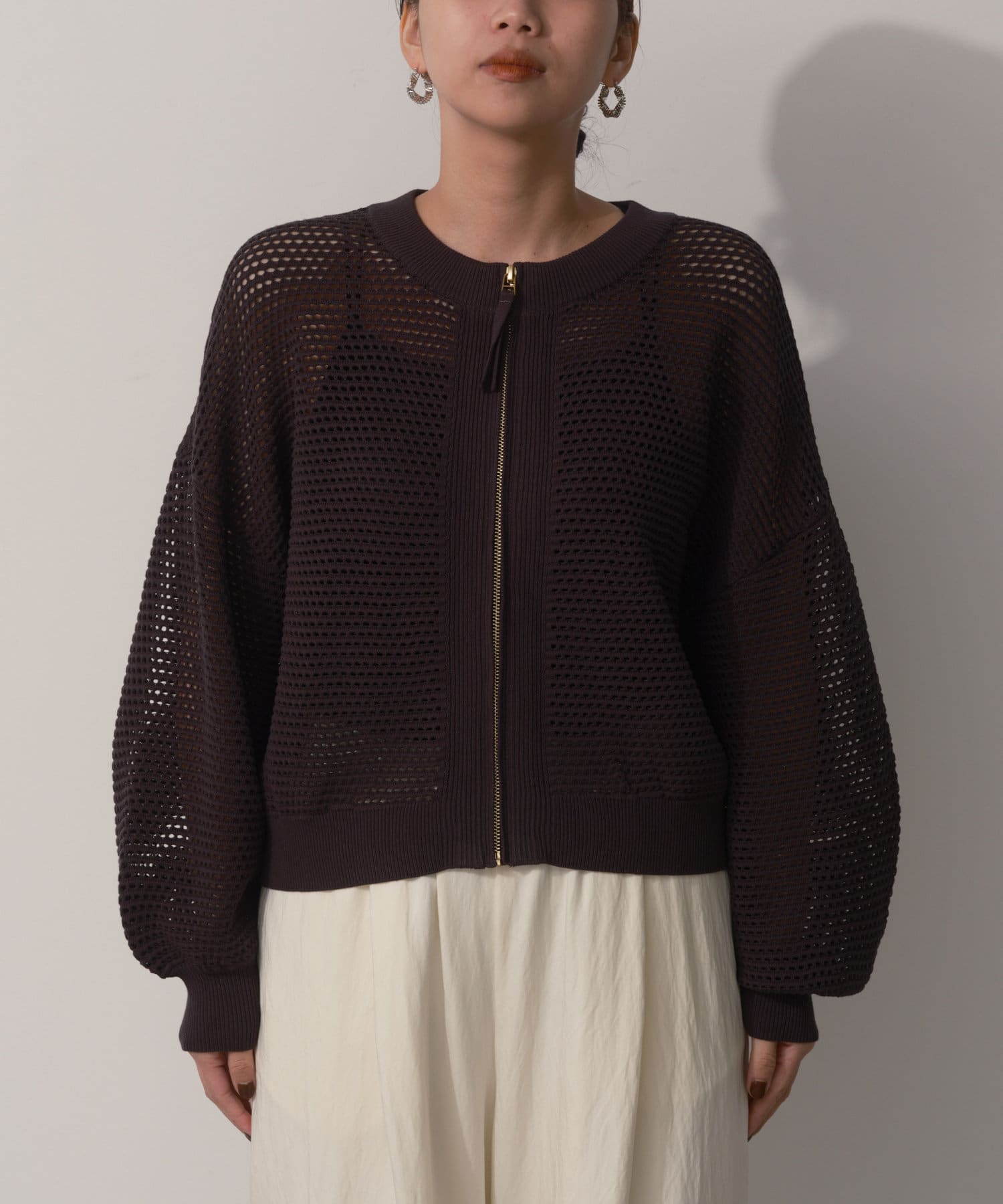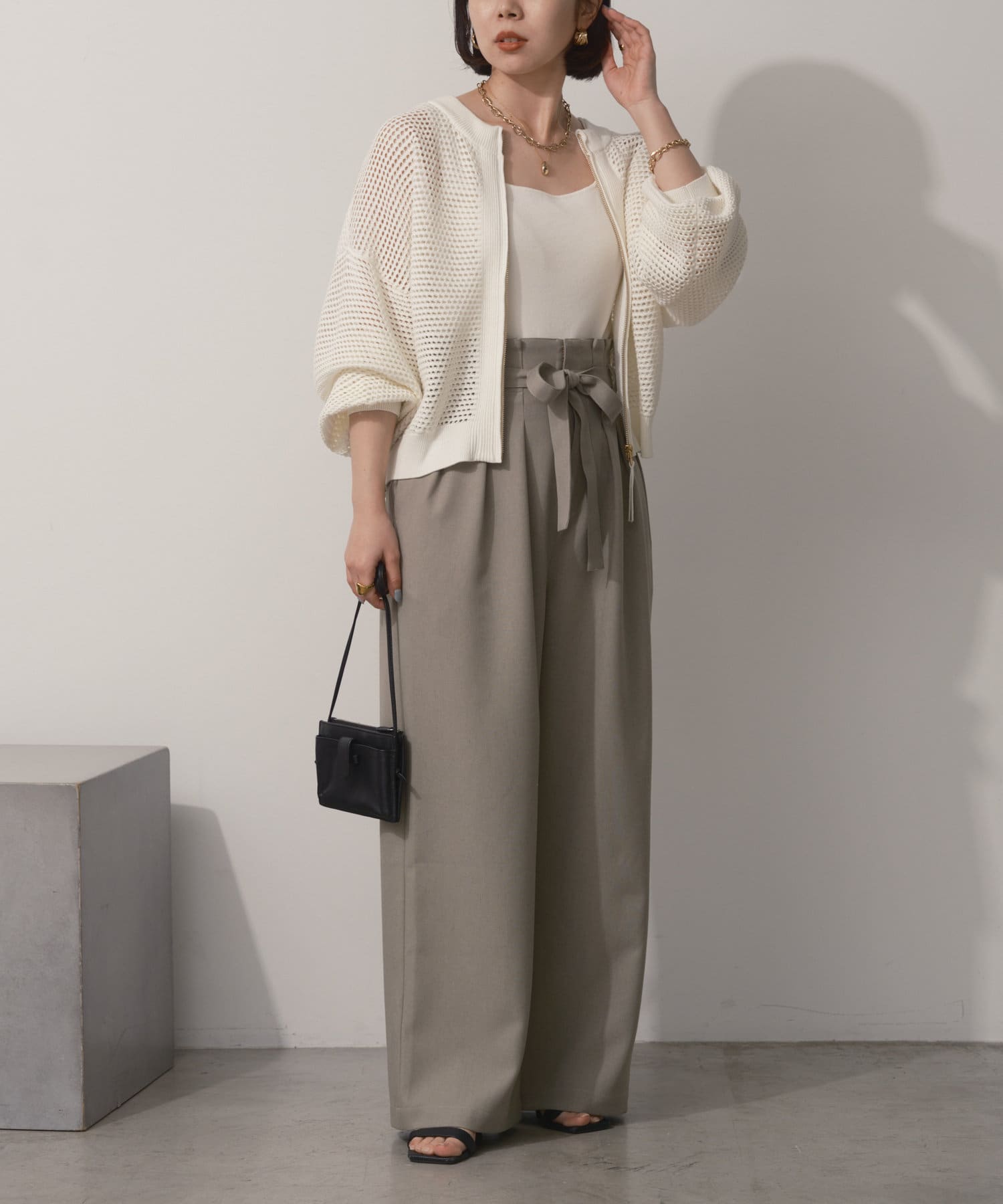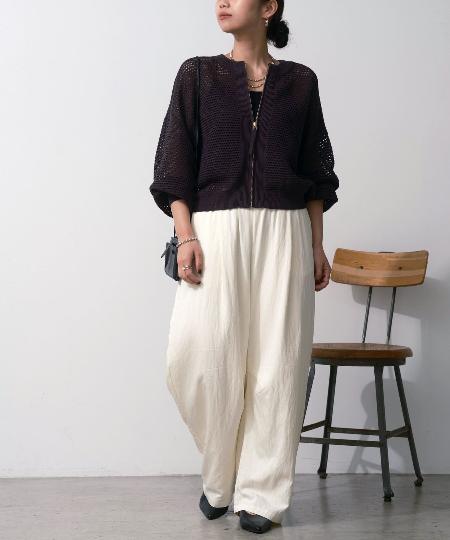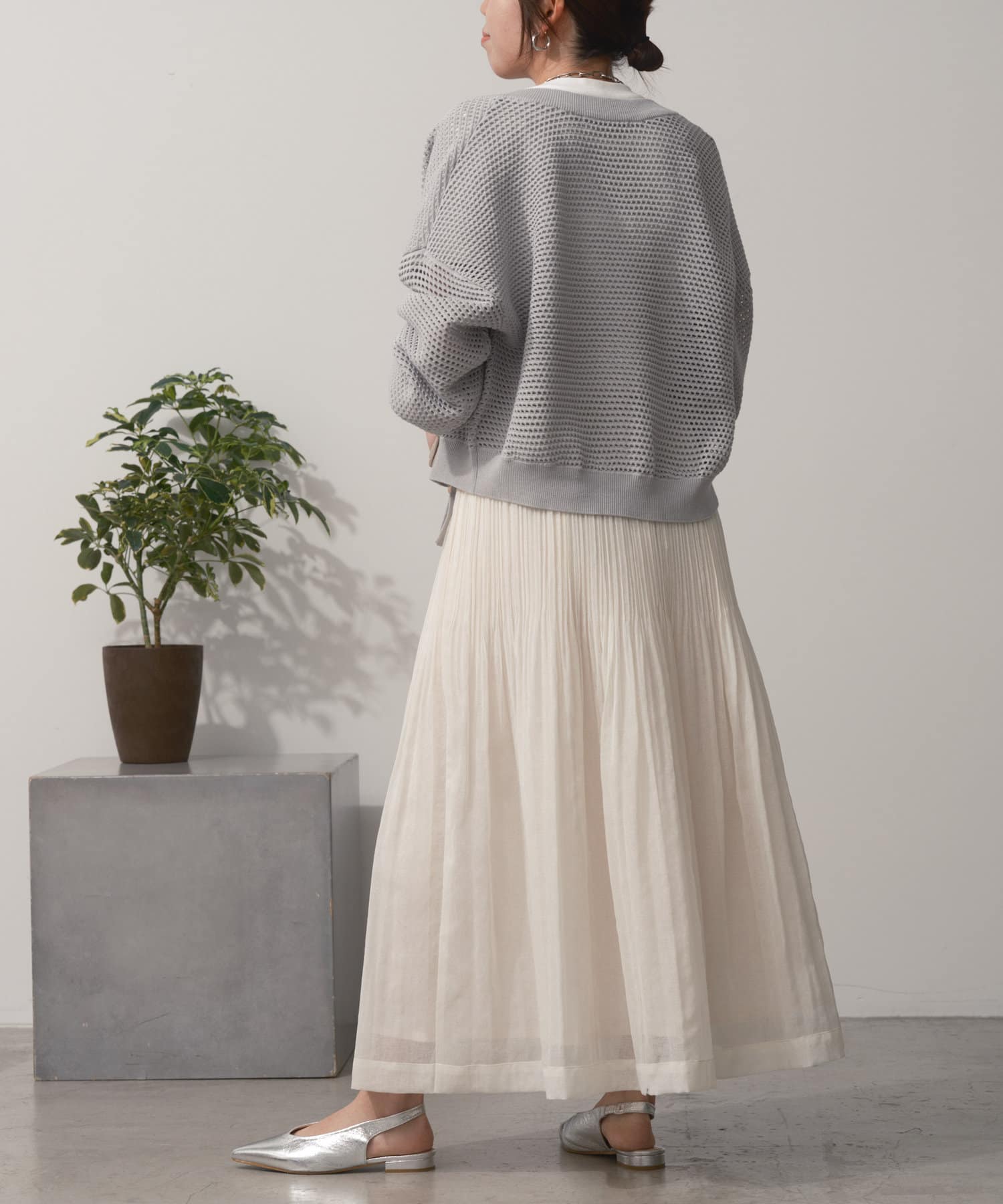 ・春夏らしいメッシュ柄の編地が涼しげな印象に。