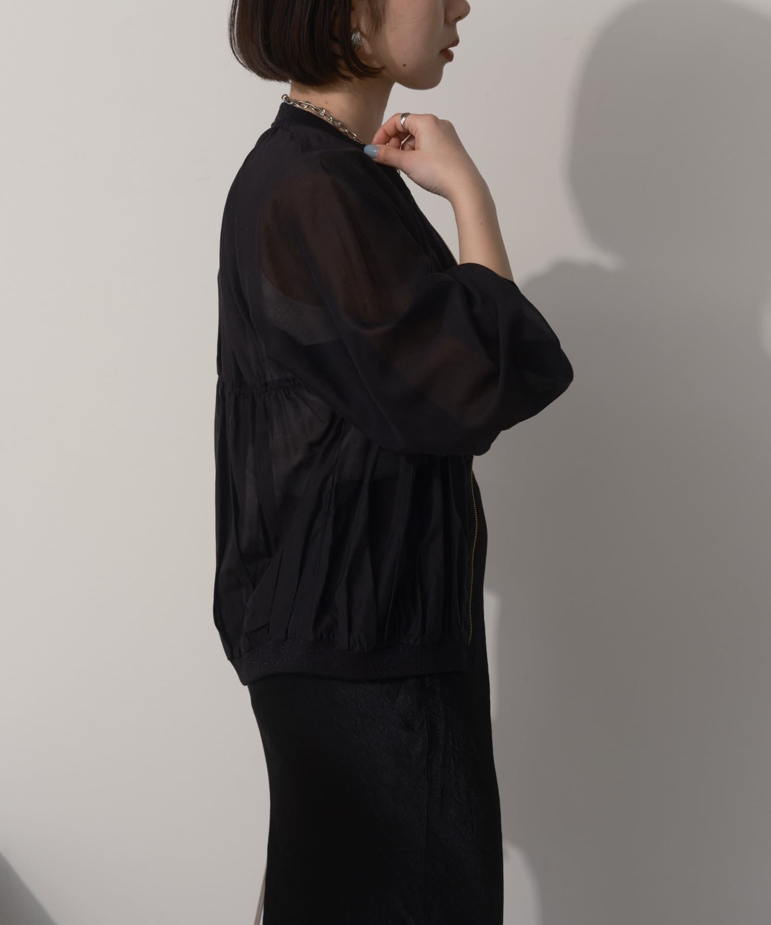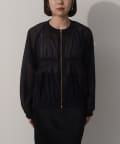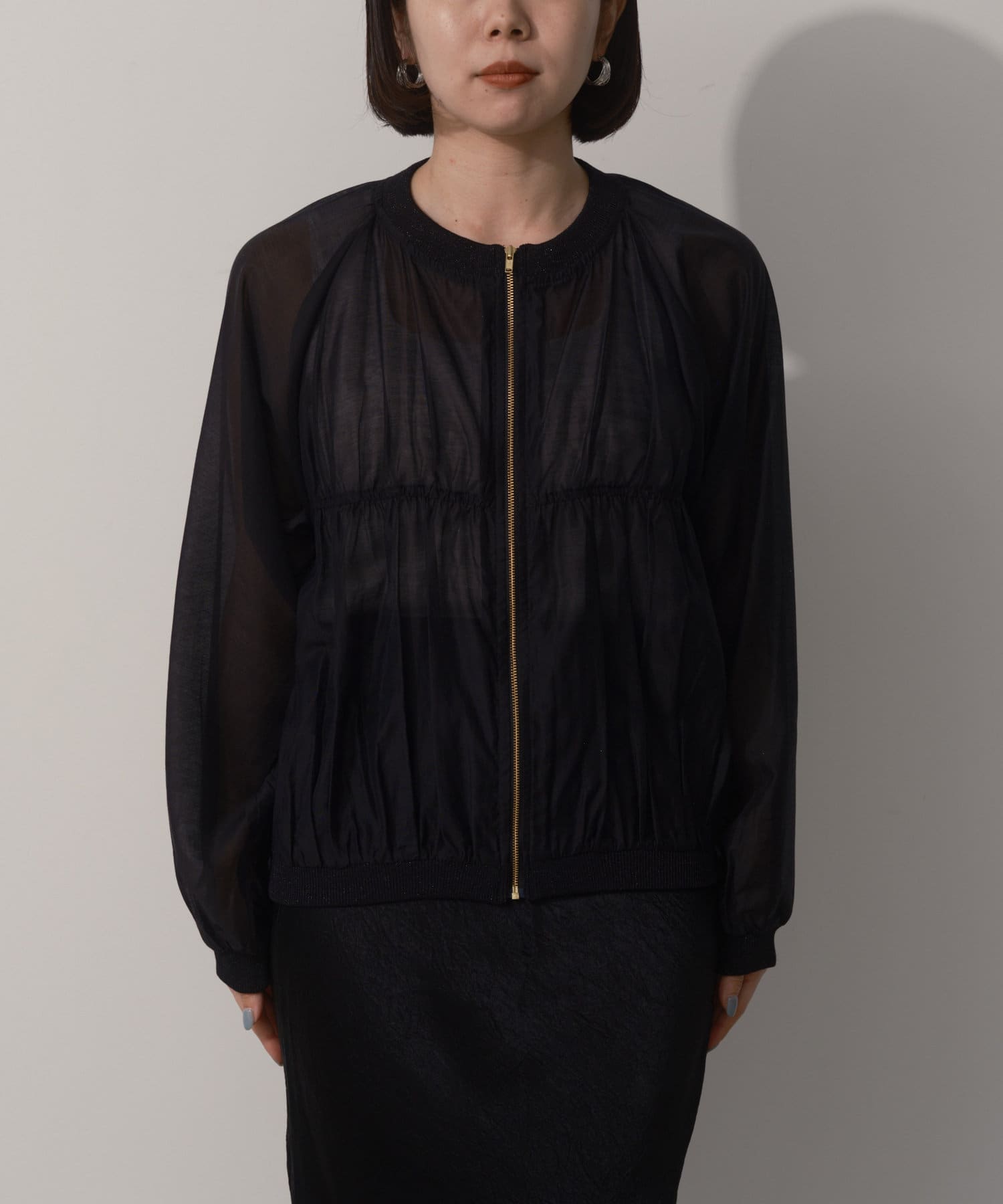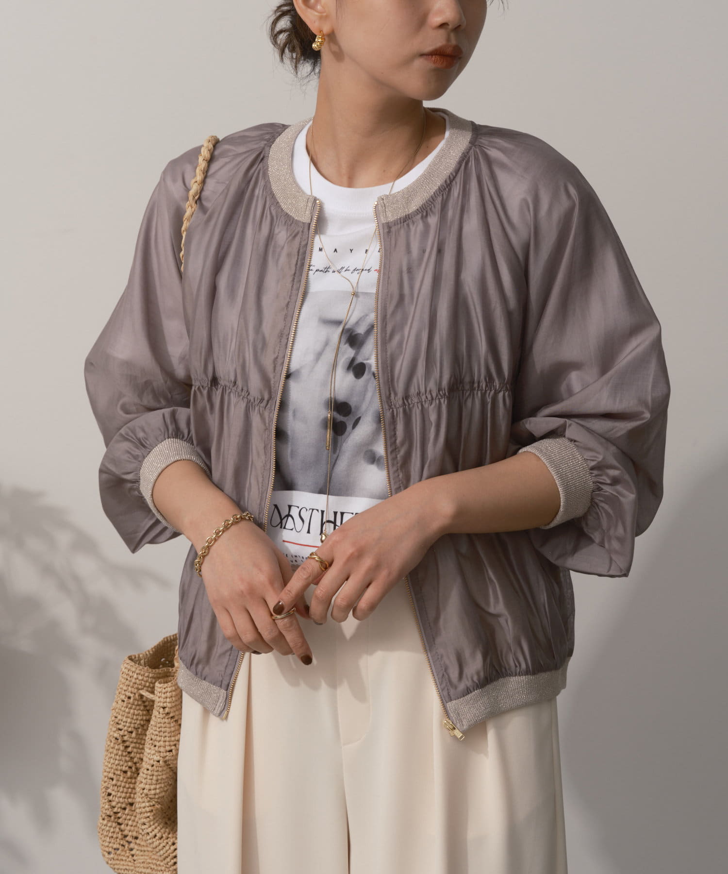 ・首元の程よいラメ地がポイントのシアーブルゾン。