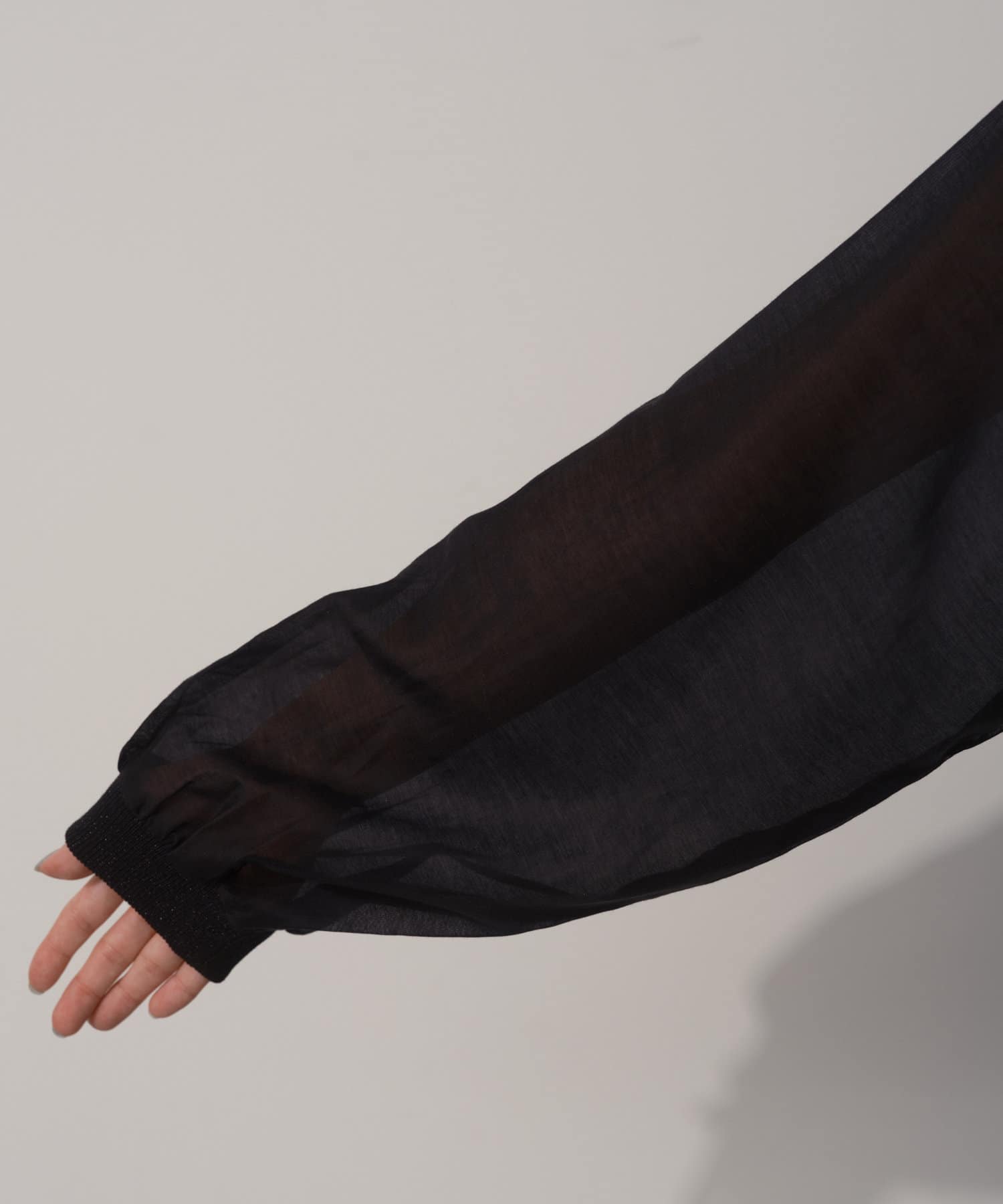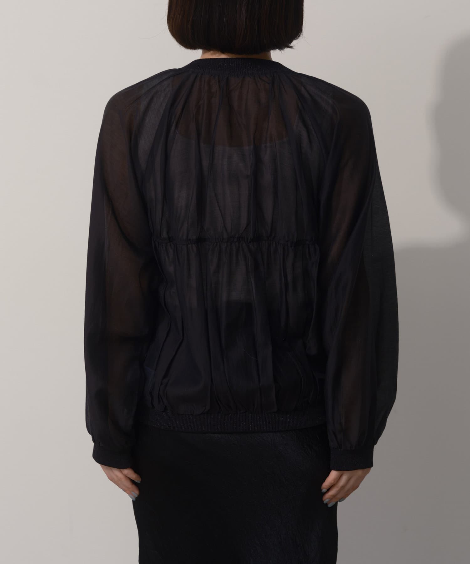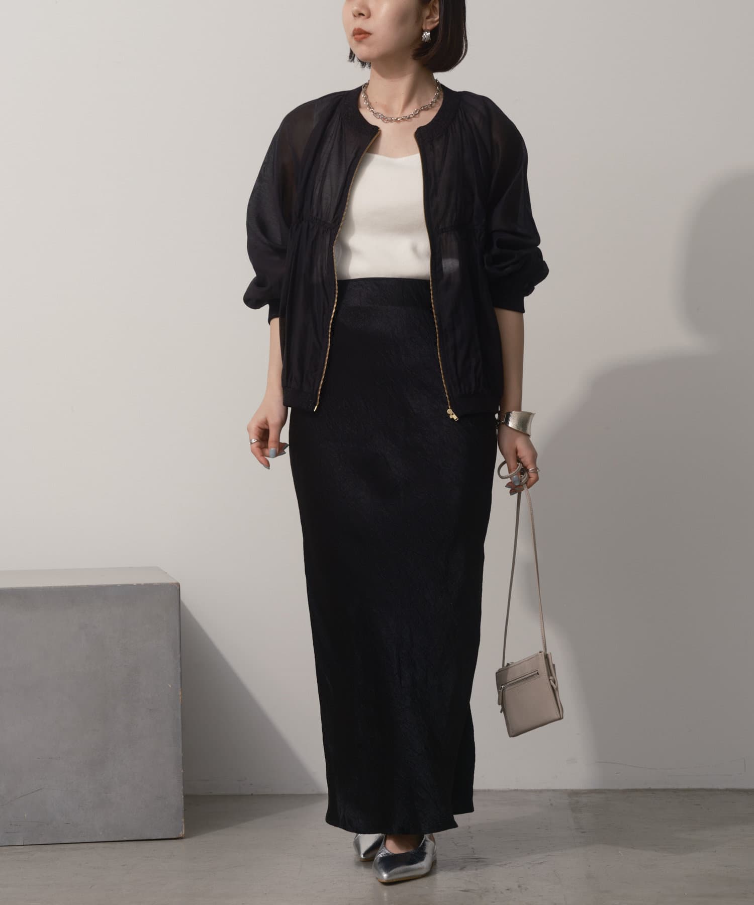 ・首元の程よいラメ地がポイントのシアーブルゾン。