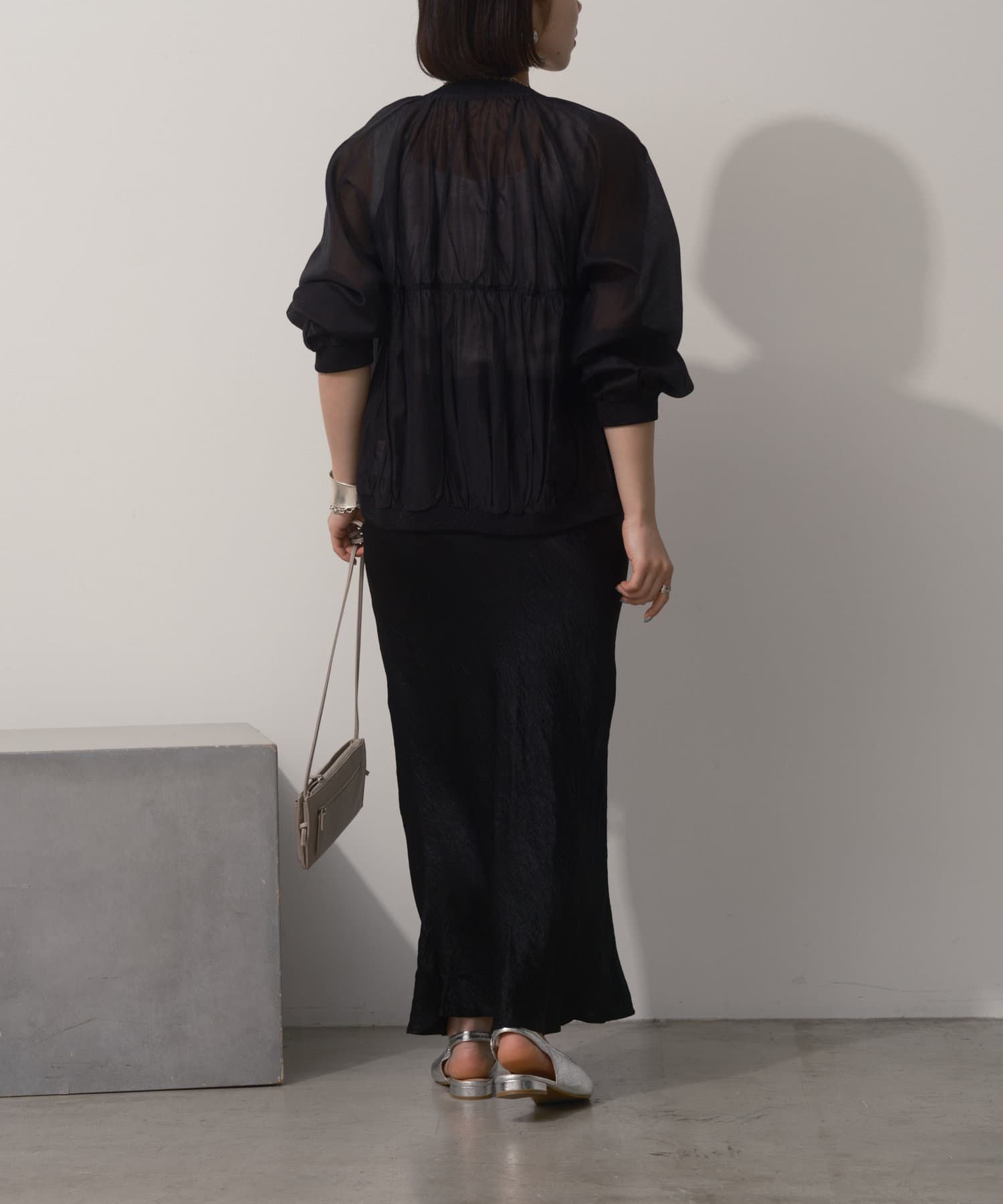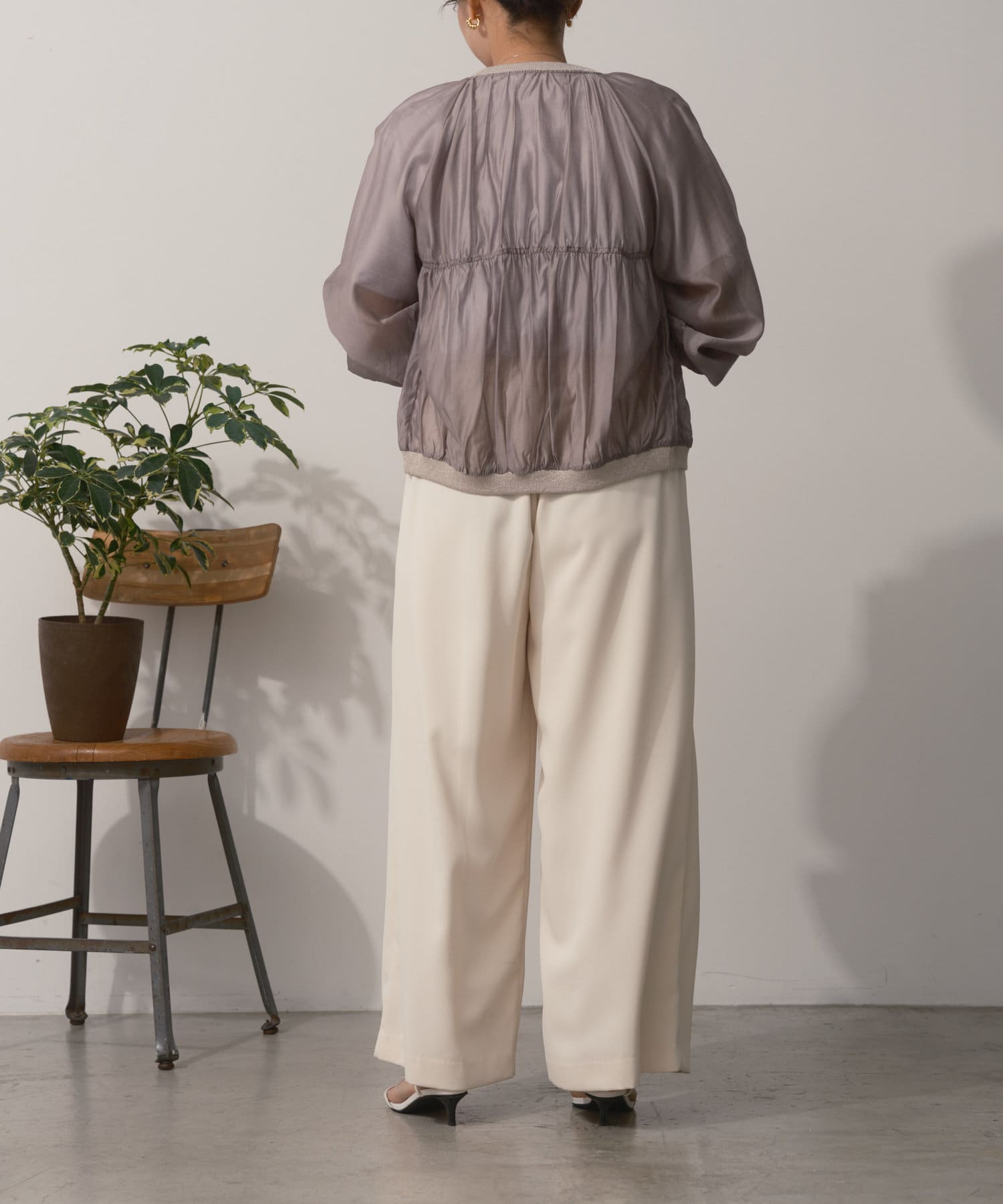 ・素材の透け感を生かした、インナーのレイヤードスタイルが今期らしい着こなしが出来上がります。