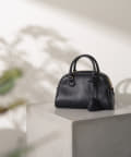 ・シンプルながらもコーディネートに存在感を与えるボストンバッグ。