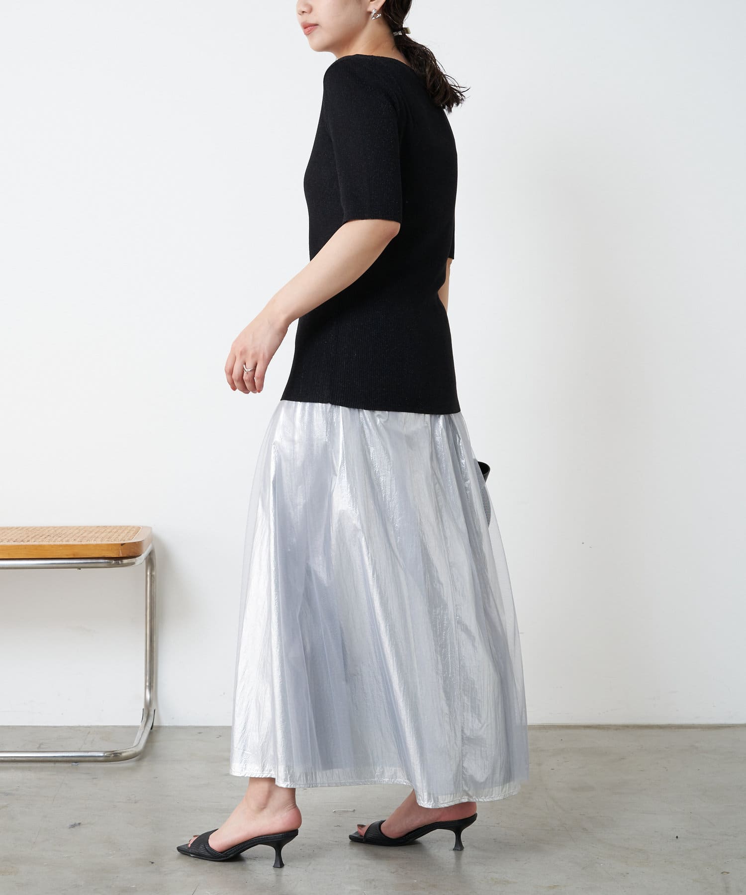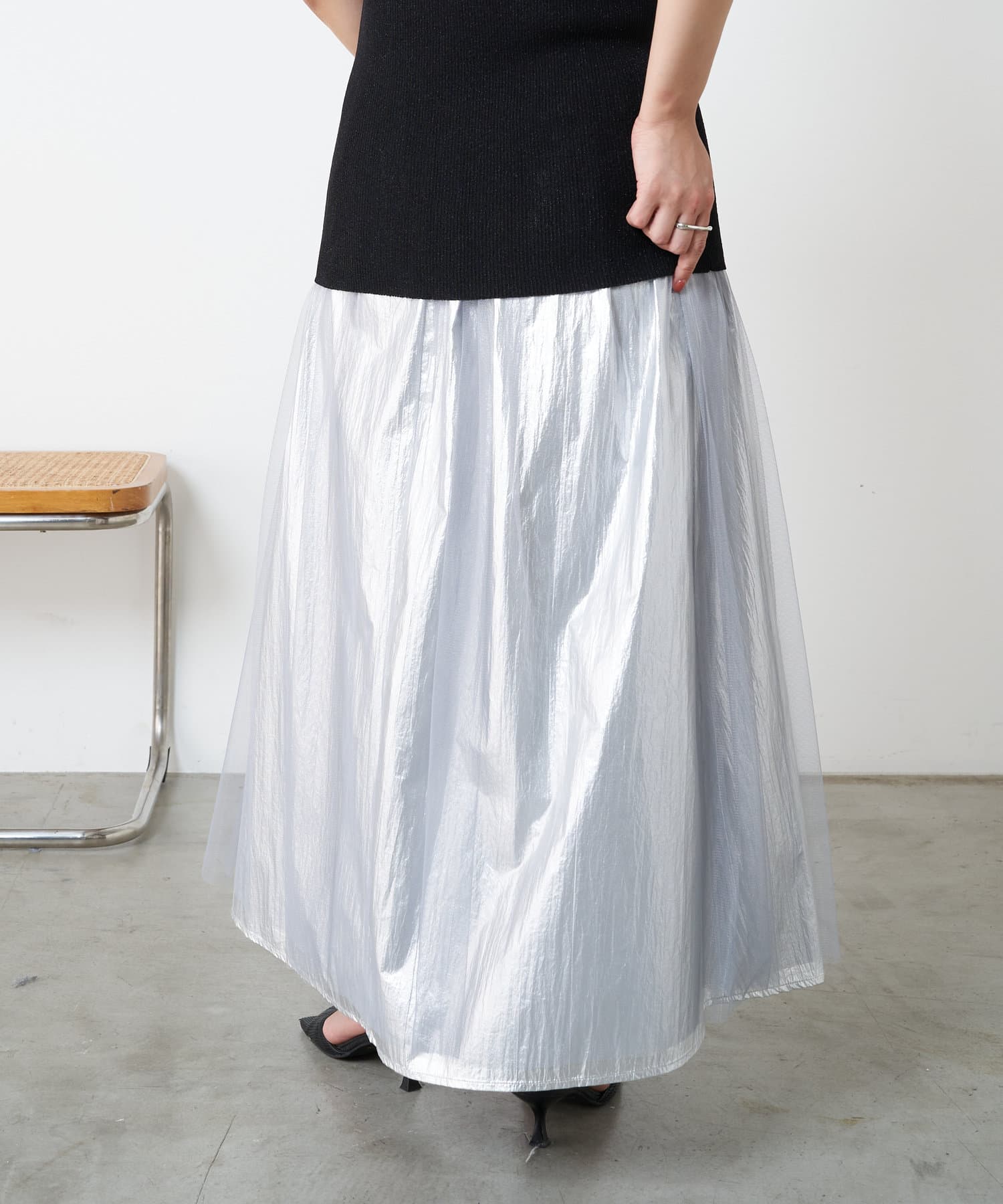 メタリックチュールスカート
