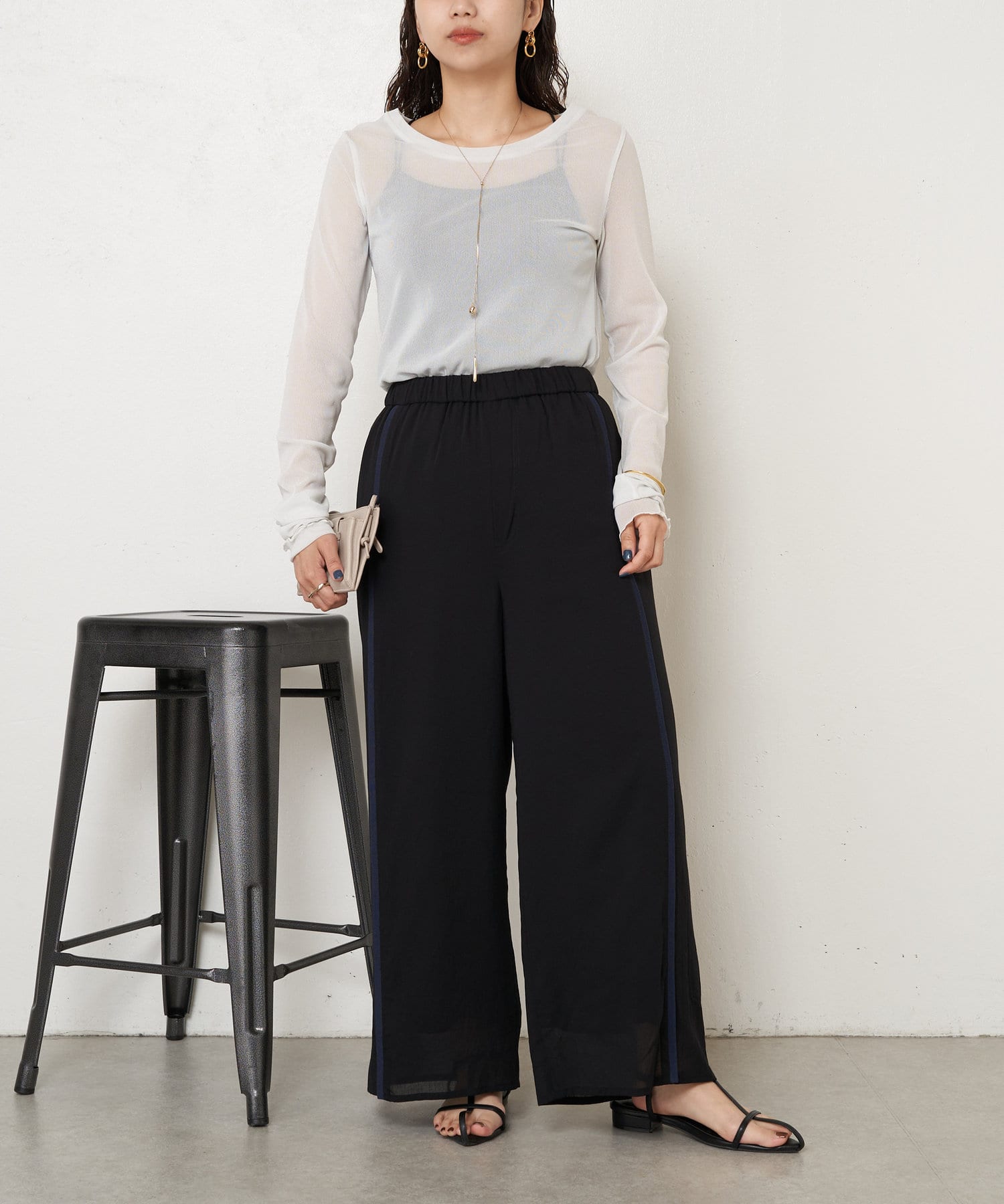 ・シンプルながら配色ラインがポイントのイージーパンツ。