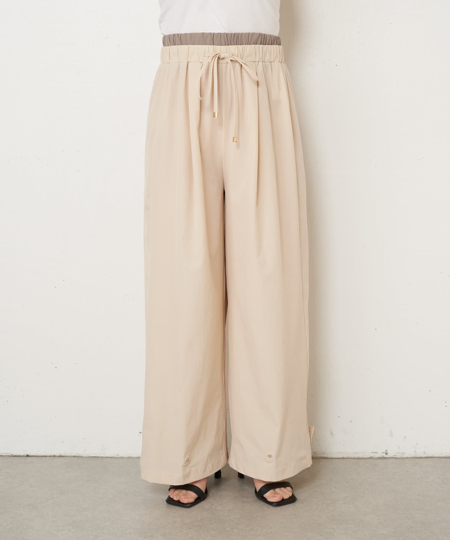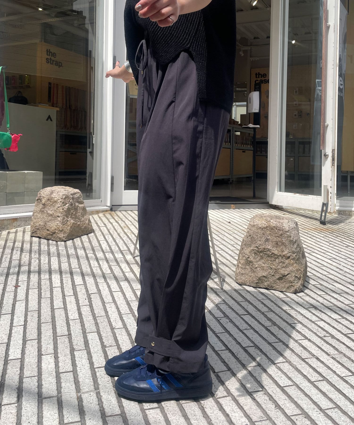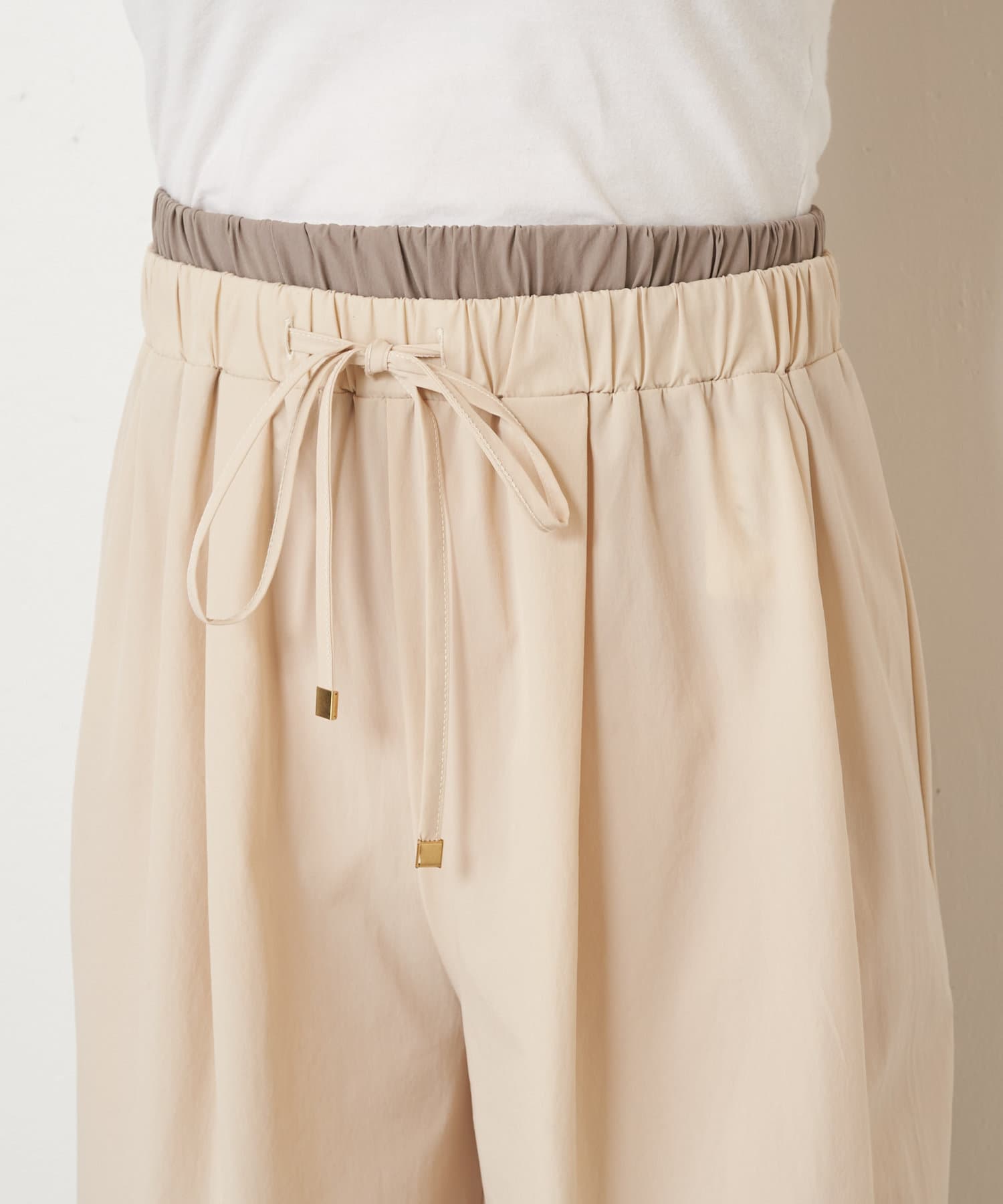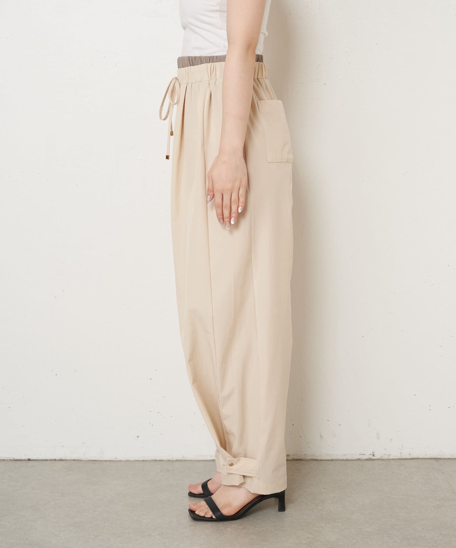 ・ウエスト部分がレイヤード風になったダブルウエストパンツ。