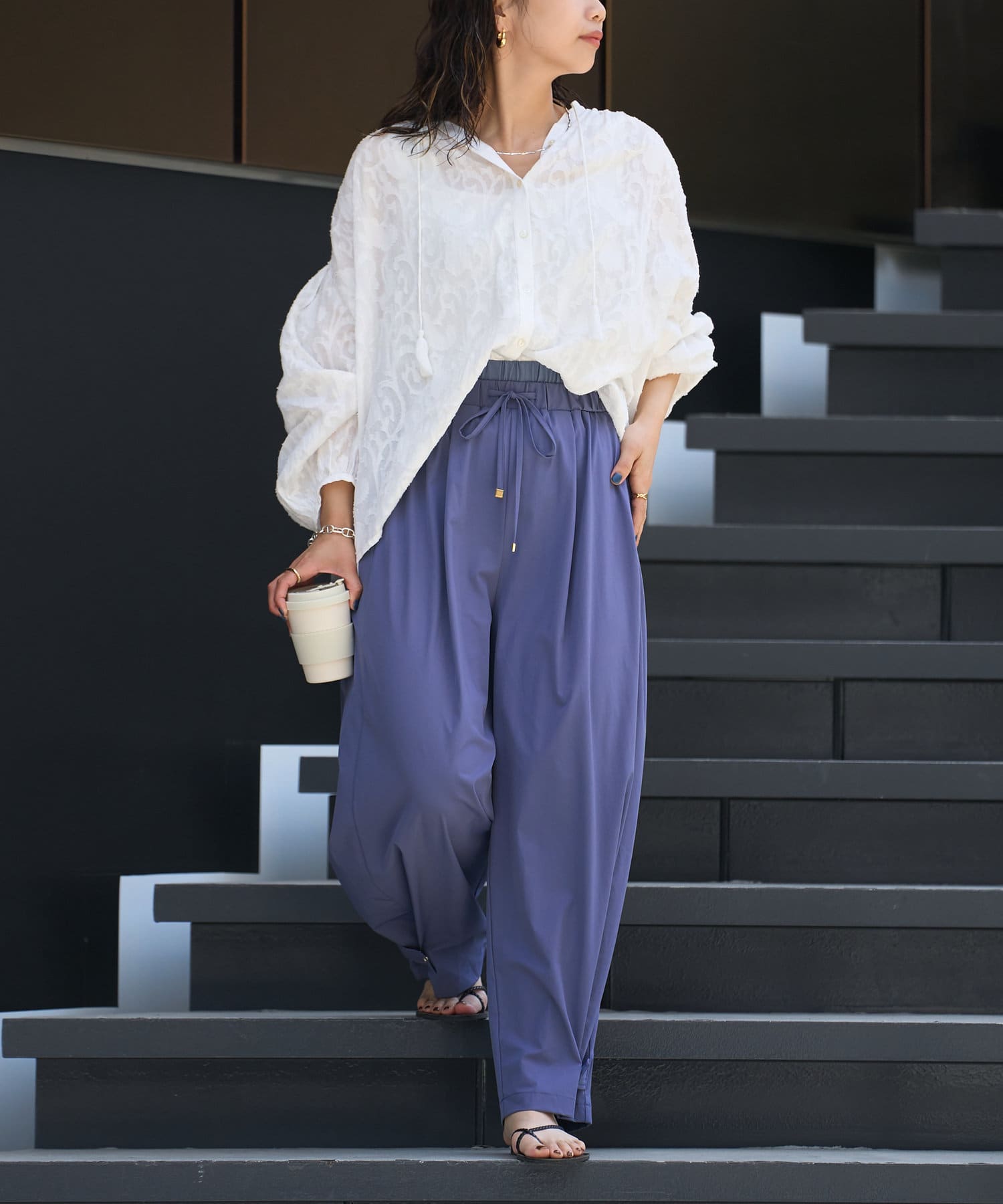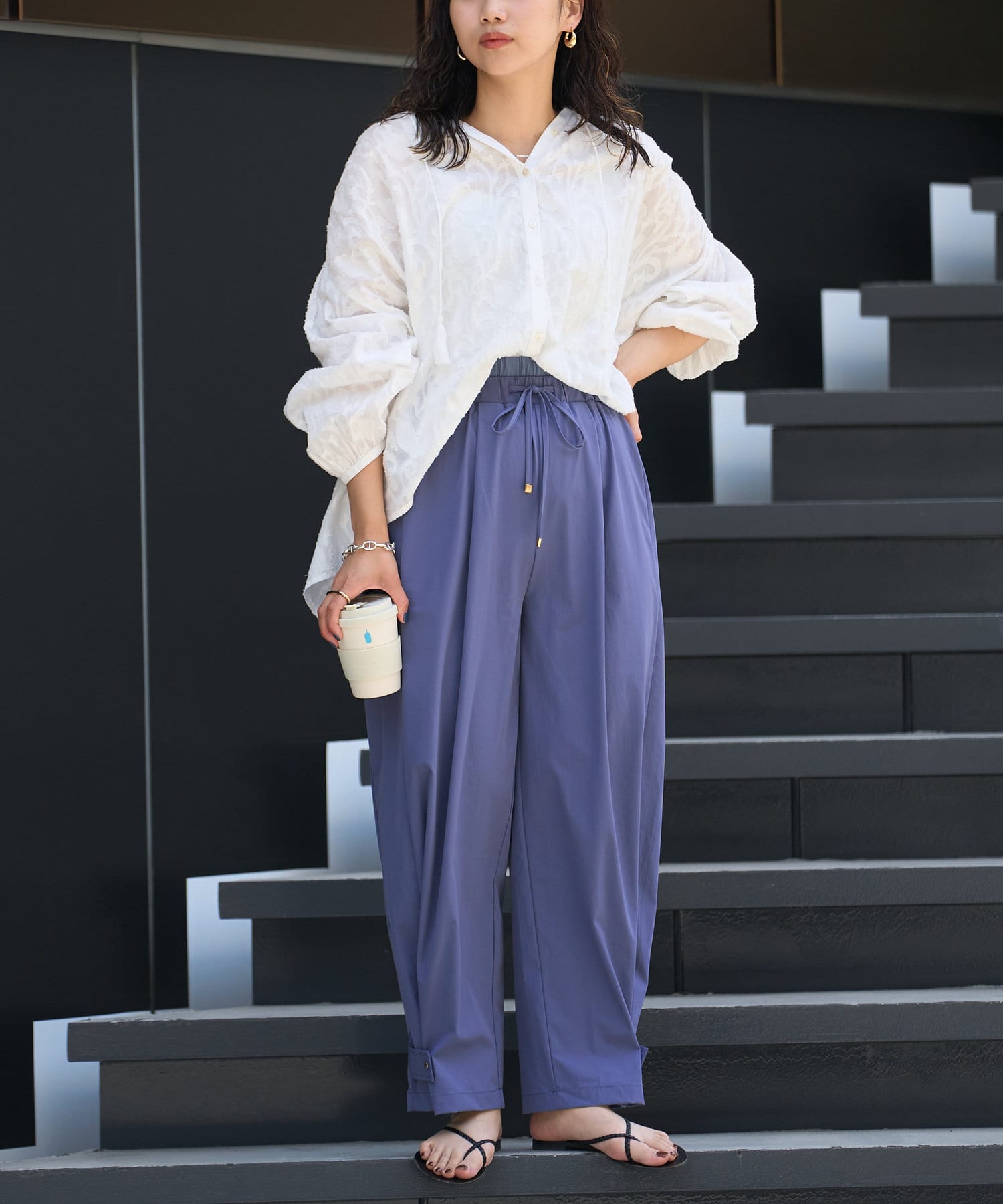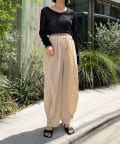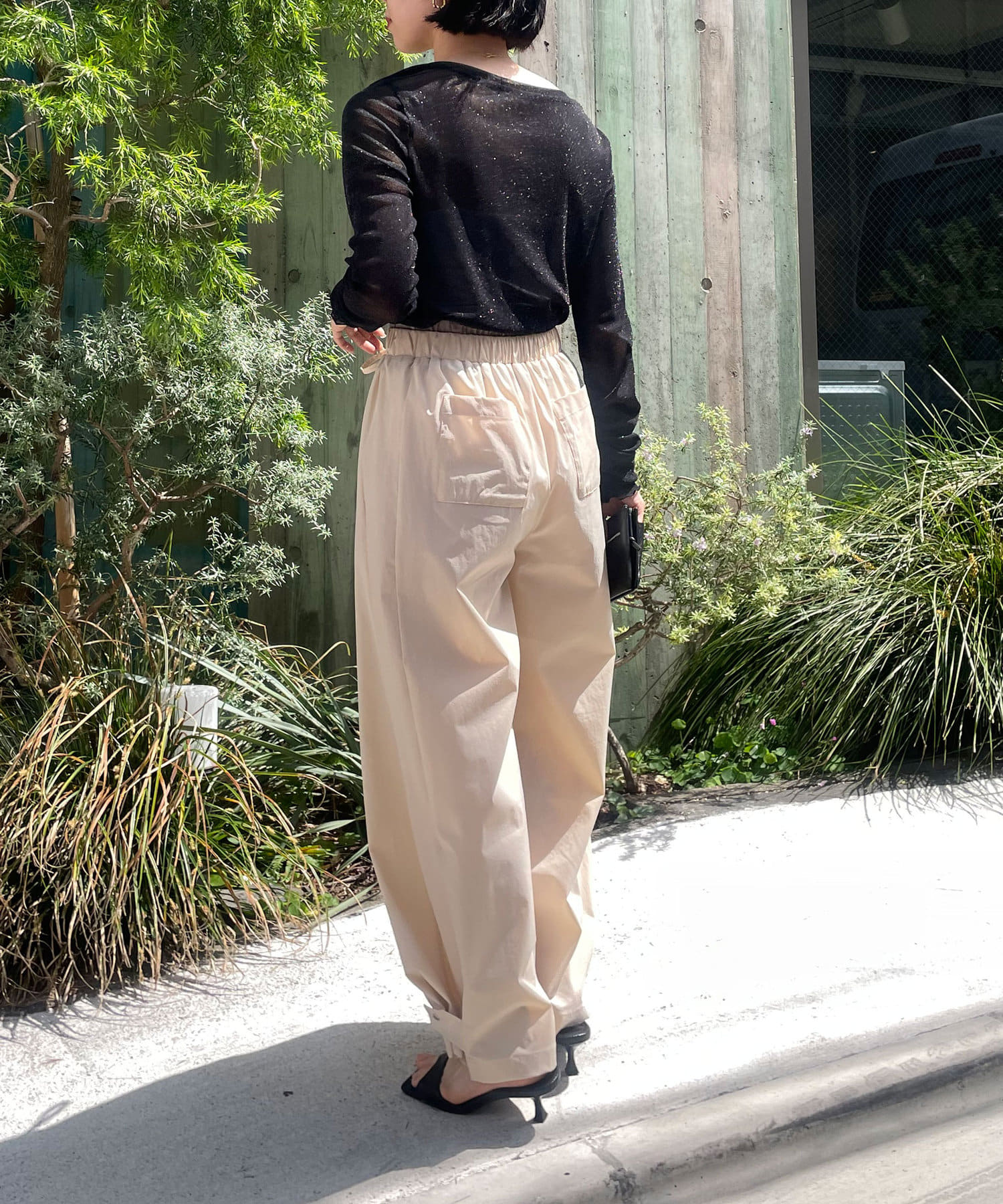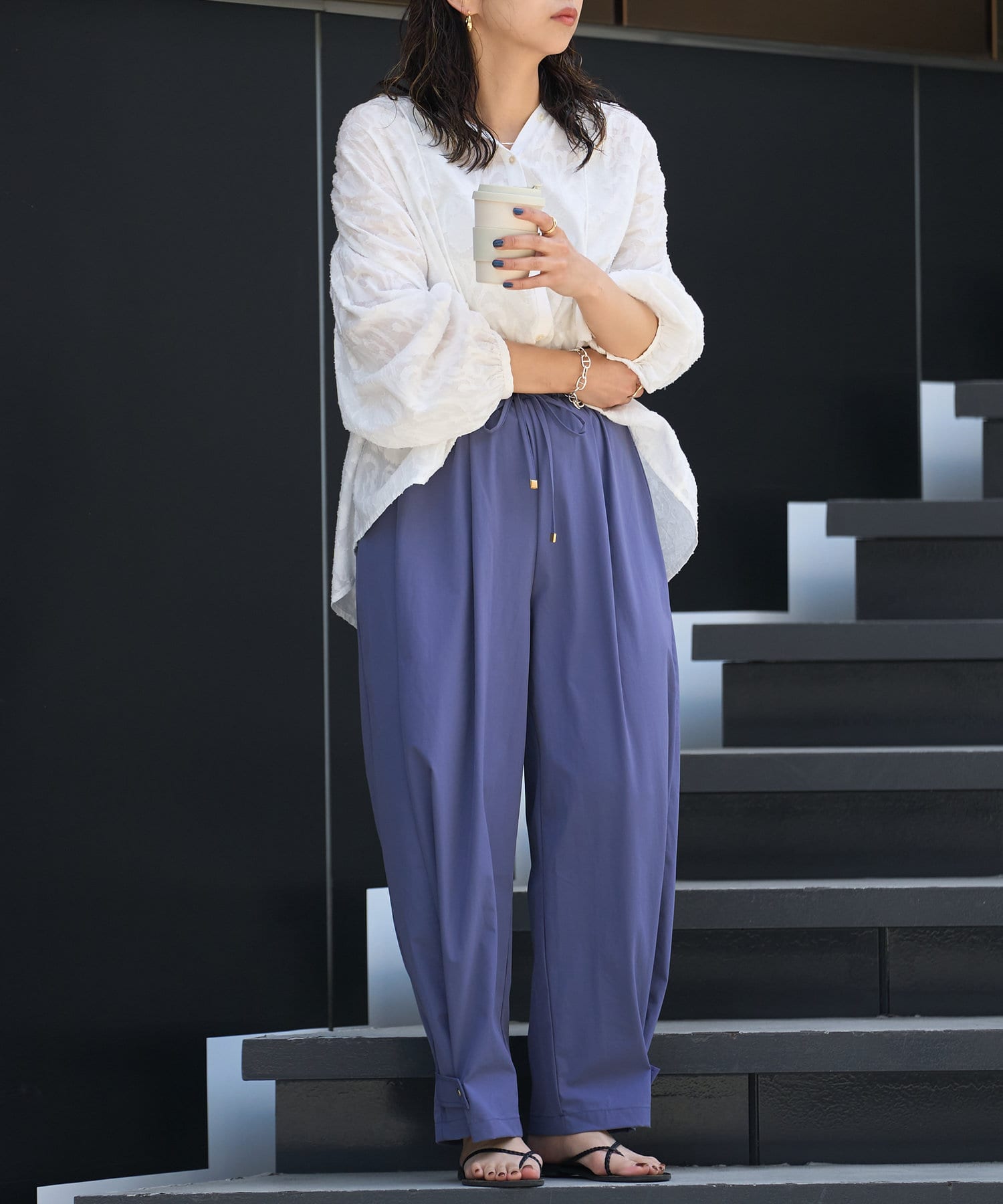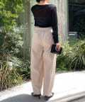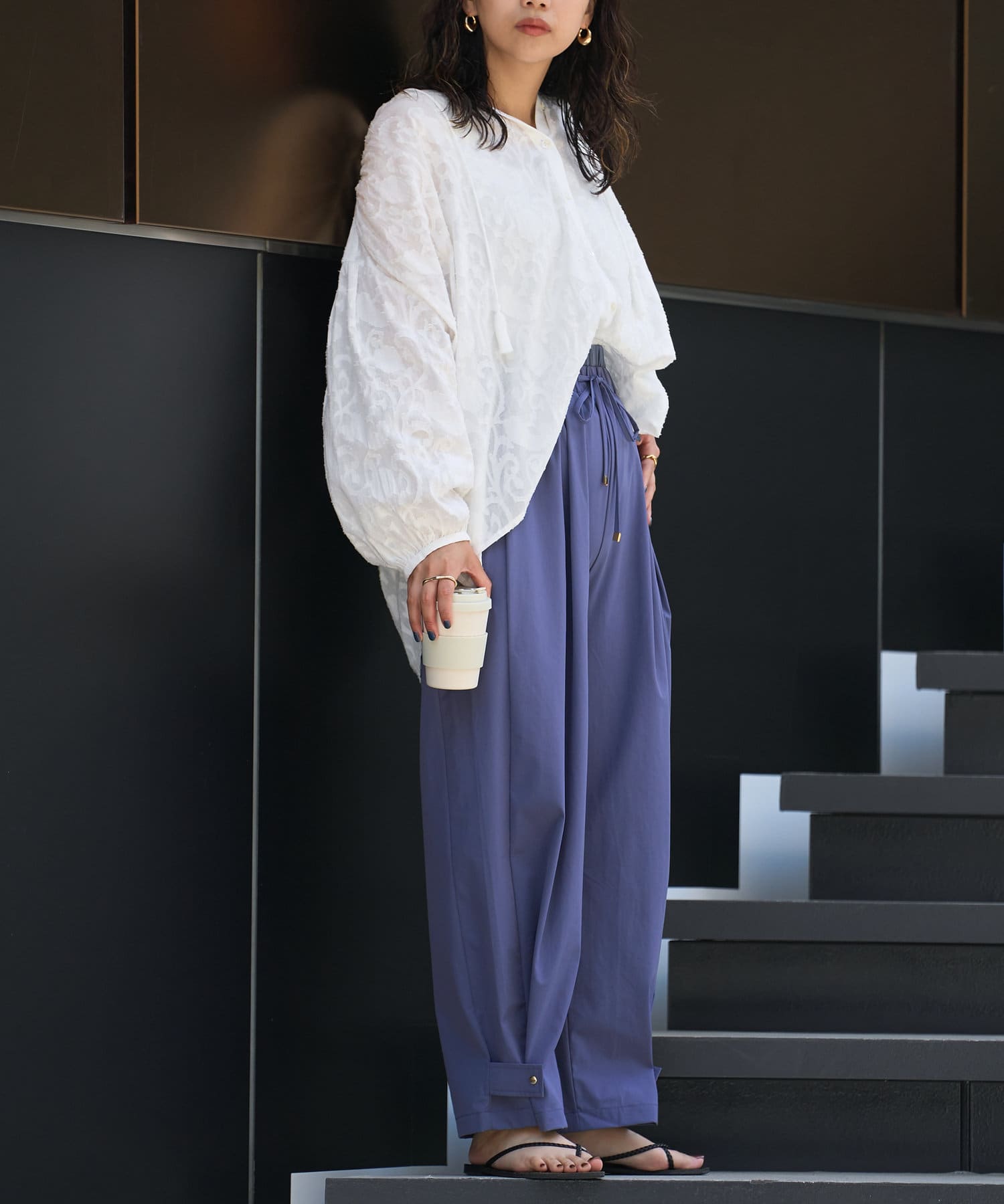 ・ウエスト部分がレイヤード風になったダブルウエストパンツ。