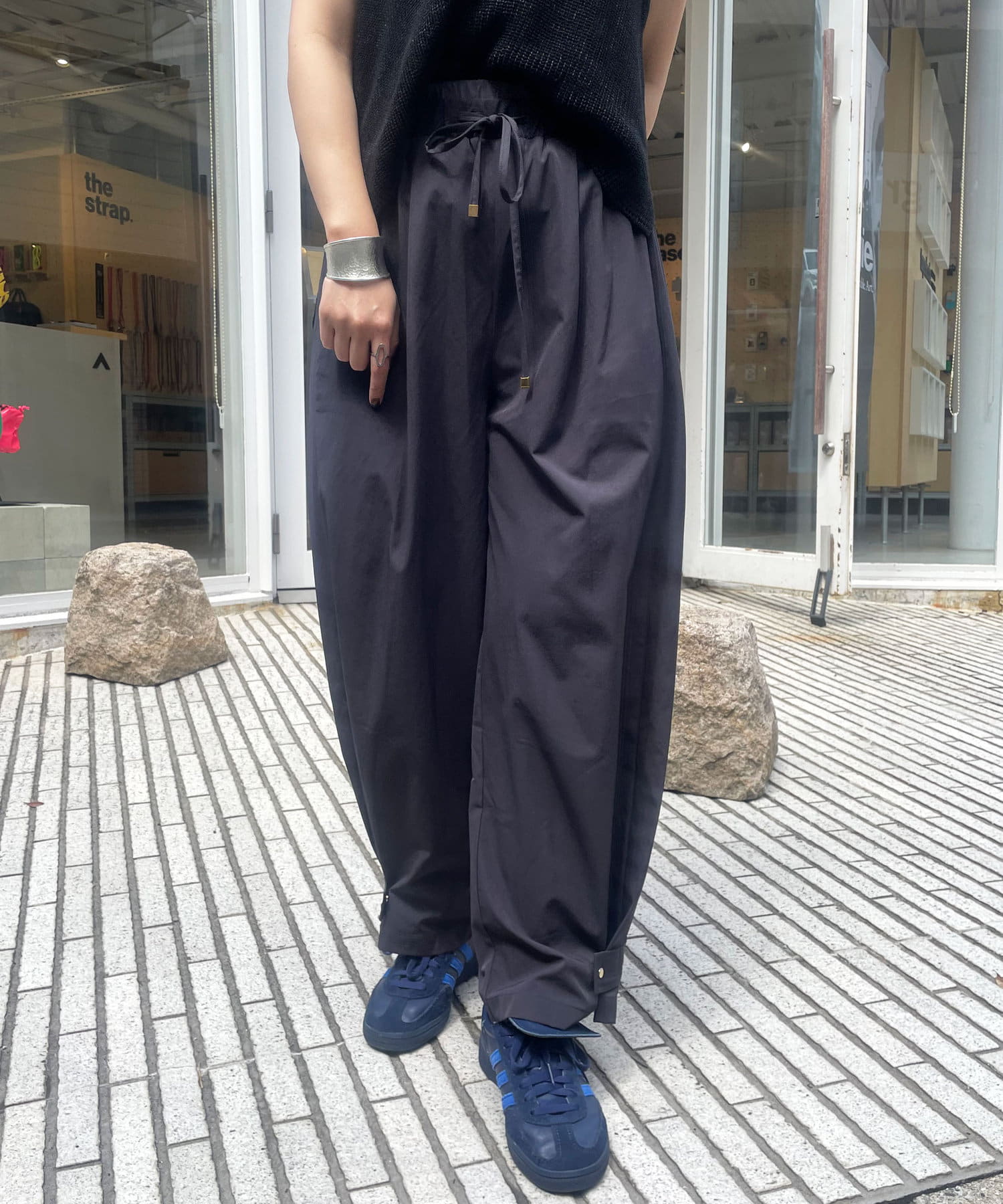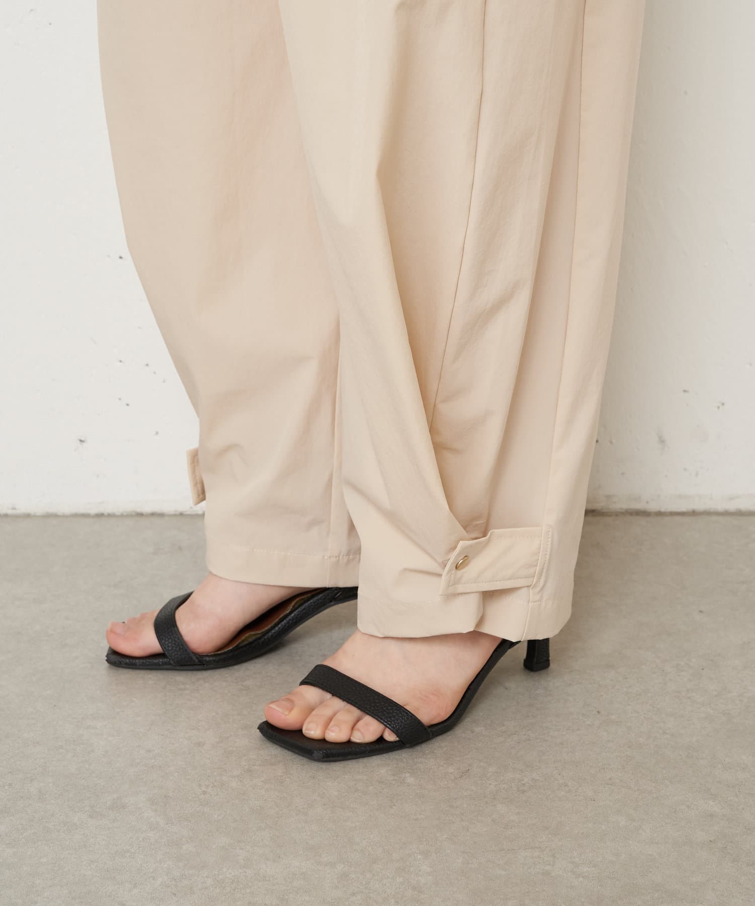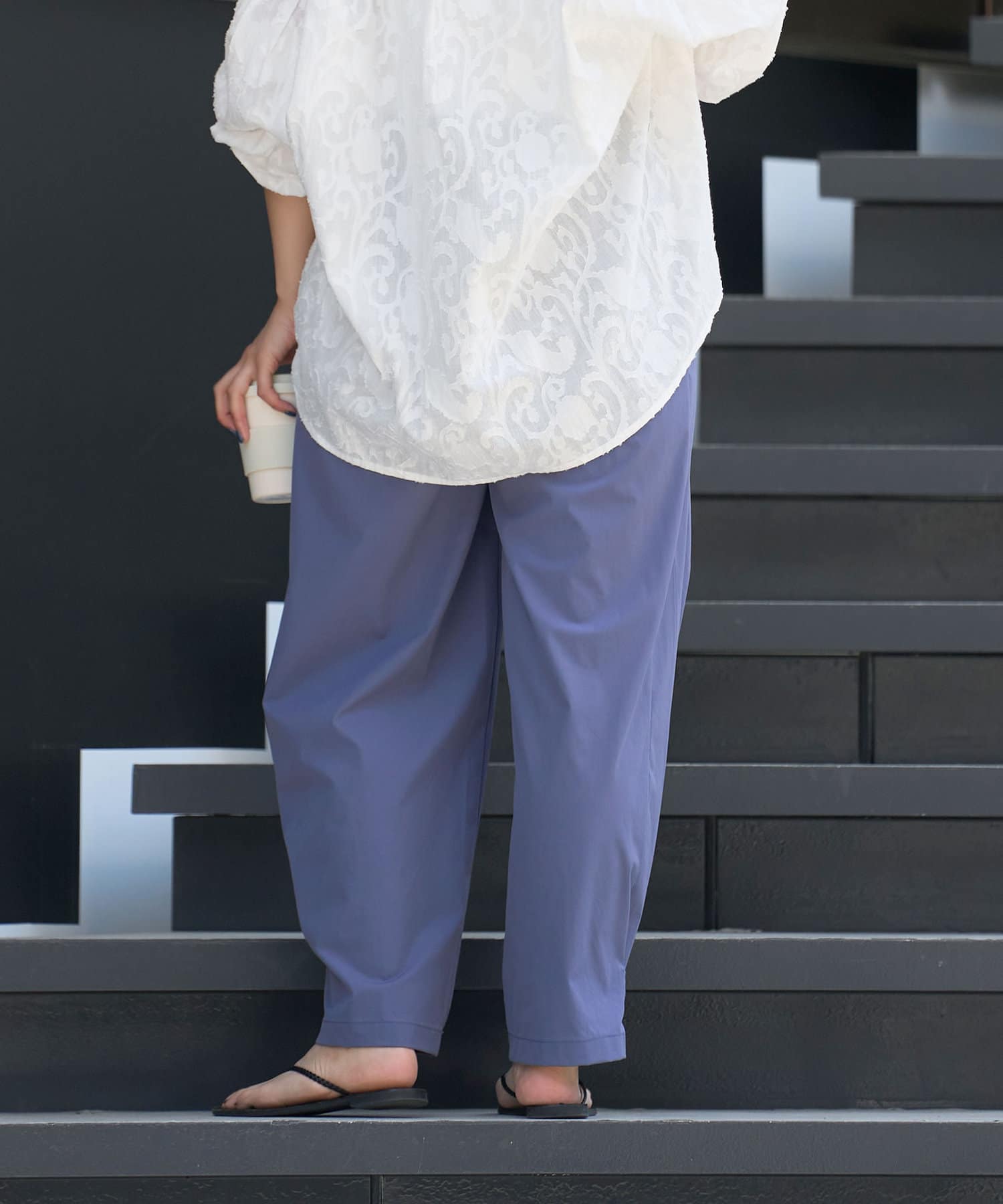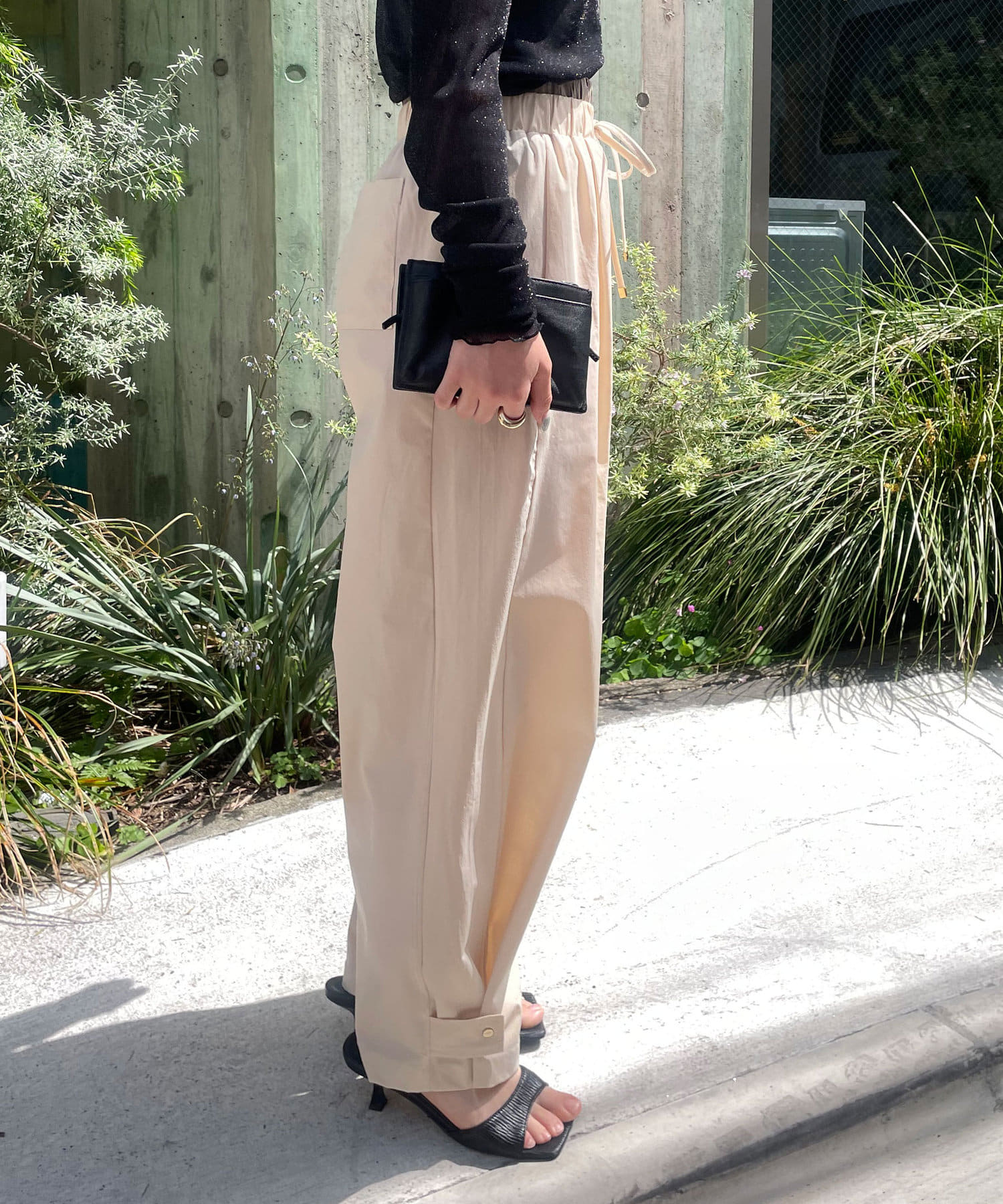・ウエスト部分がレイヤード風になったダブルウエストパンツ。