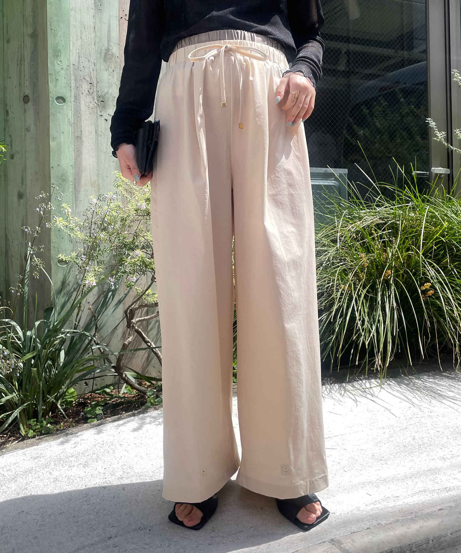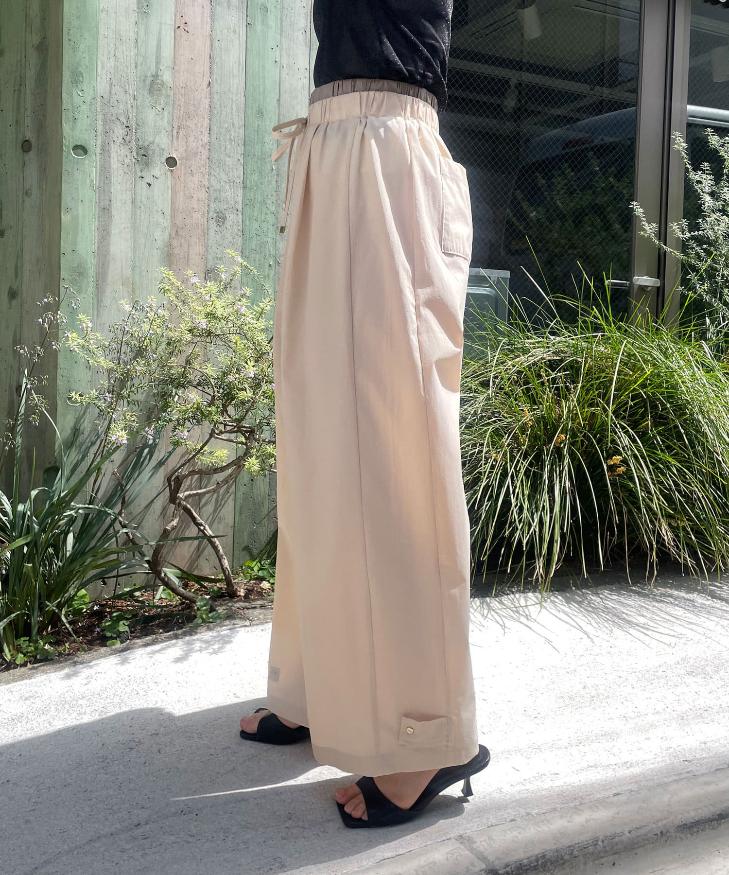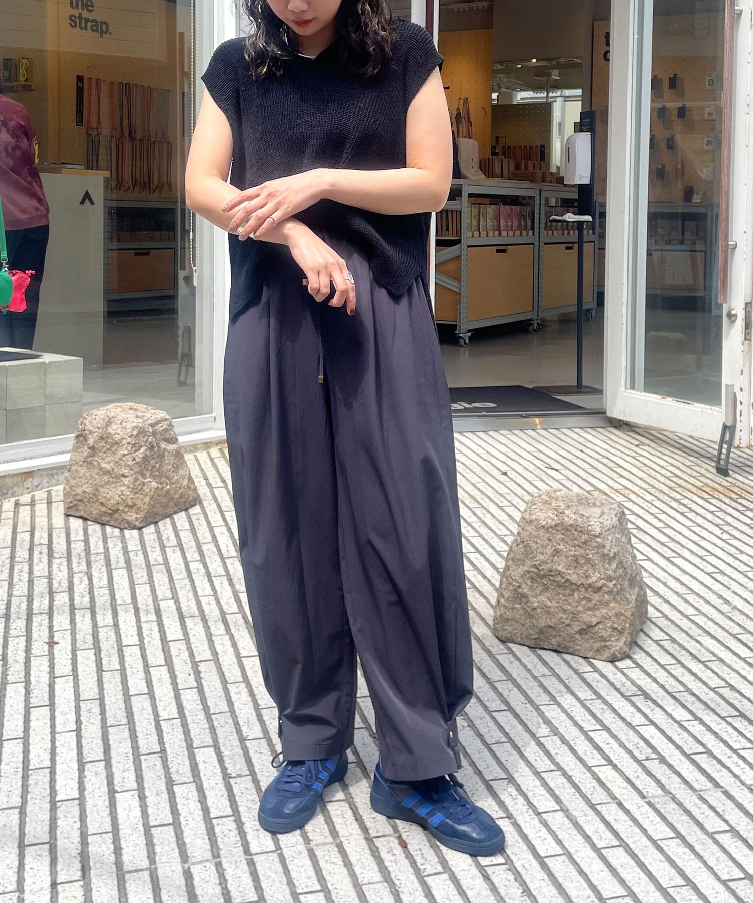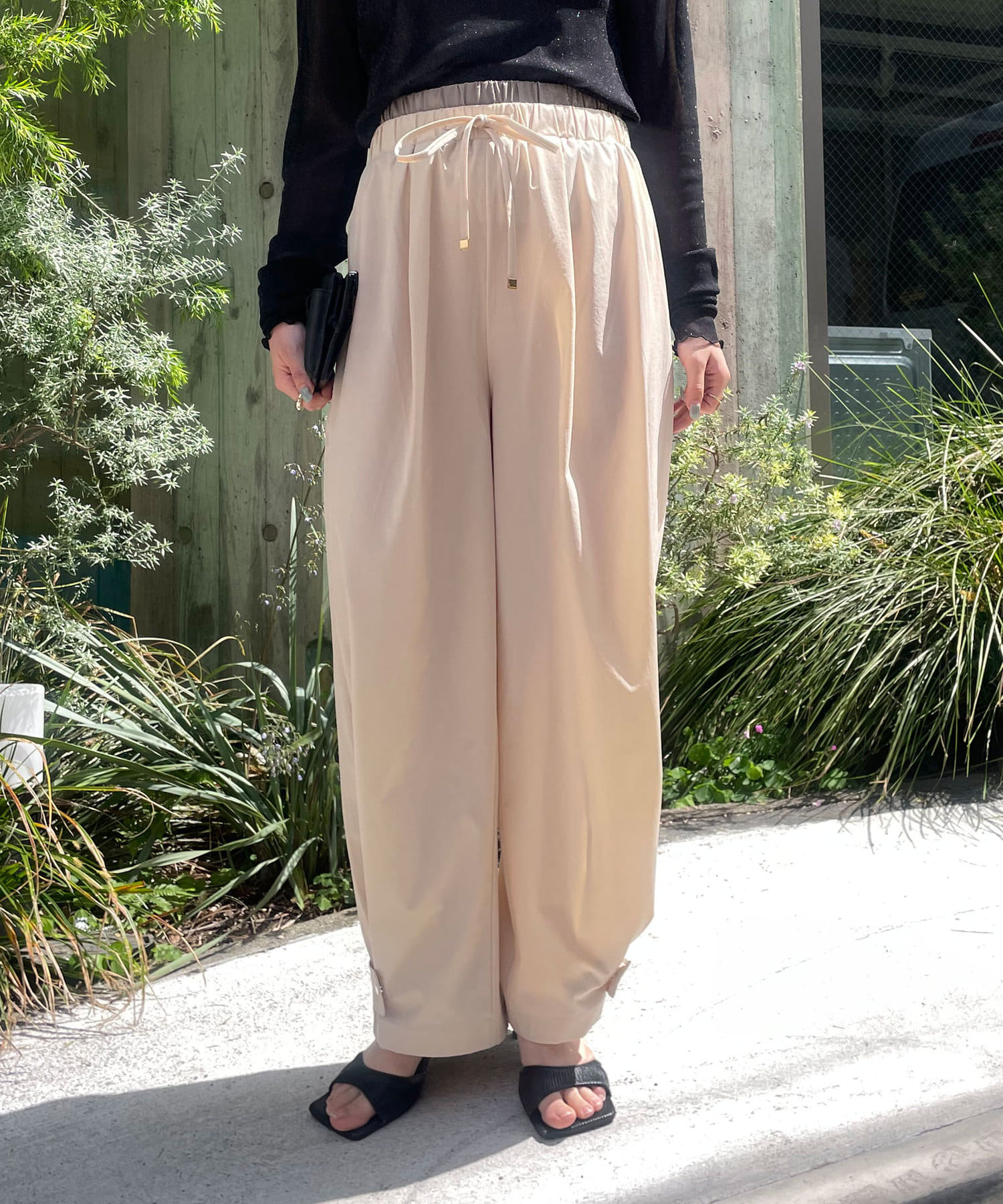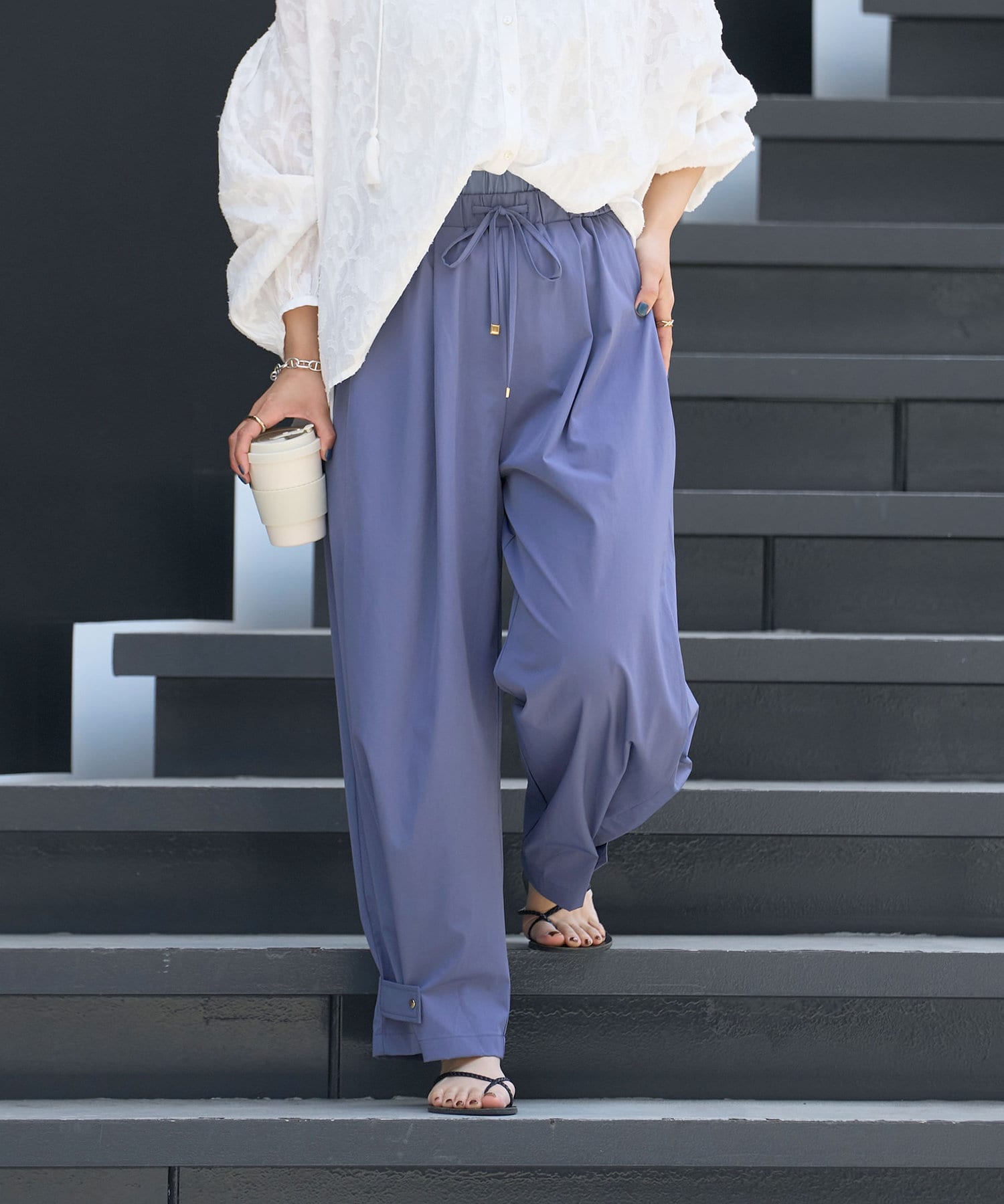 ・ウエスト部分がレイヤード風になったダブルウエストパンツ。