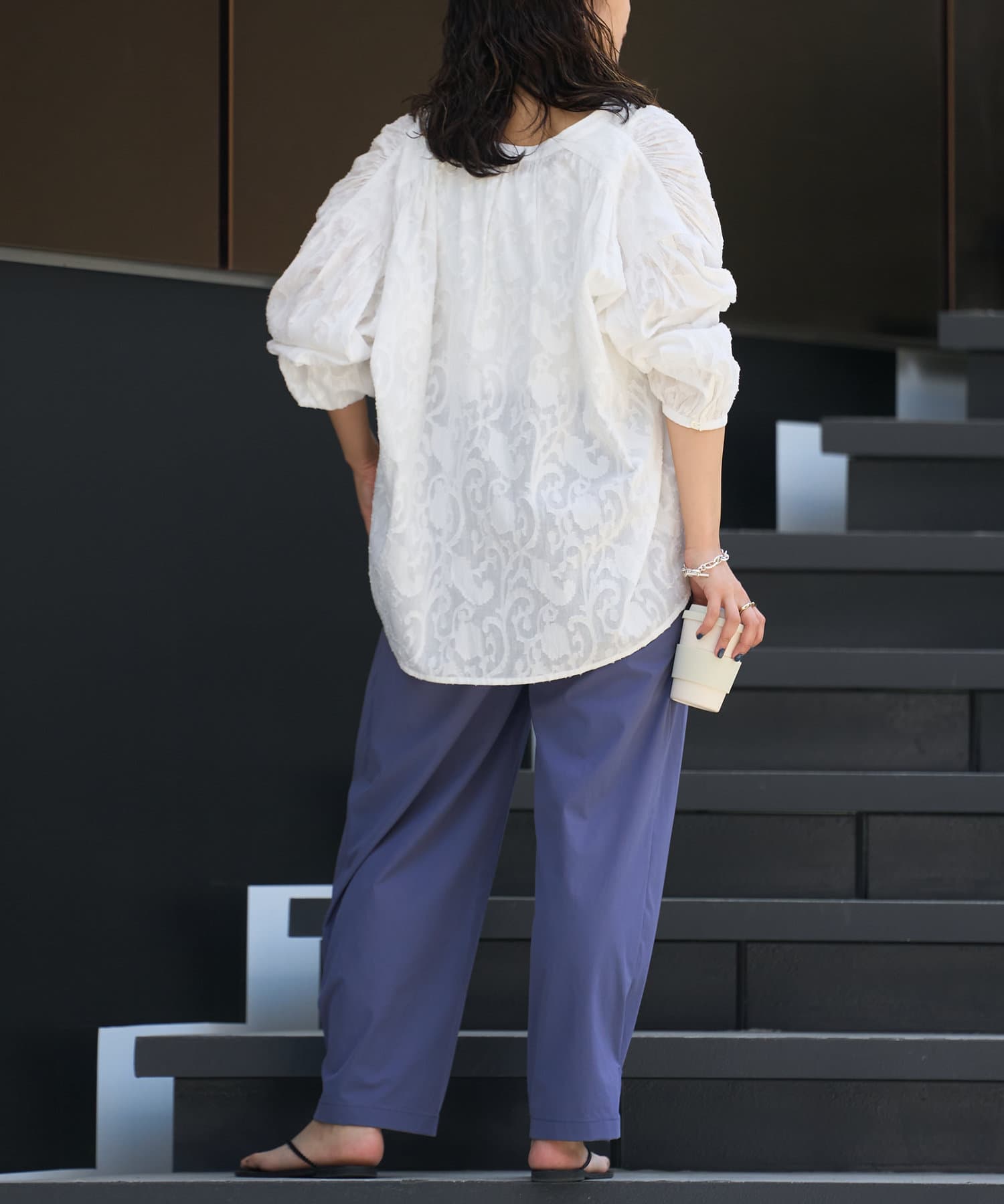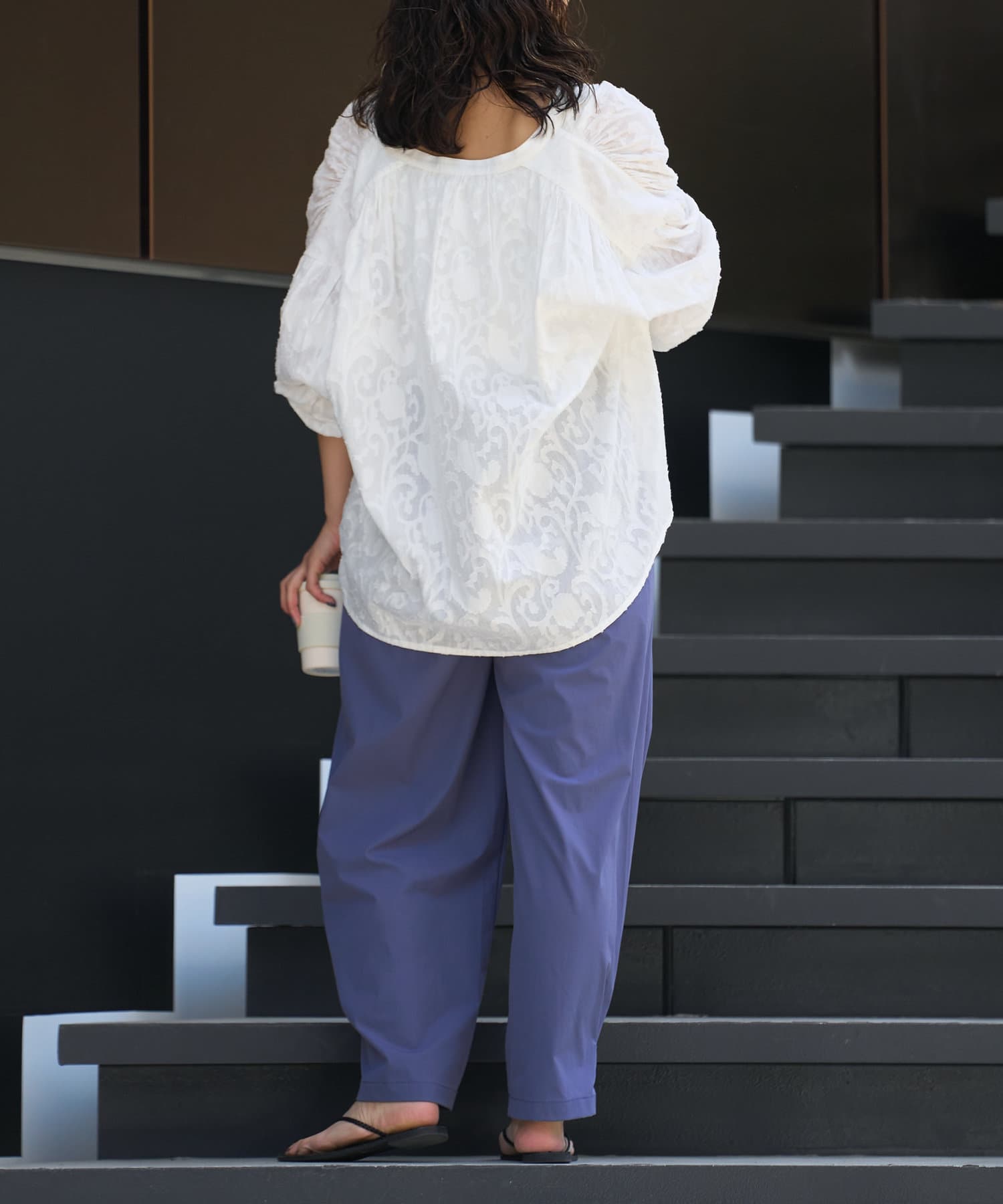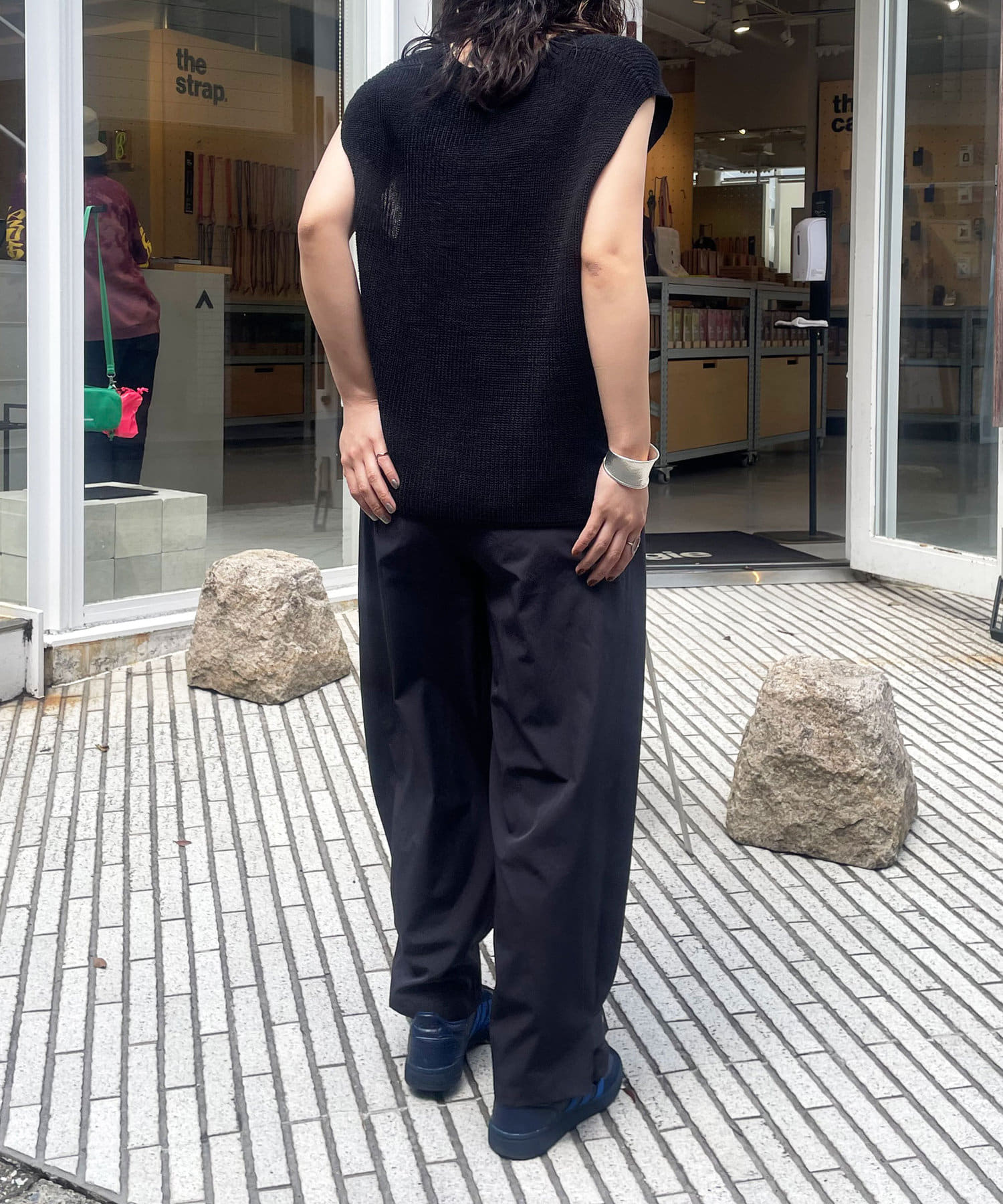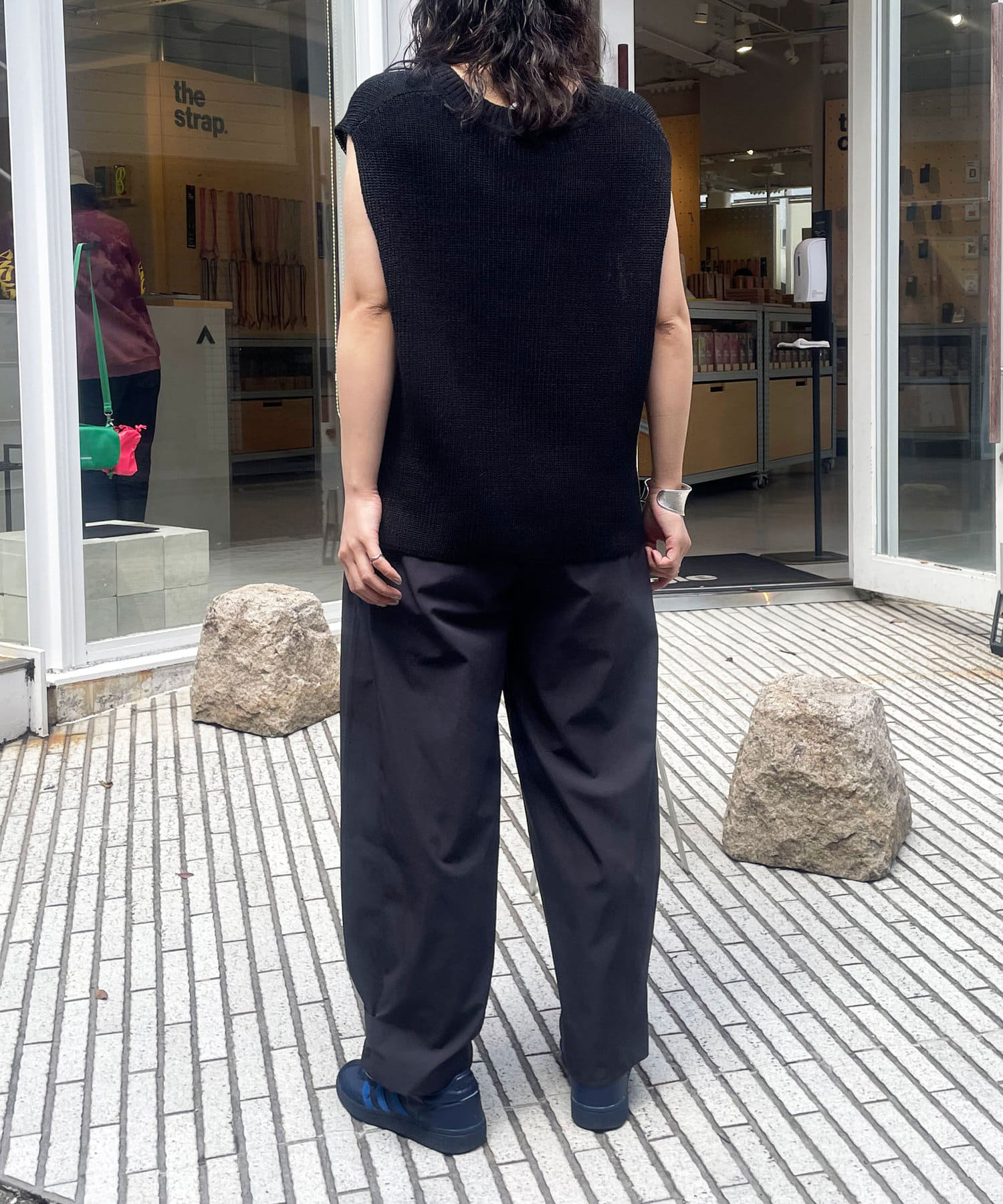 ・ウエスト部分がレイヤード風になったダブルウエストパンツ。