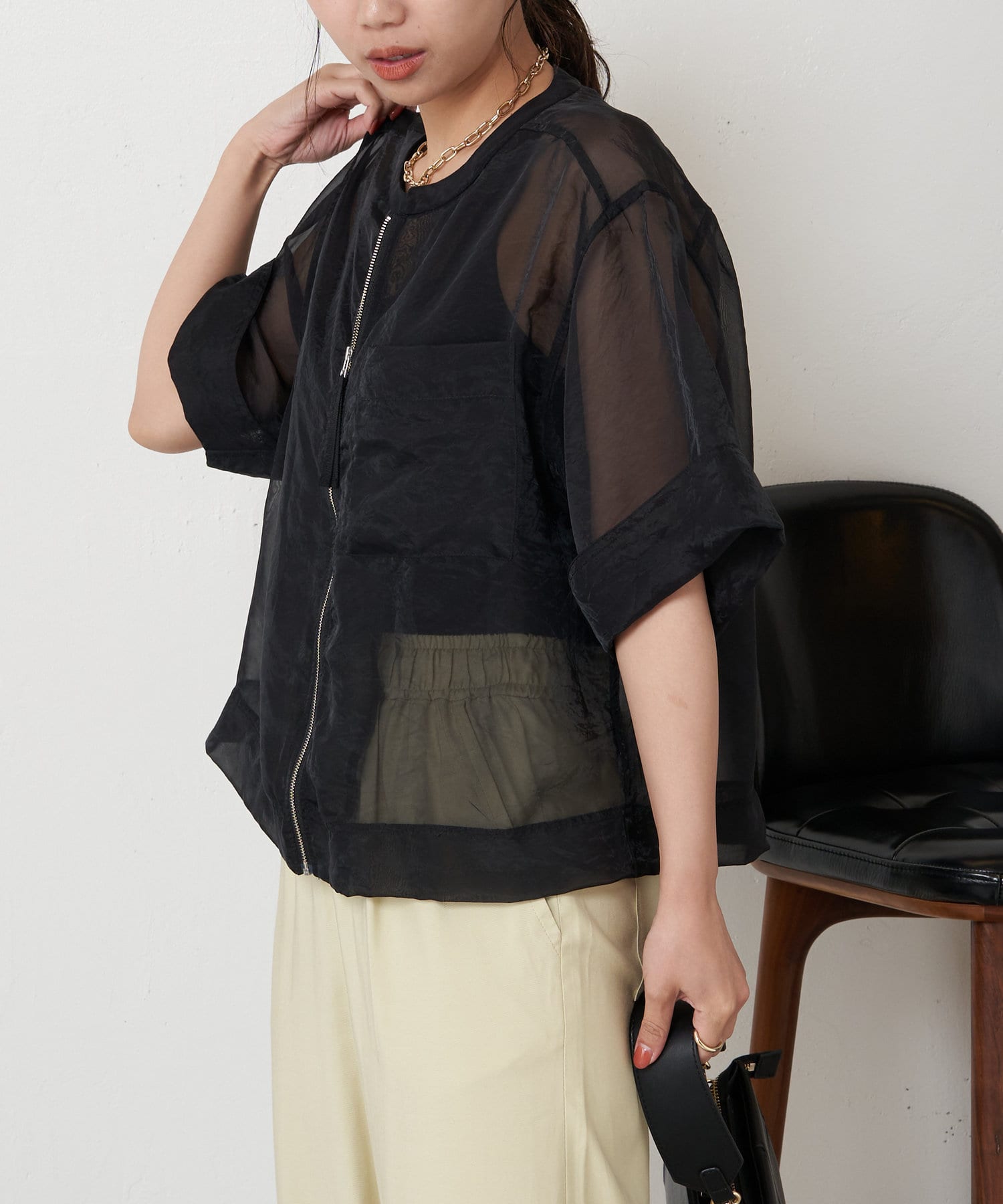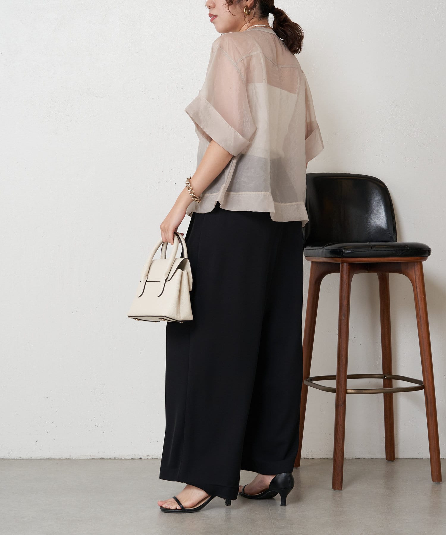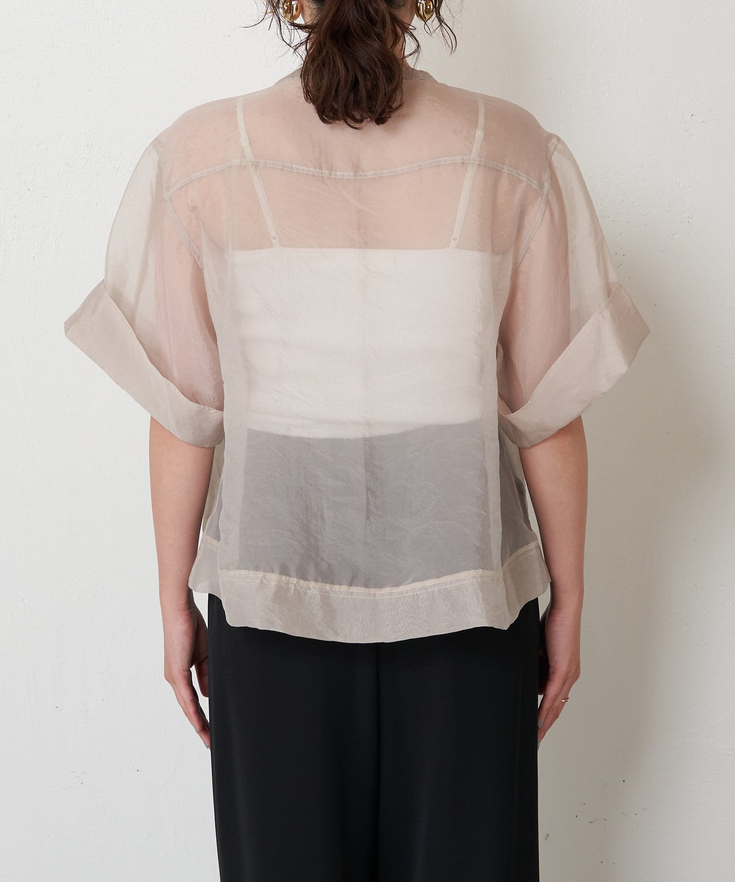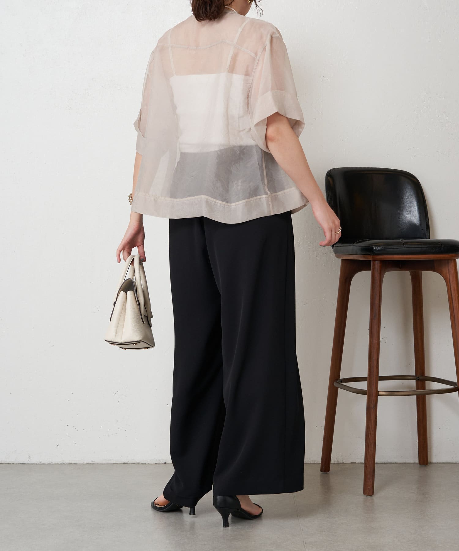 ・これからの季節に取り入れやすい半袖と、程よいシアー素材がヘルシーな抜け感を演出。