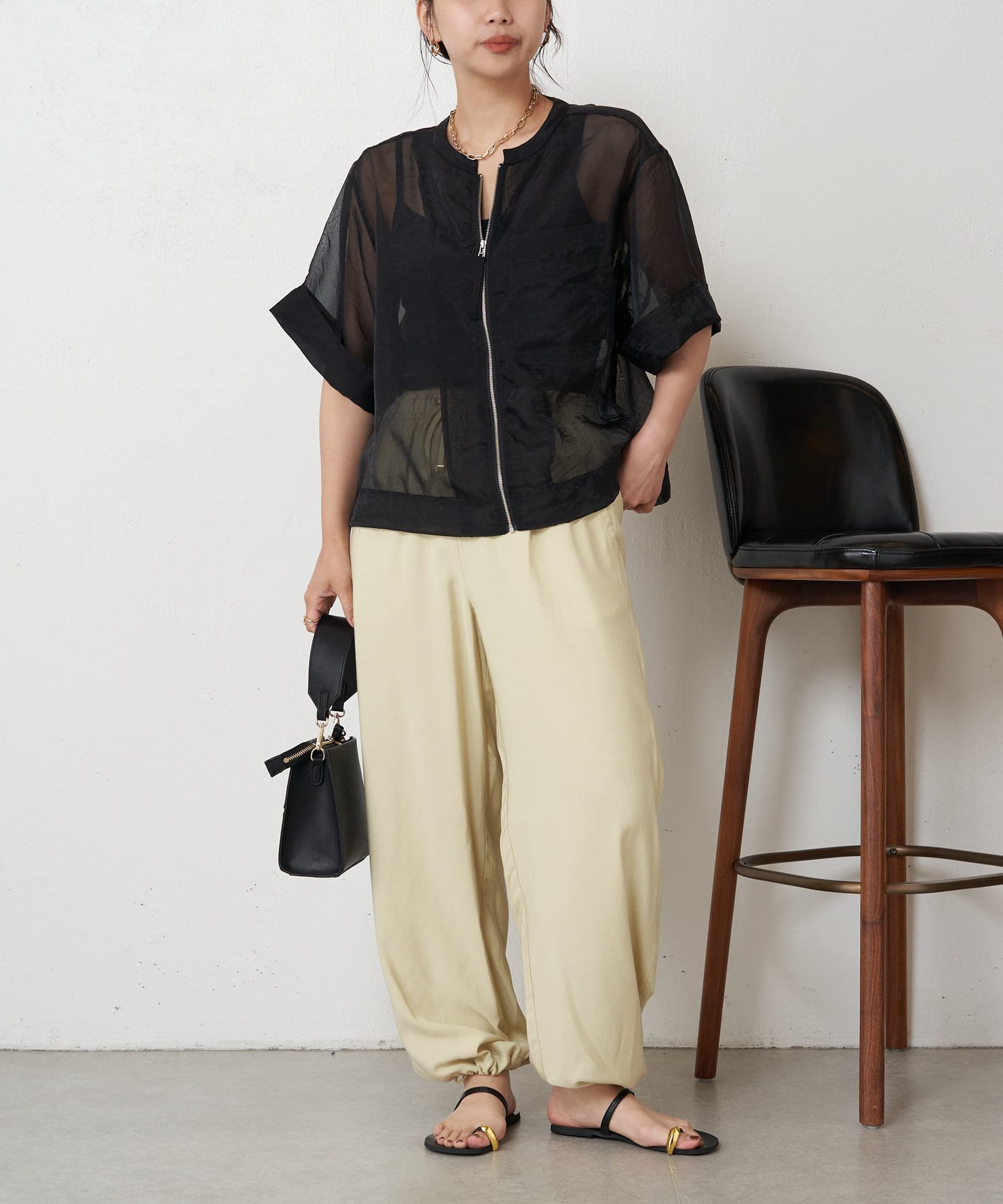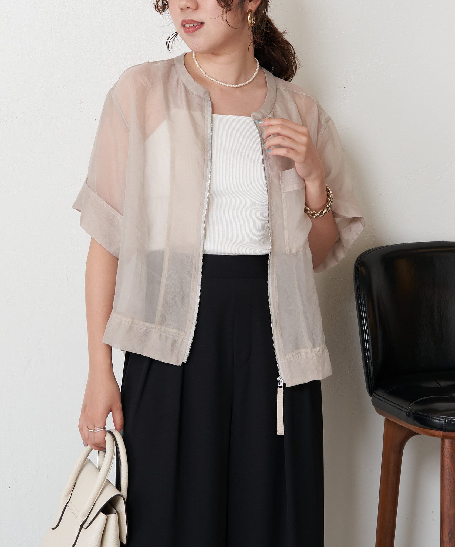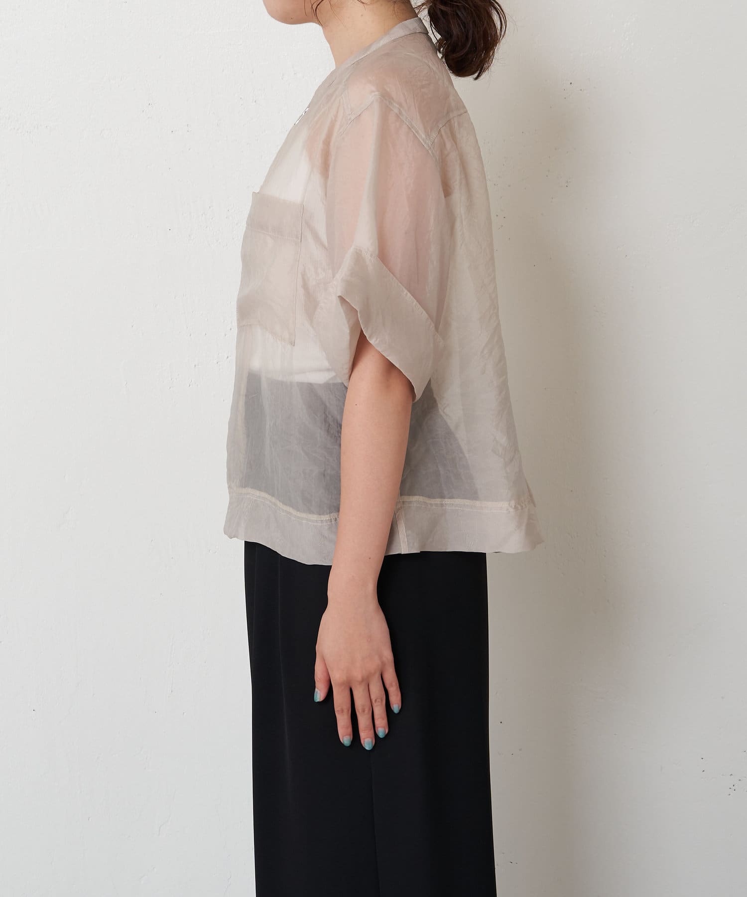 ・これからの季節に取り入れやすい半袖と、程よいシアー素材がヘルシーな抜け感を演出。