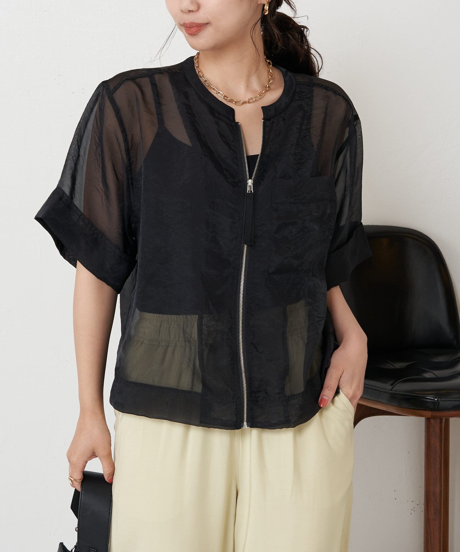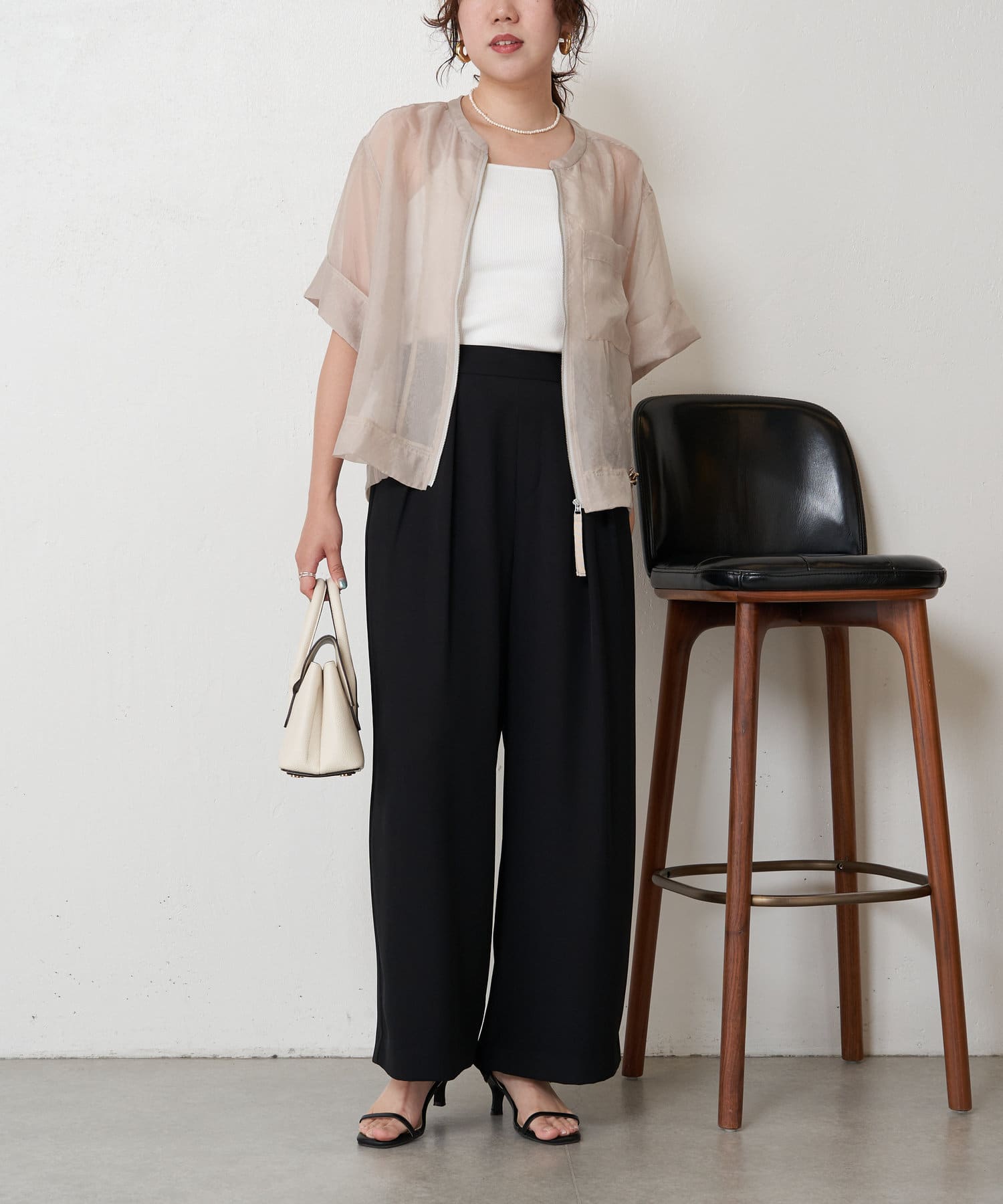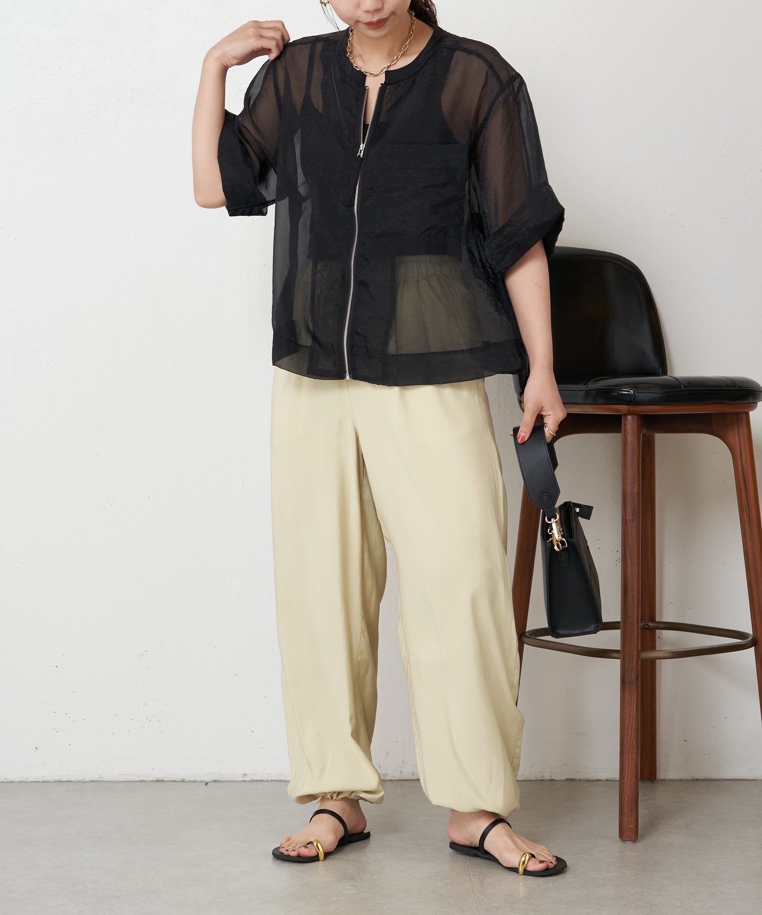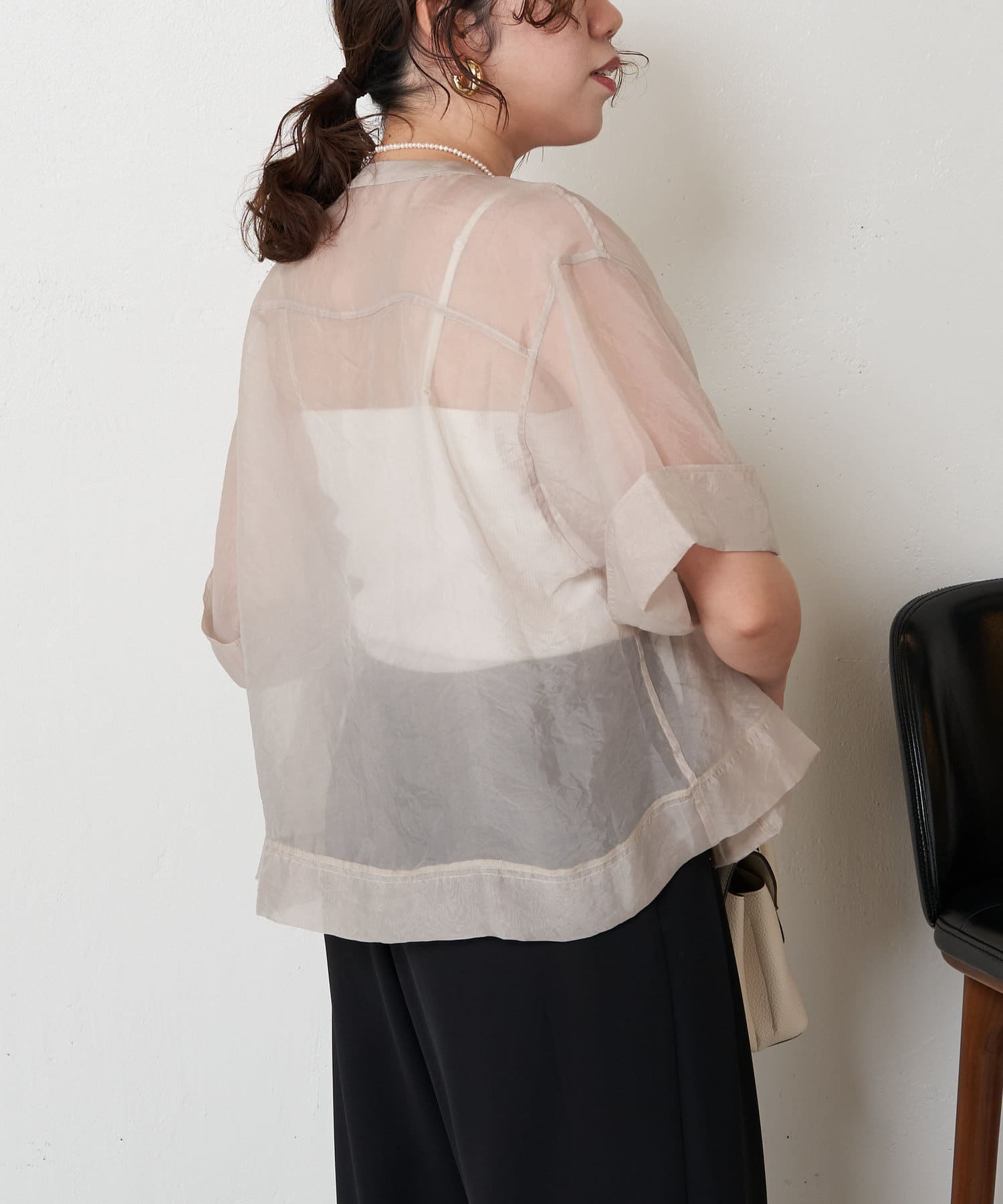 ・これからの季節に取り入れやすい半袖と、程よいシアー素材がヘルシーな抜け感を演出。