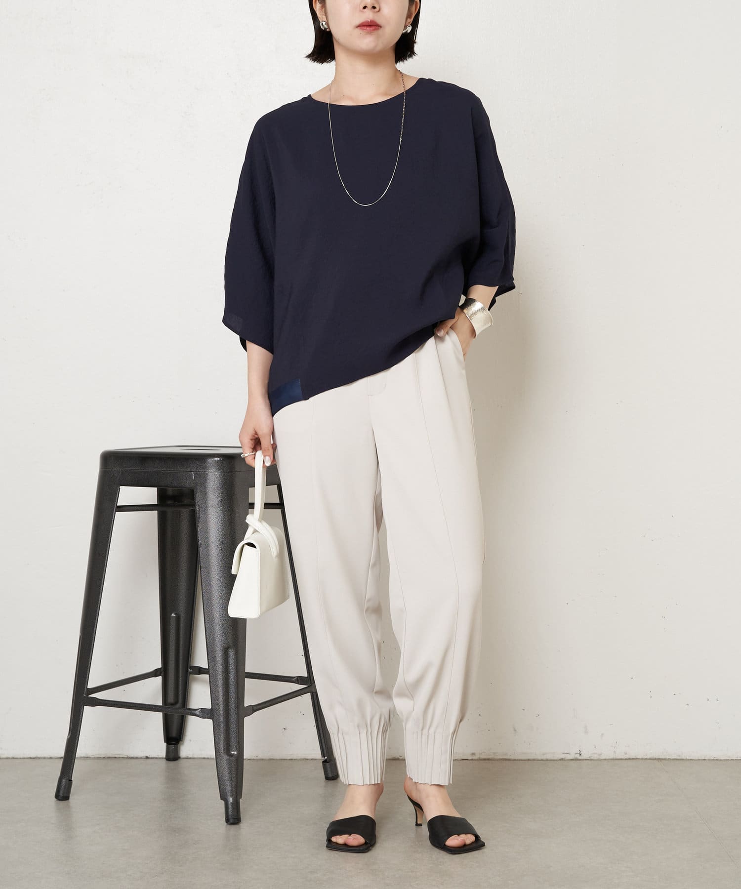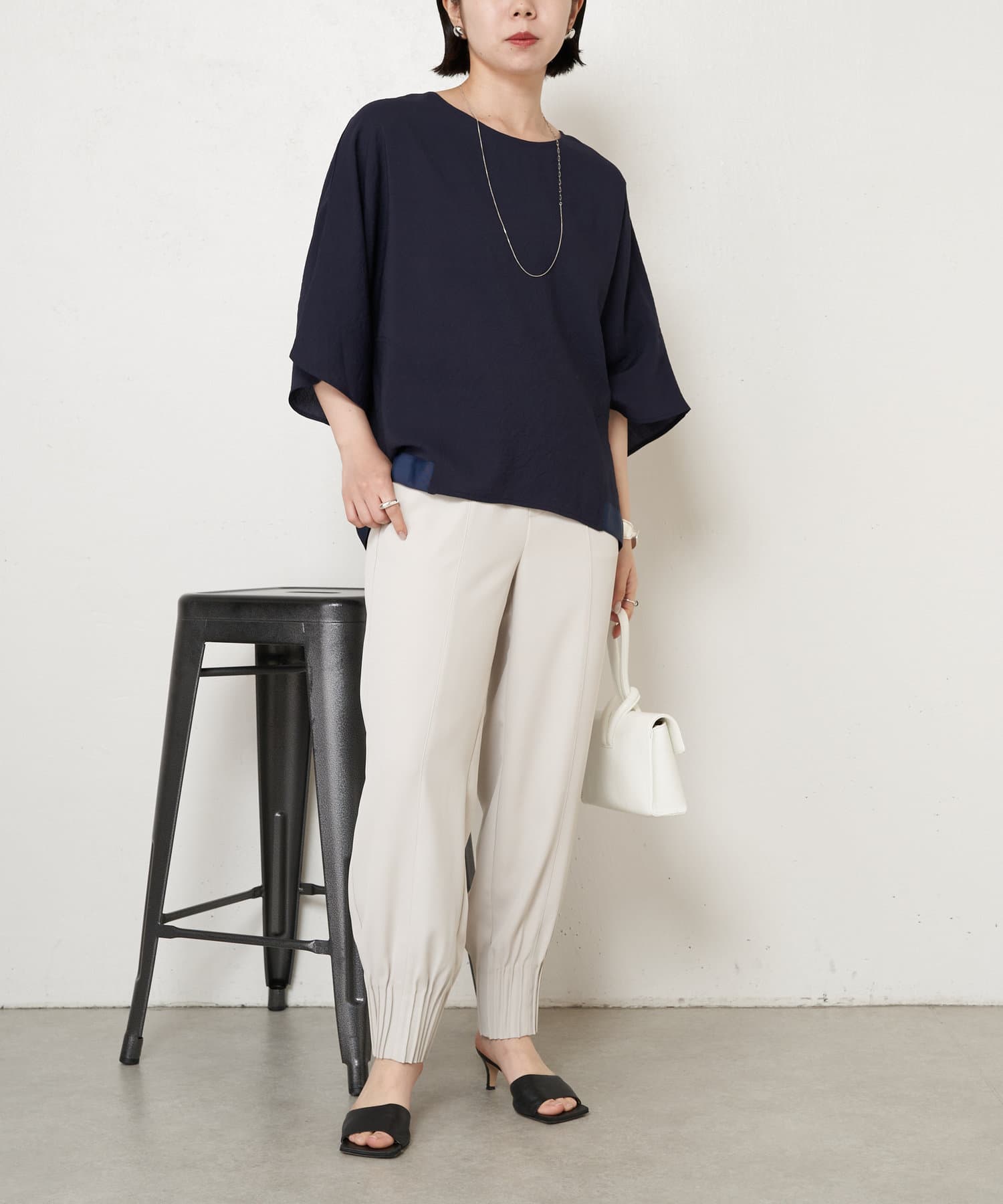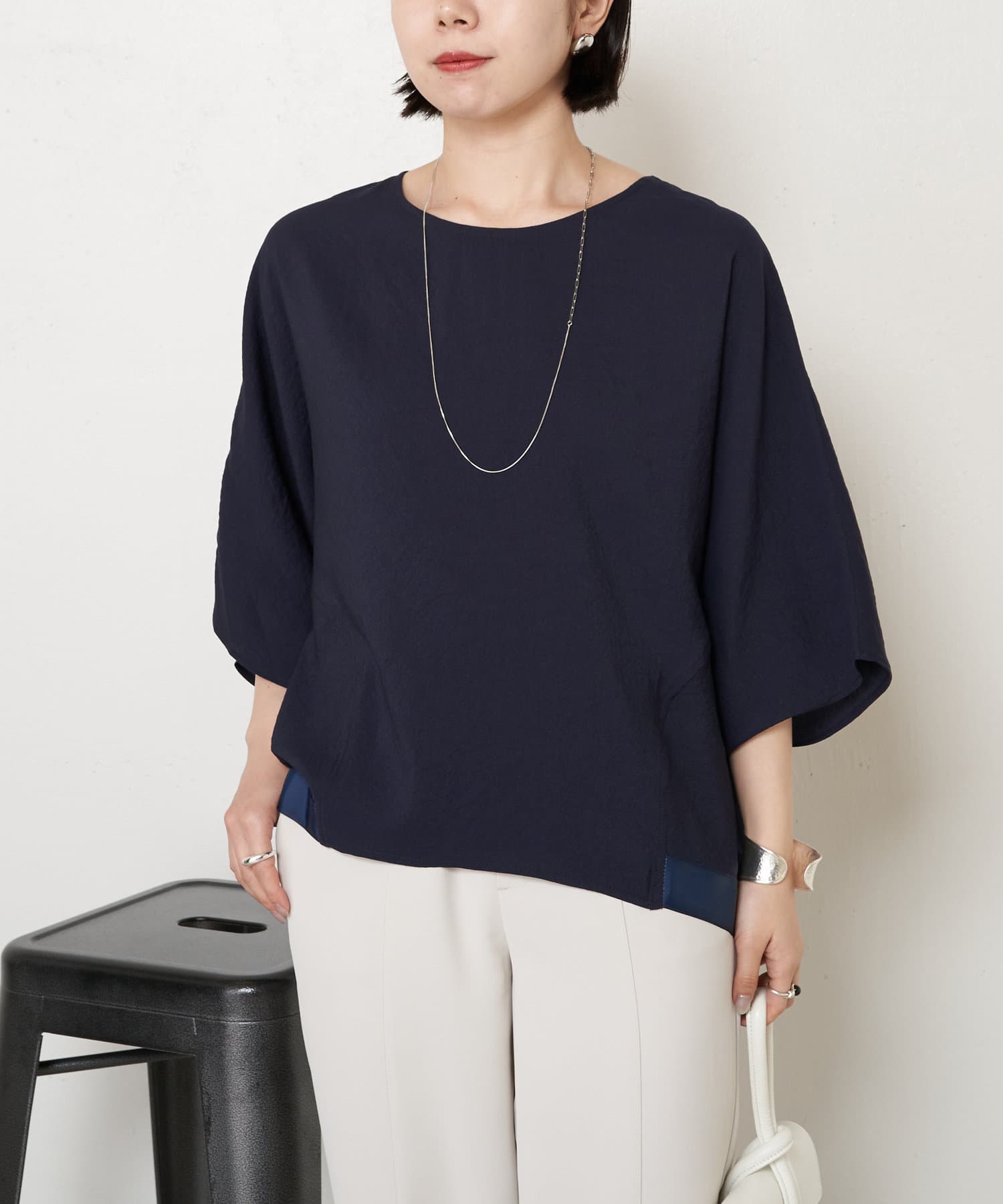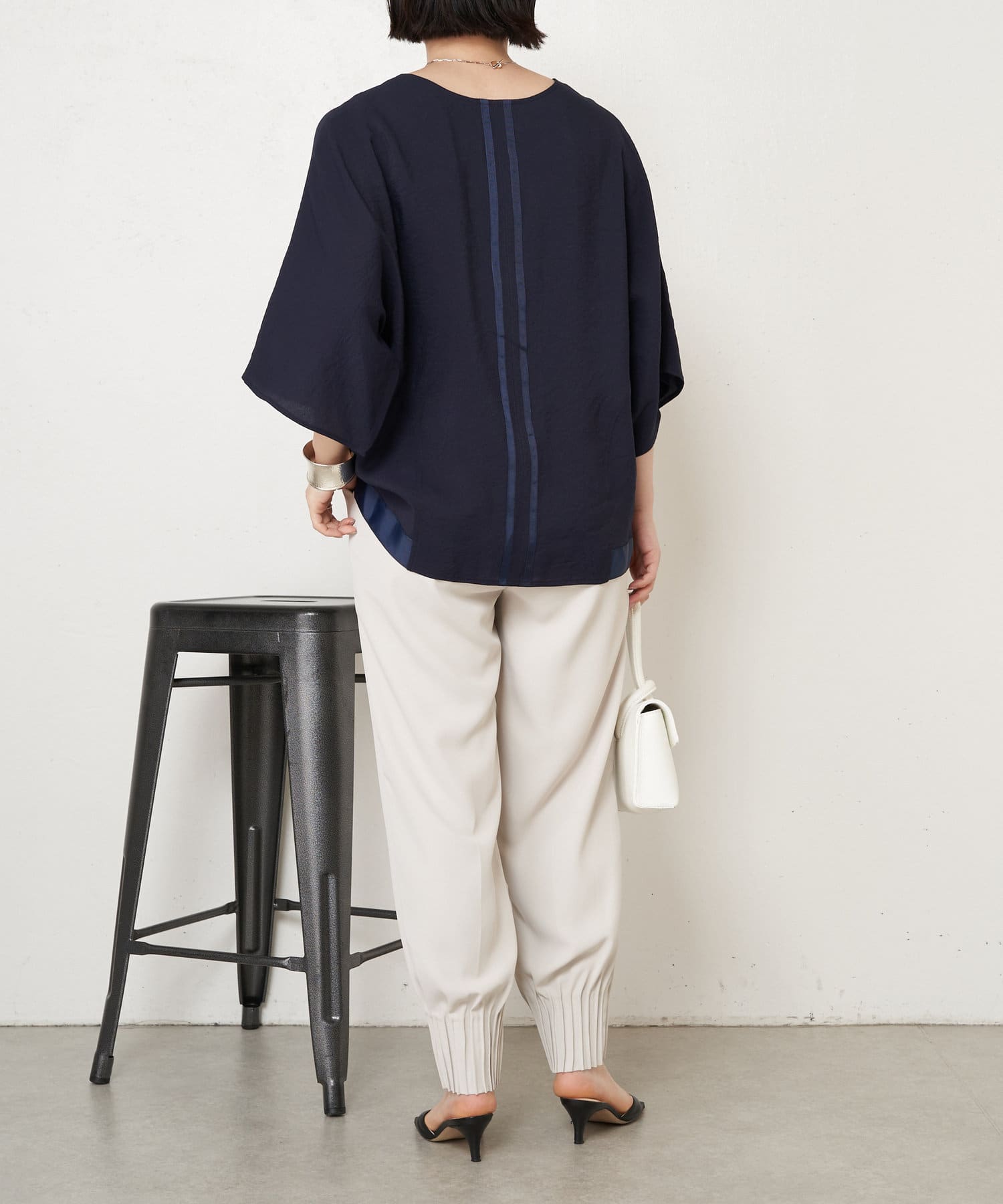・バックのラインと裾のテープがポイントの大人なデザインカットソー。