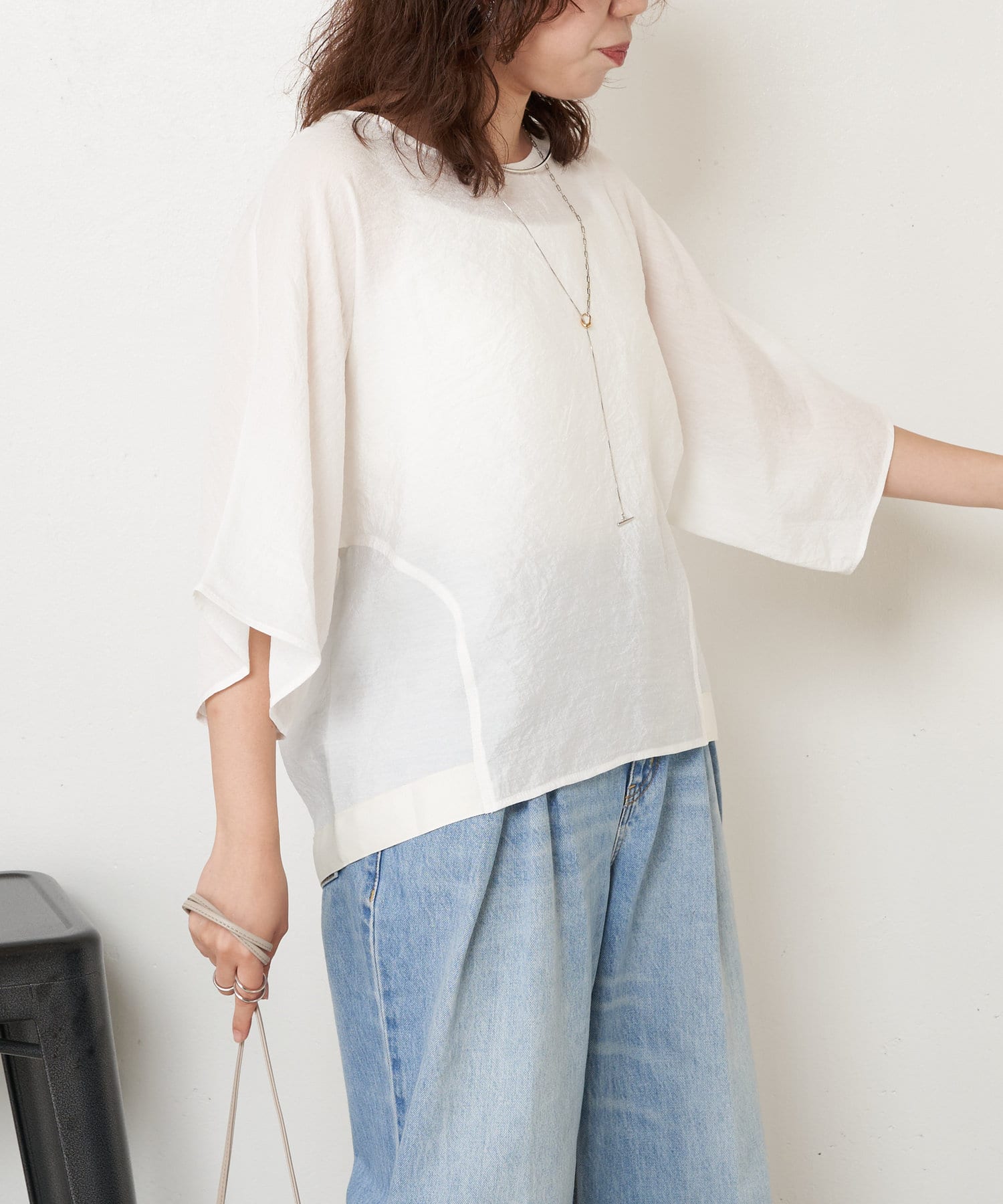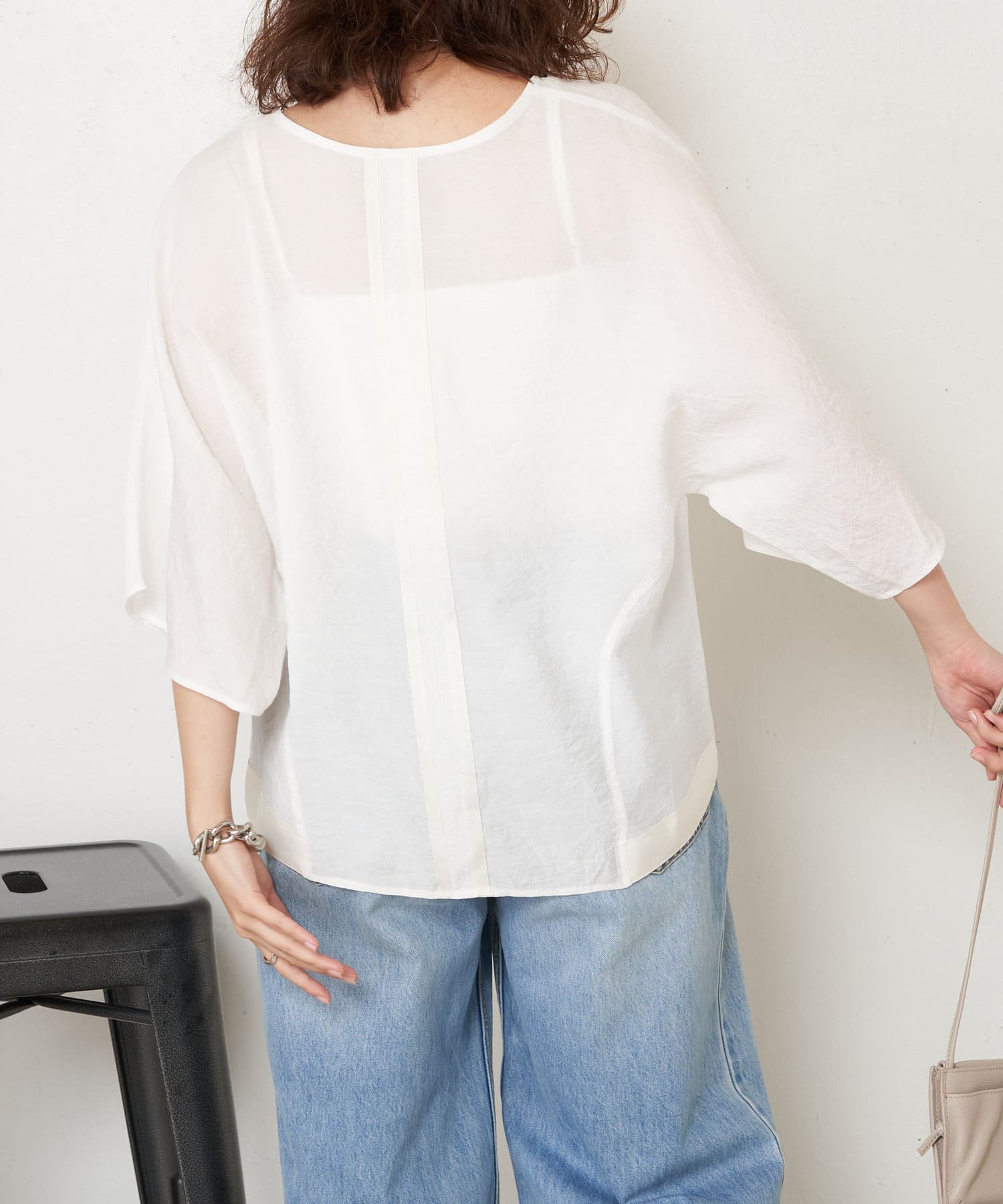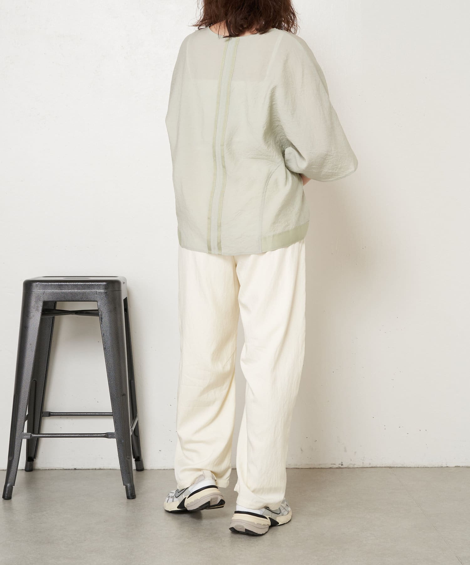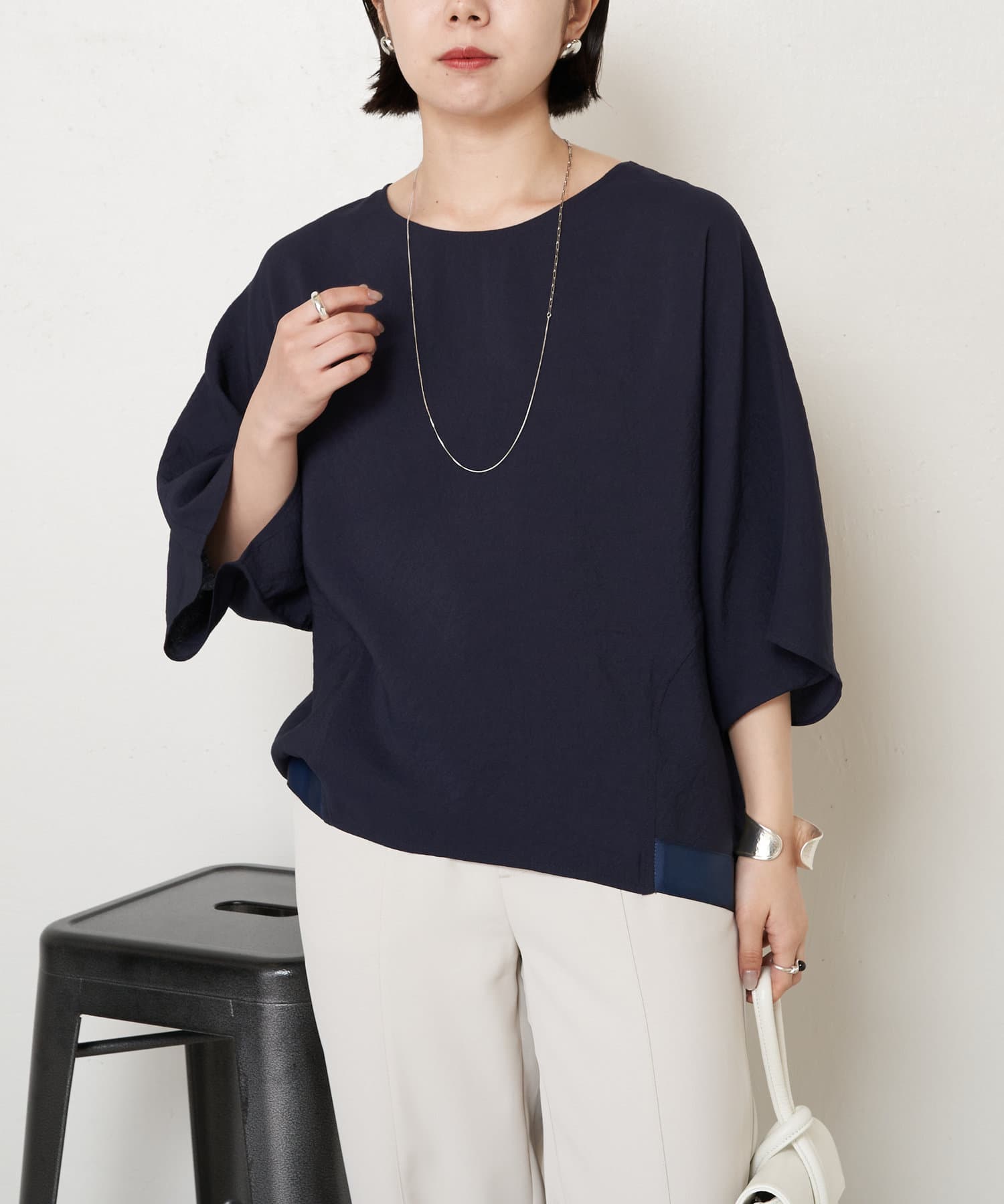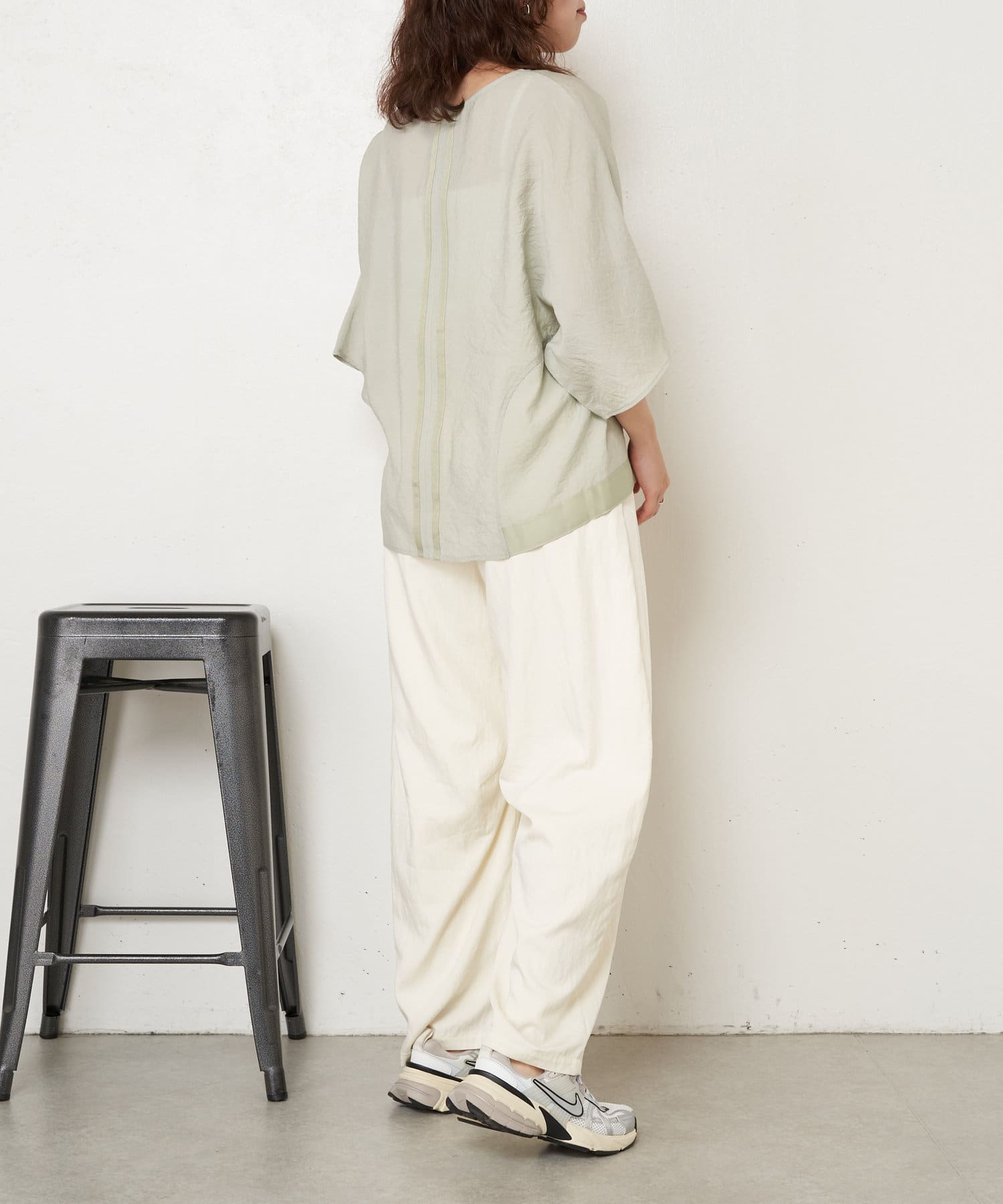 ・バックのラインと裾のテープがポイントの大人なデザインカットソー。