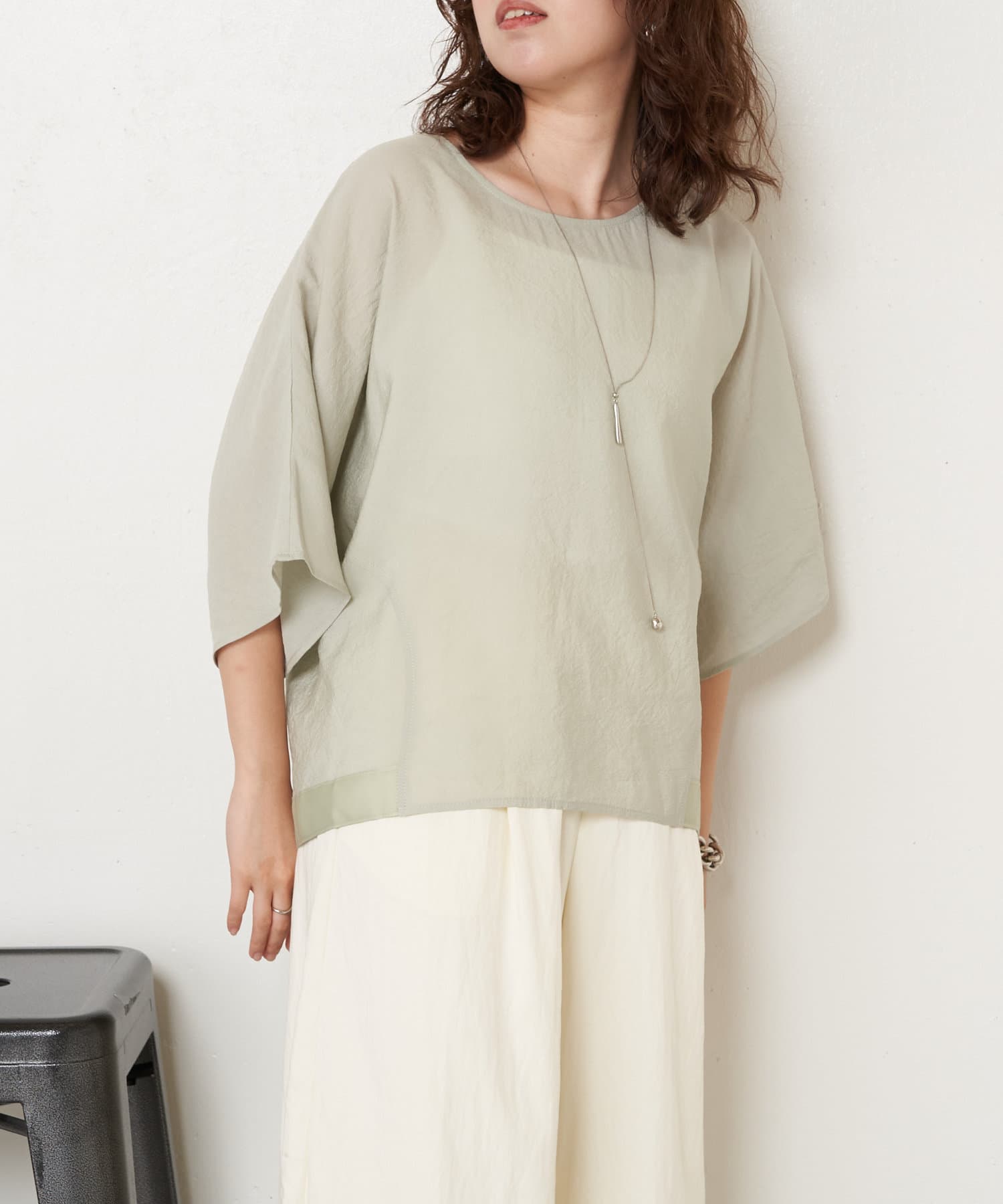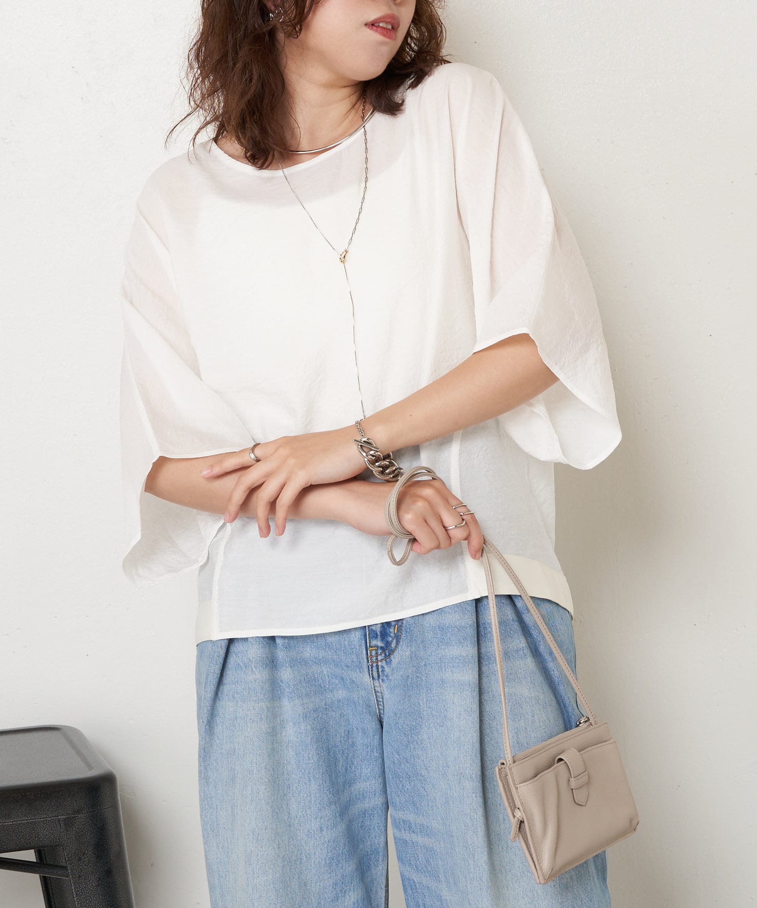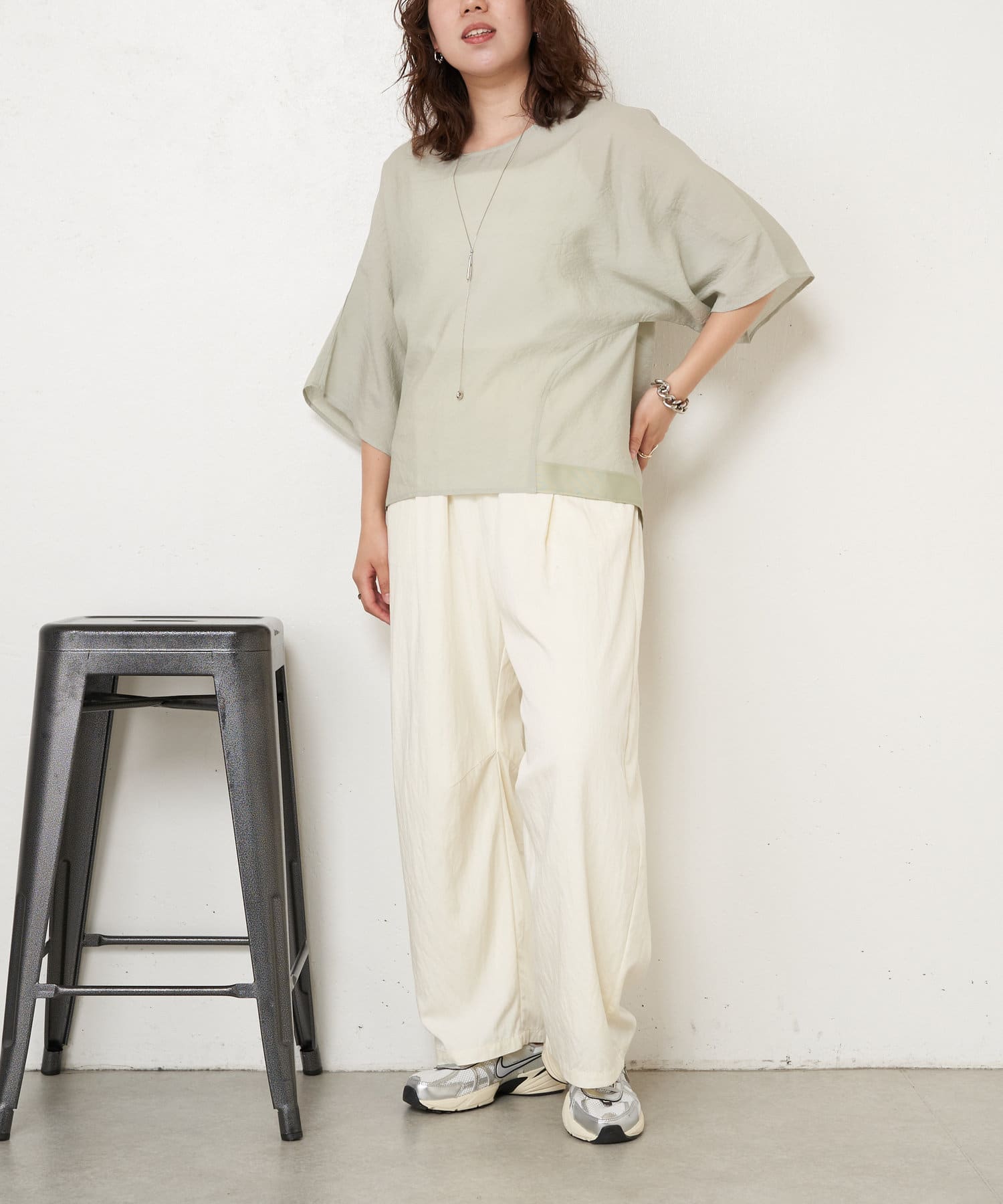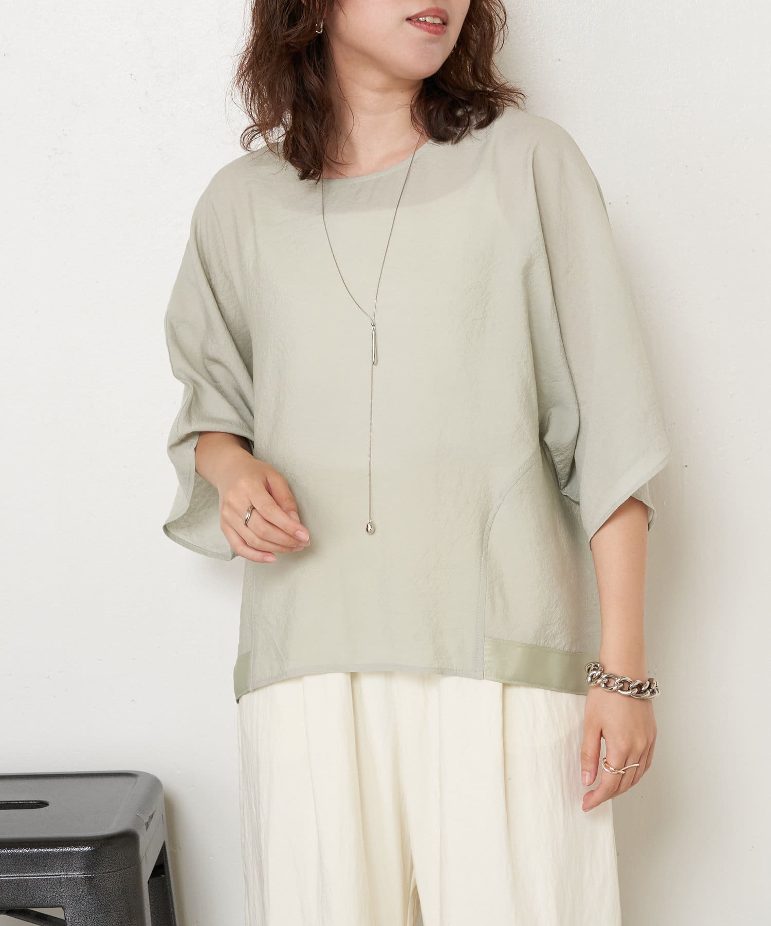 ・バックのラインと裾のテープがポイントの大人なデザインカットソー。