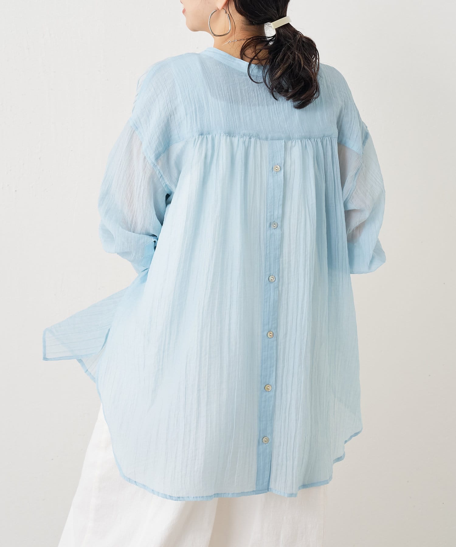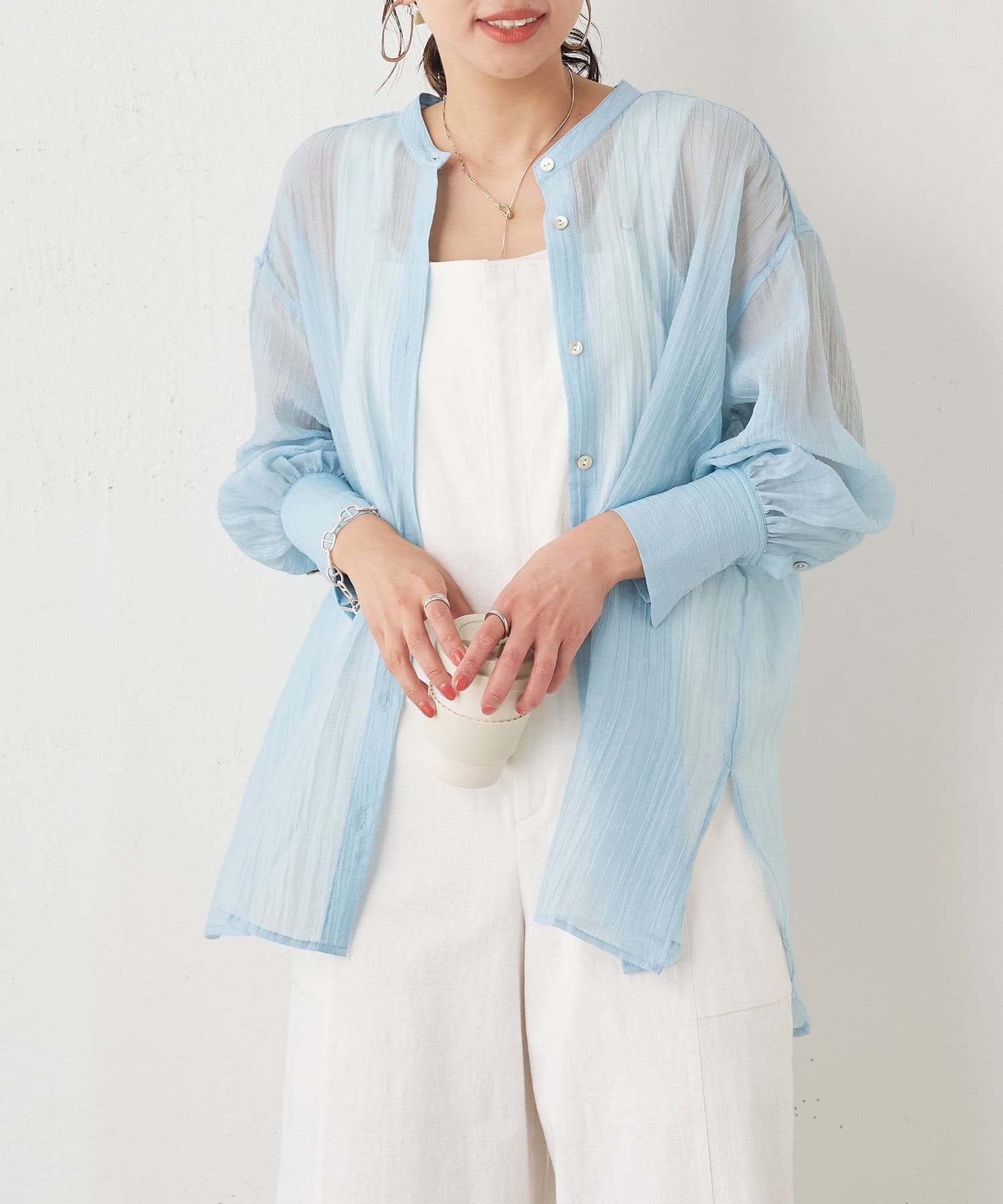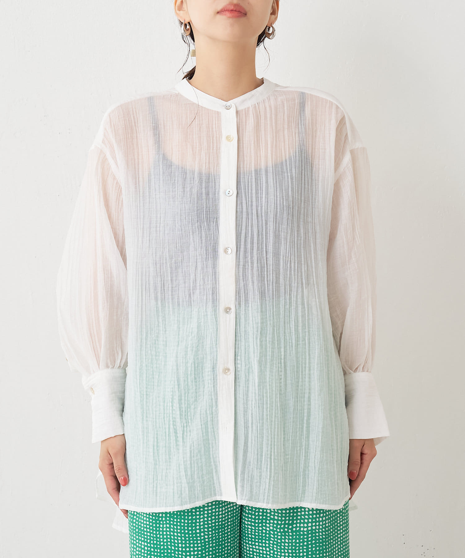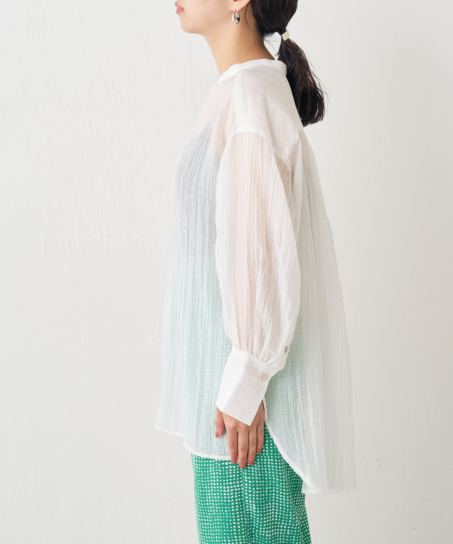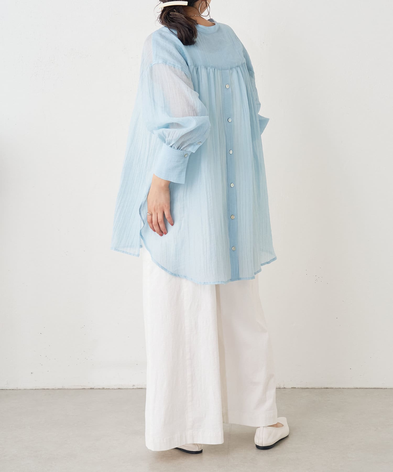 ・ふんわり広がる軽やかなボイル素材が涼し気なシャツ。