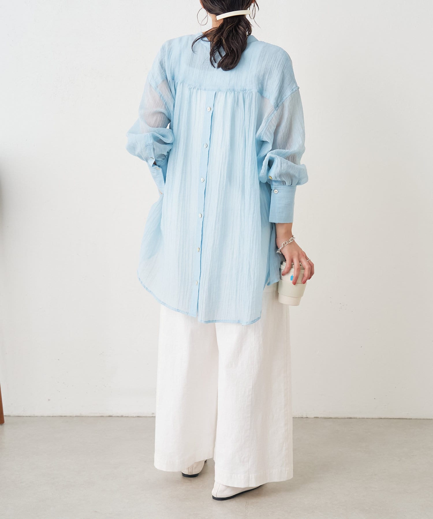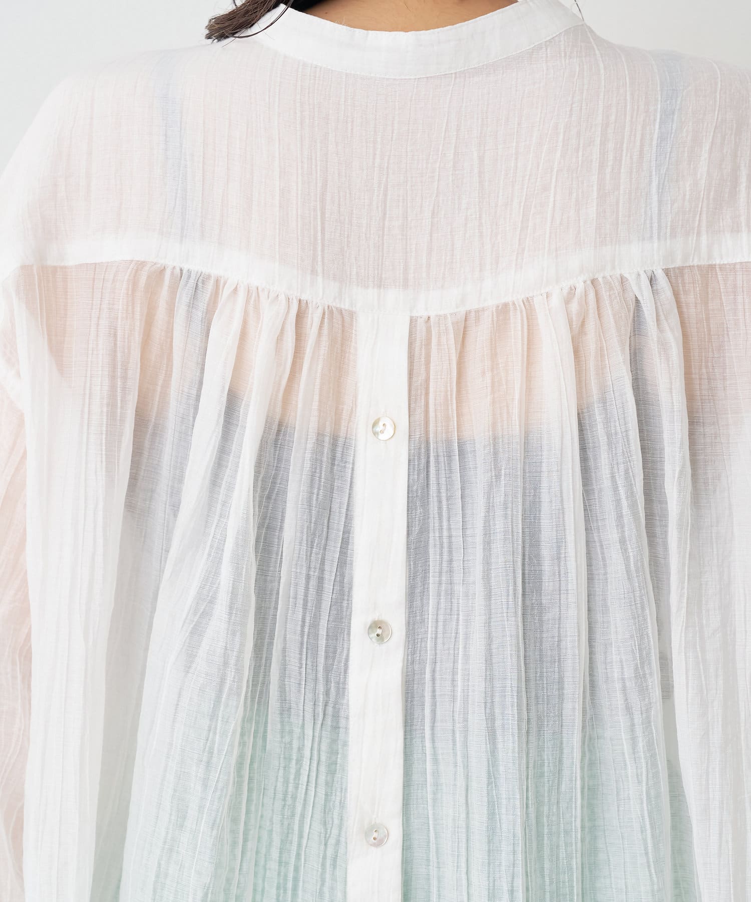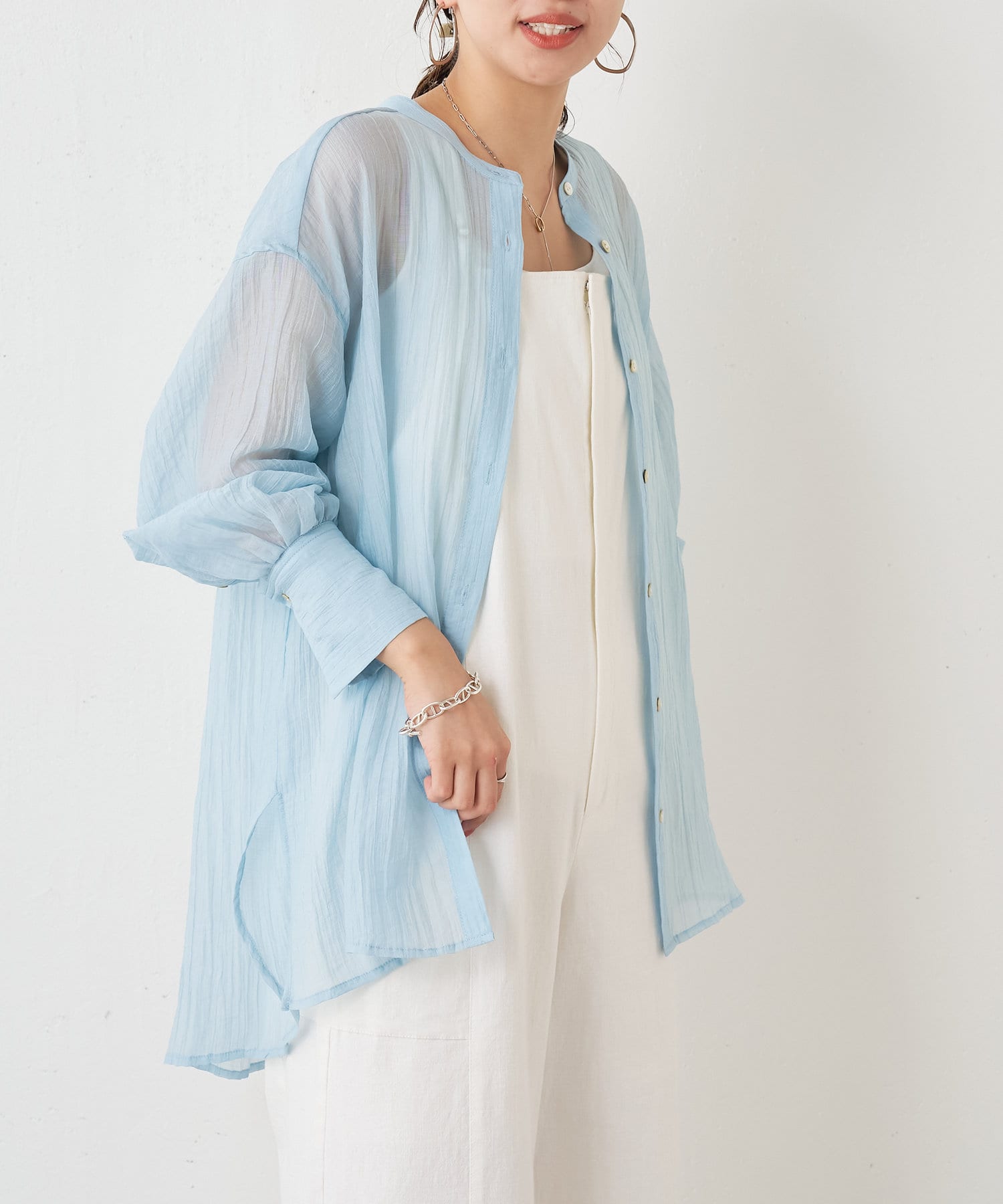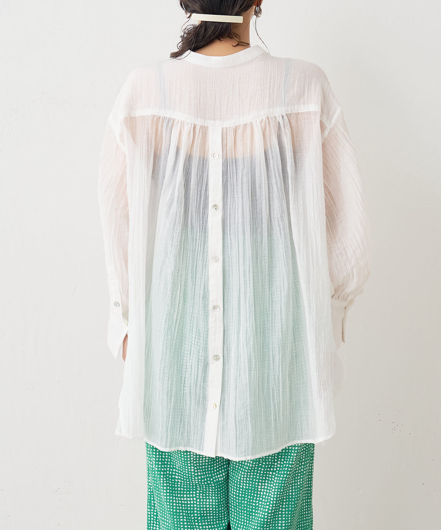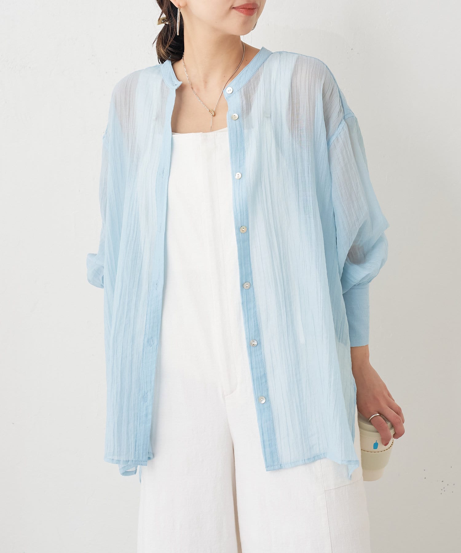 ・ふんわり広がる軽やかなボイル素材が涼し気なシャツ。