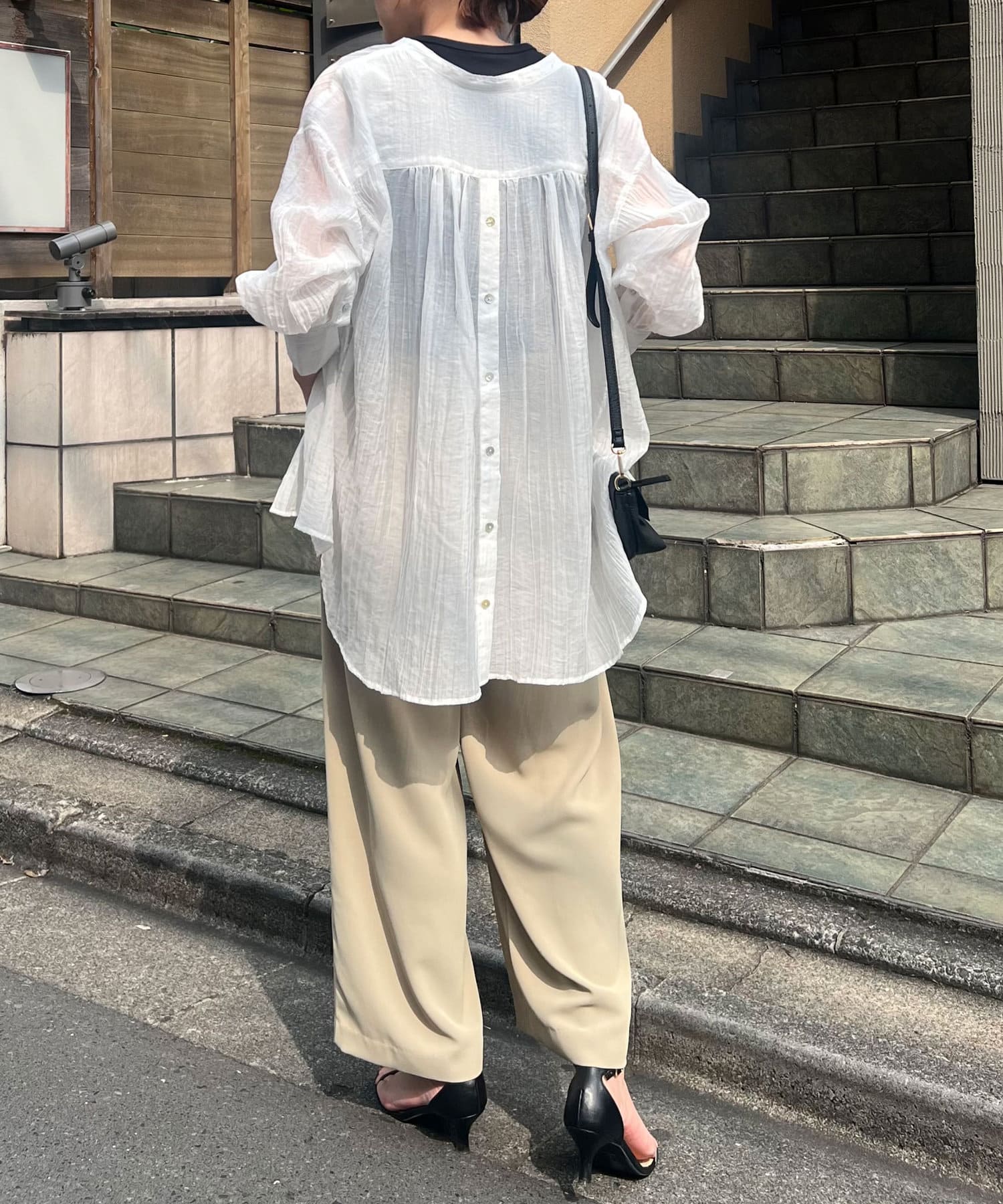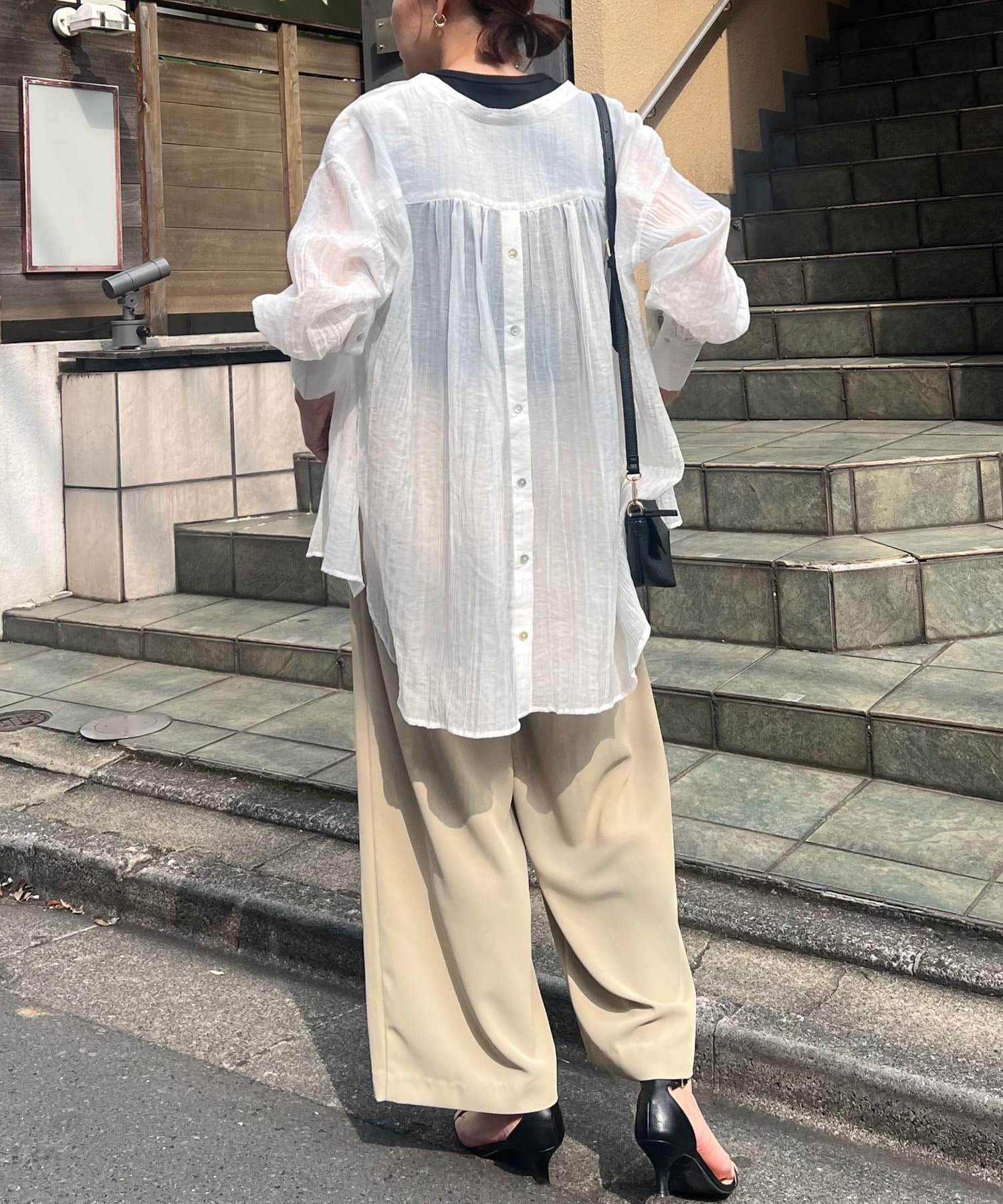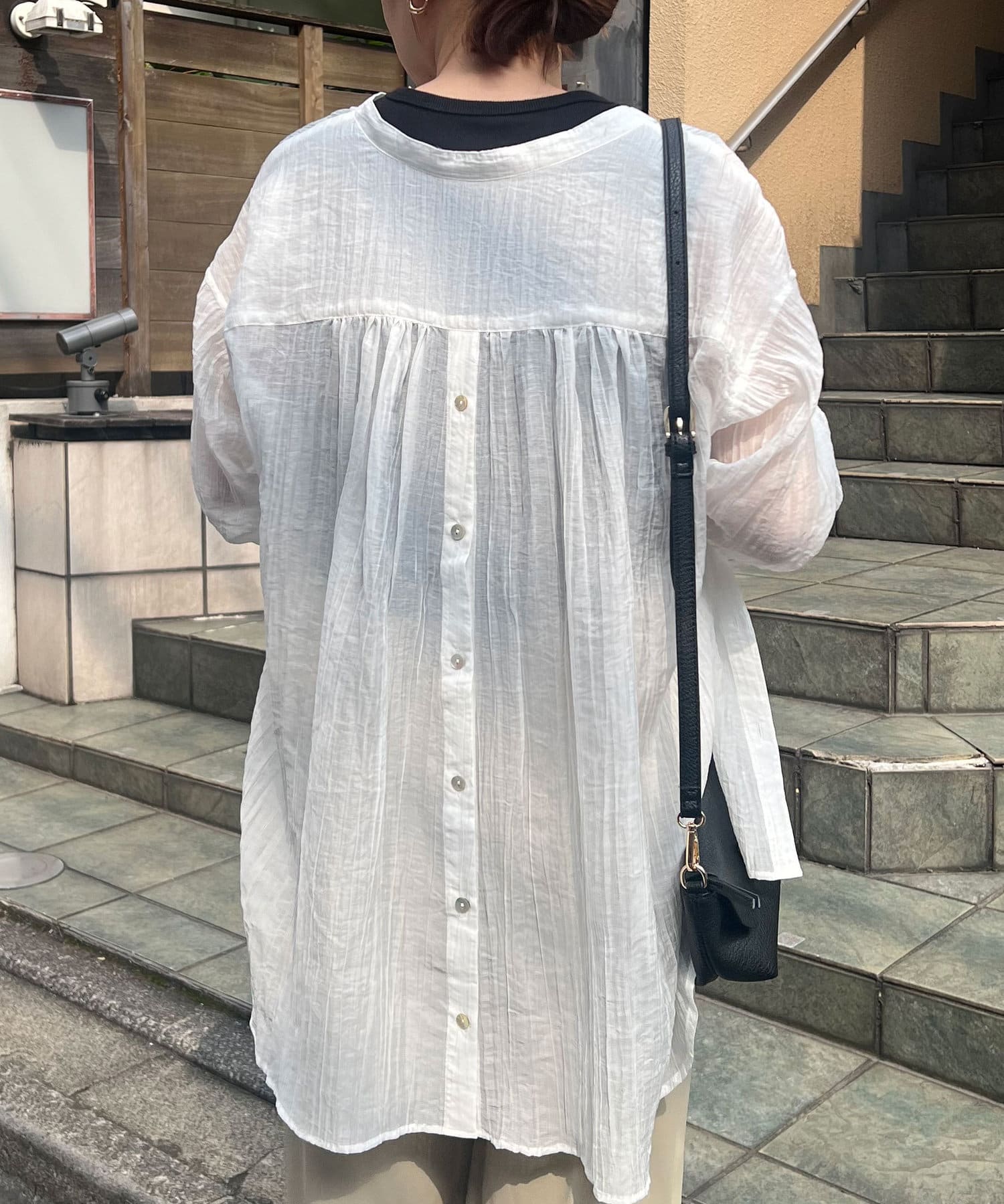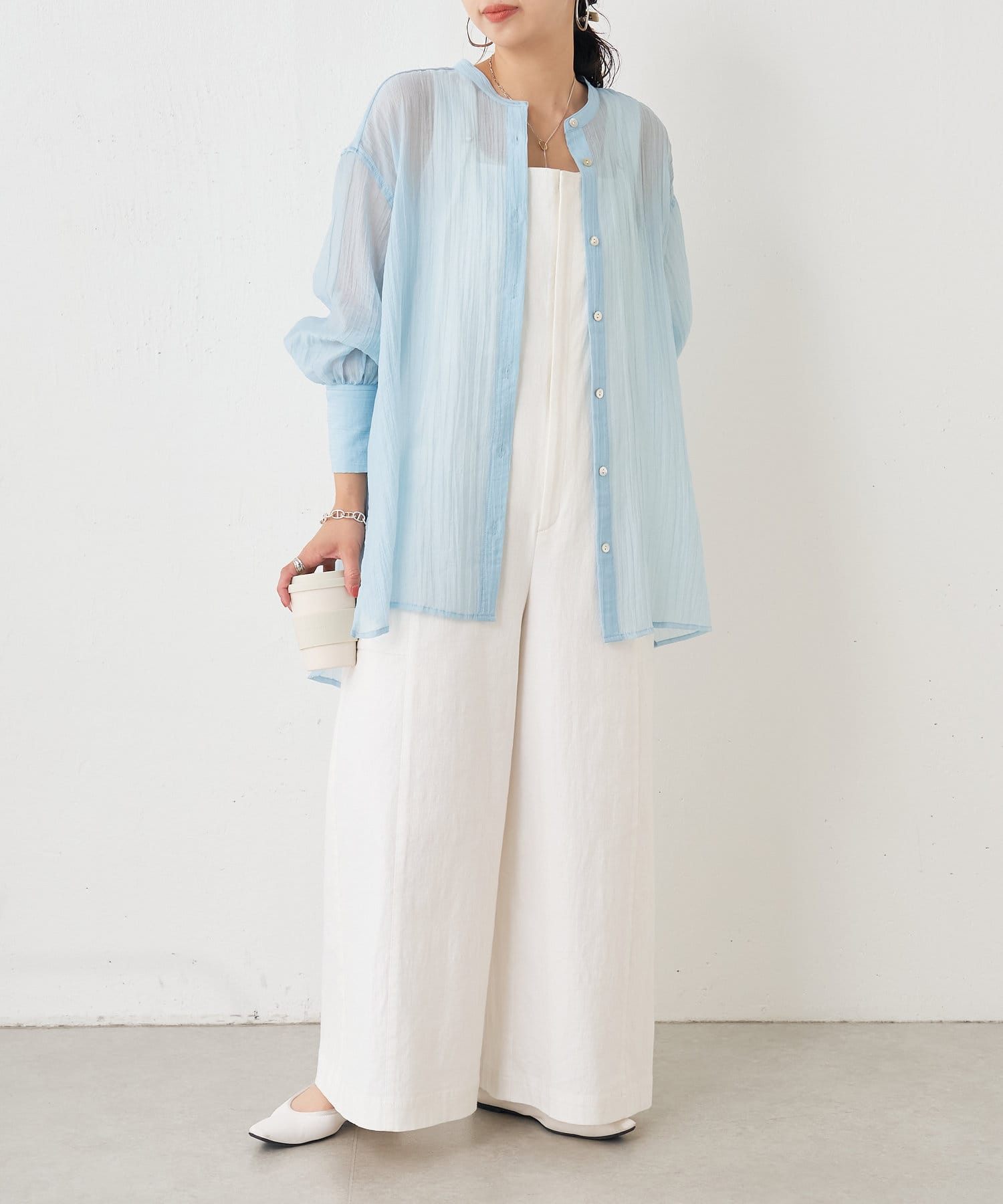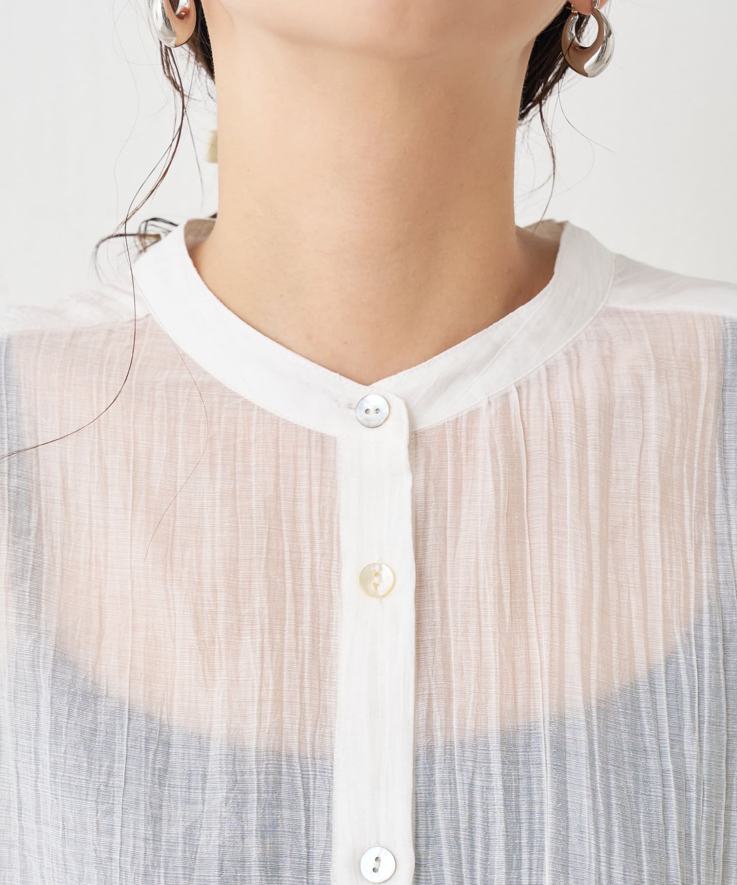 ・ふんわり広がる軽やかなボイル素材が涼し気なシャツ。