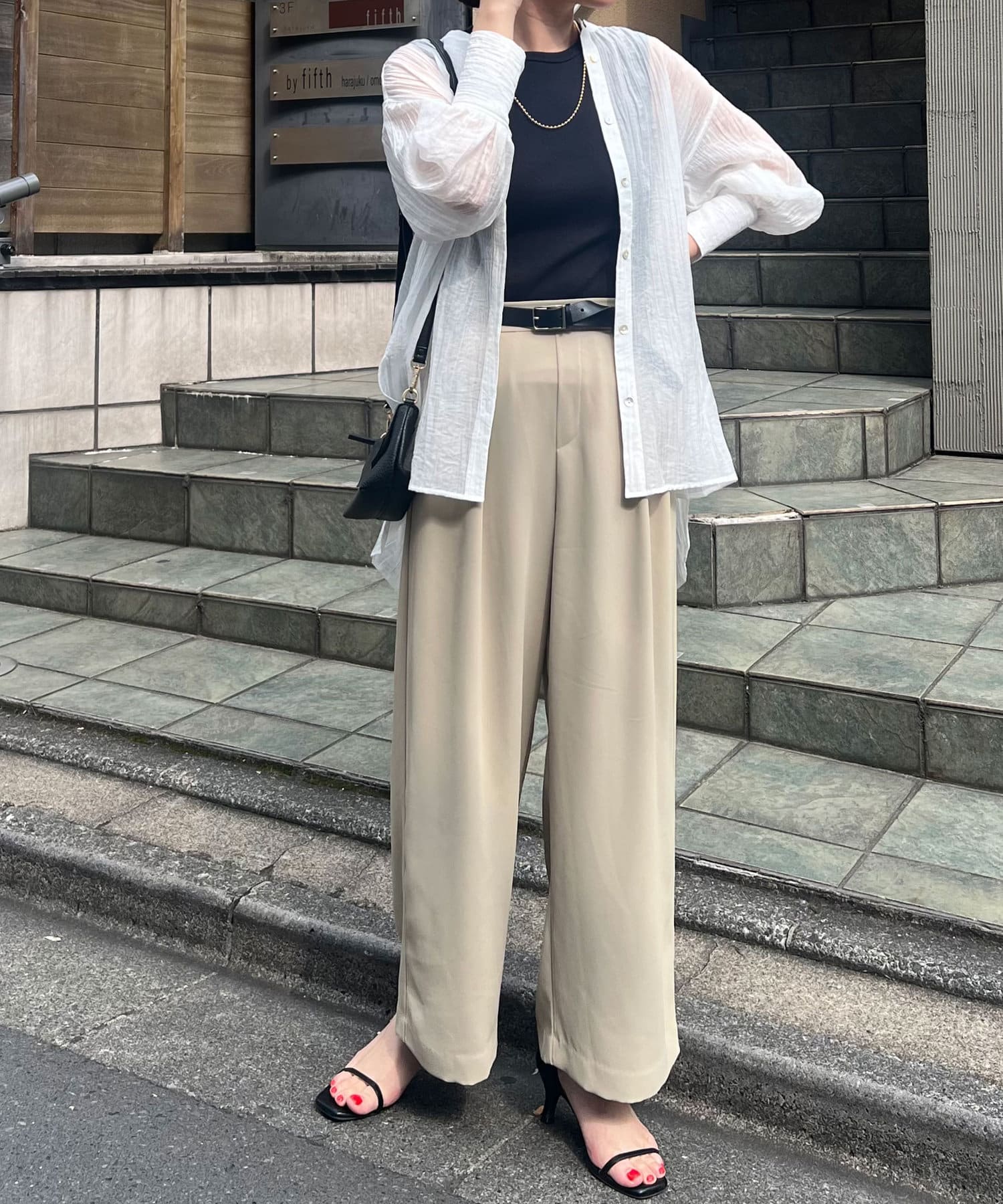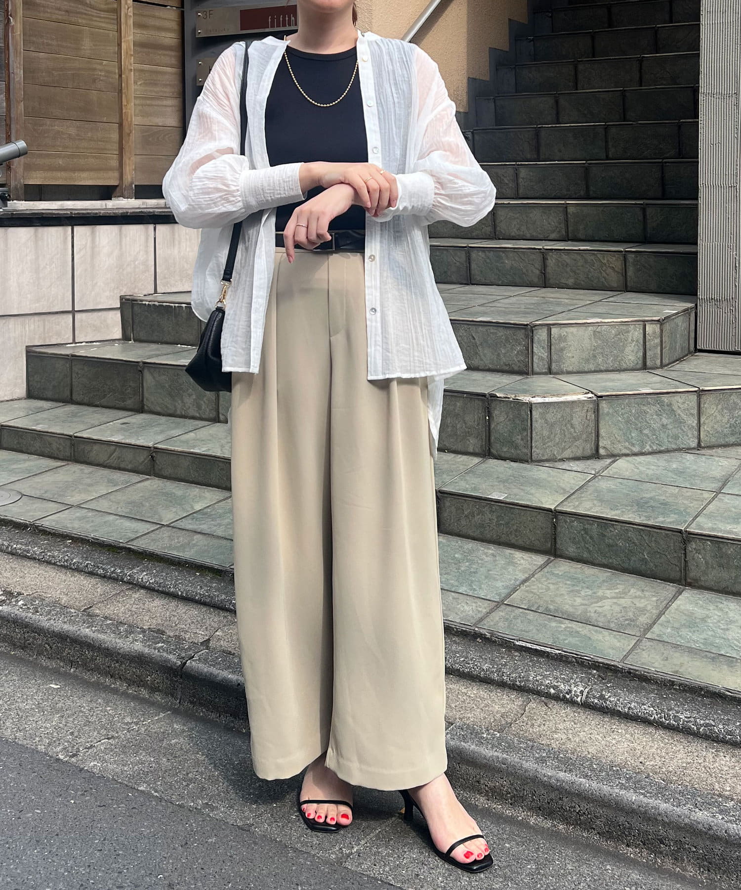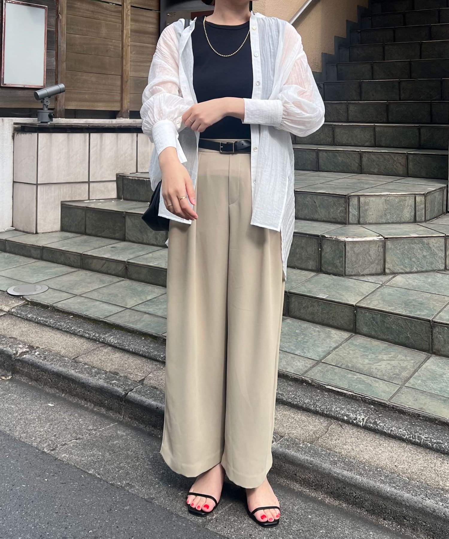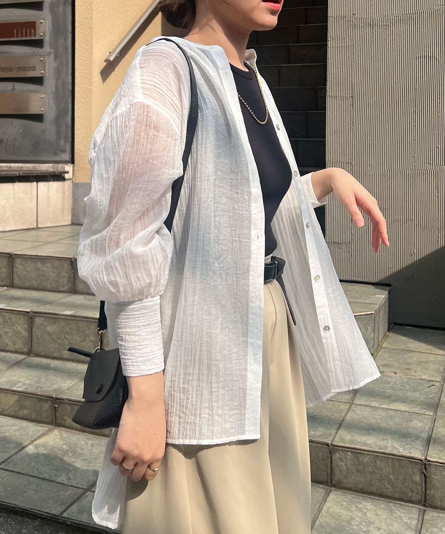 ・長めのカフスがトレンドライクで着るだけでお洒落なスタイリングに。