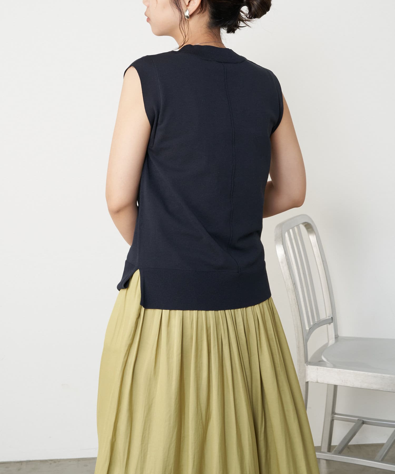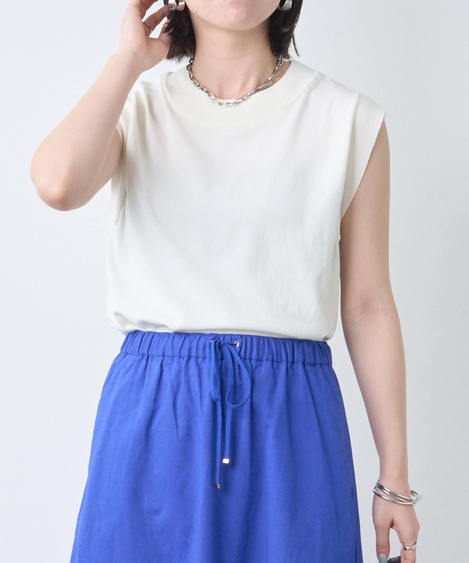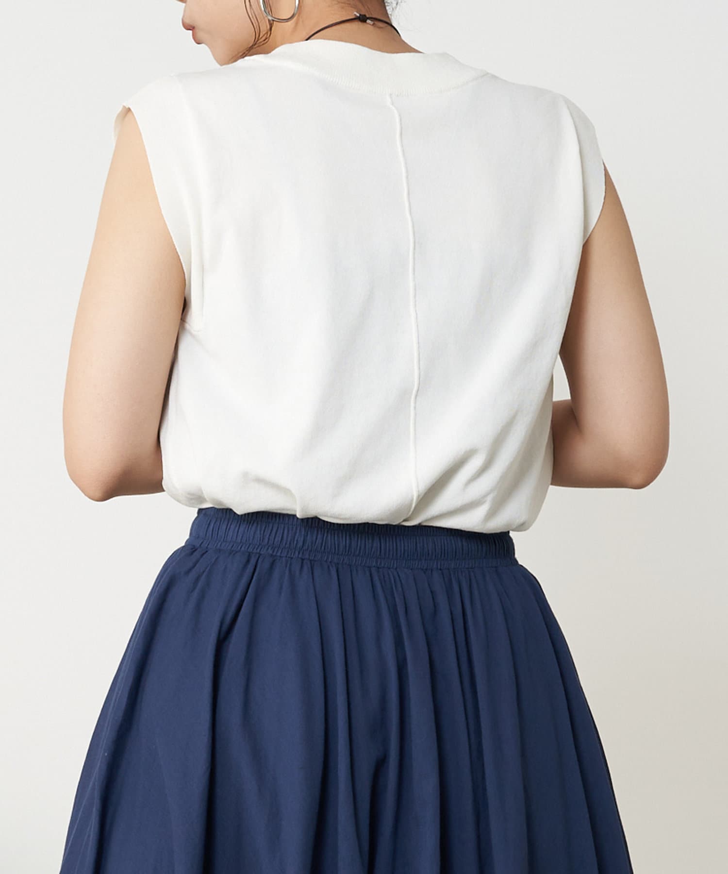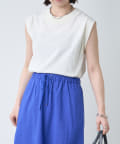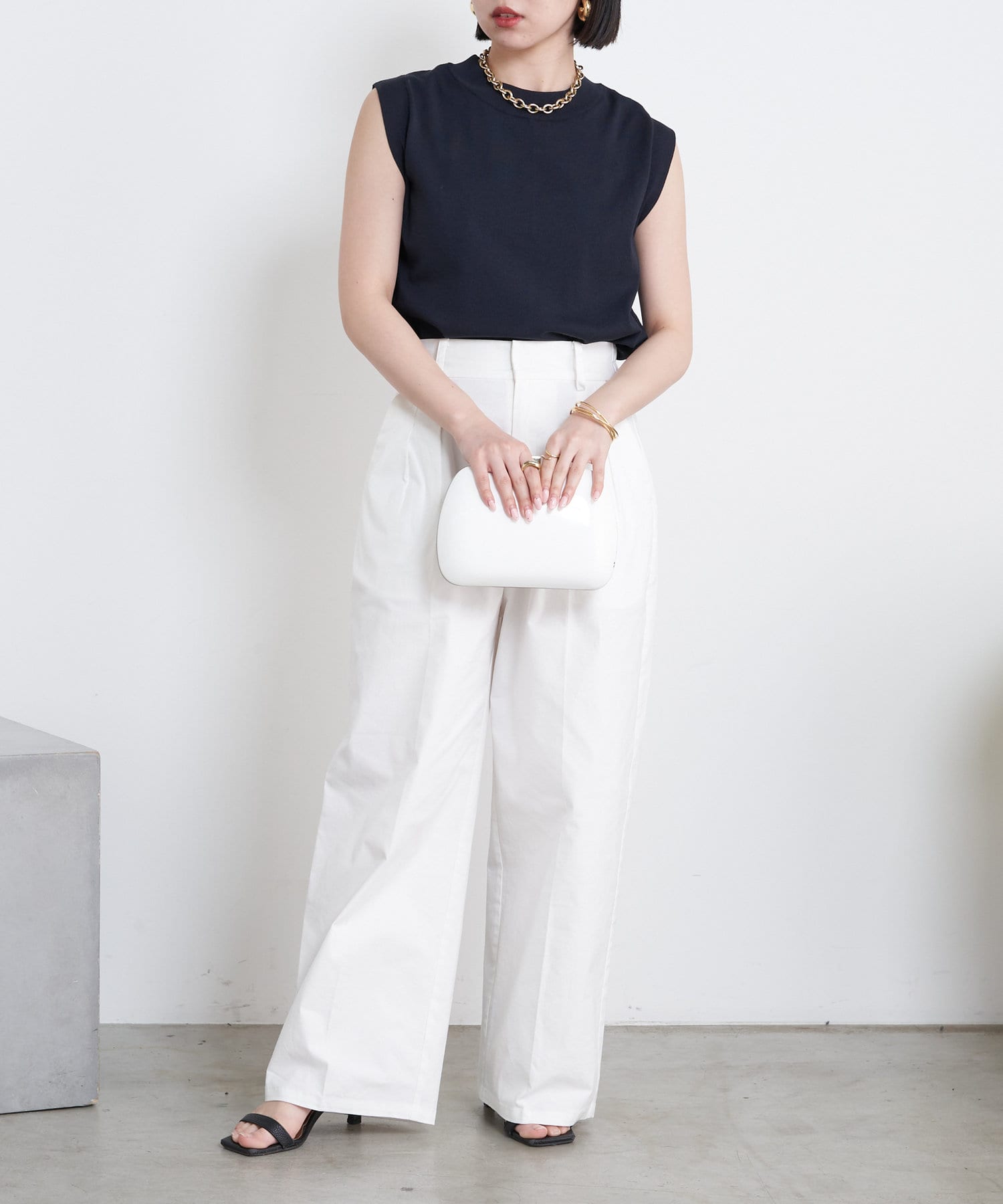 ・肩にタックが入ったノースリーブで程よく二の腕がカバーできる袖丈に。