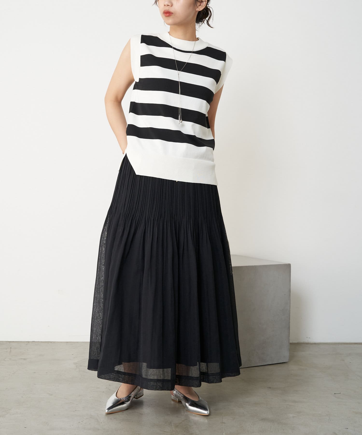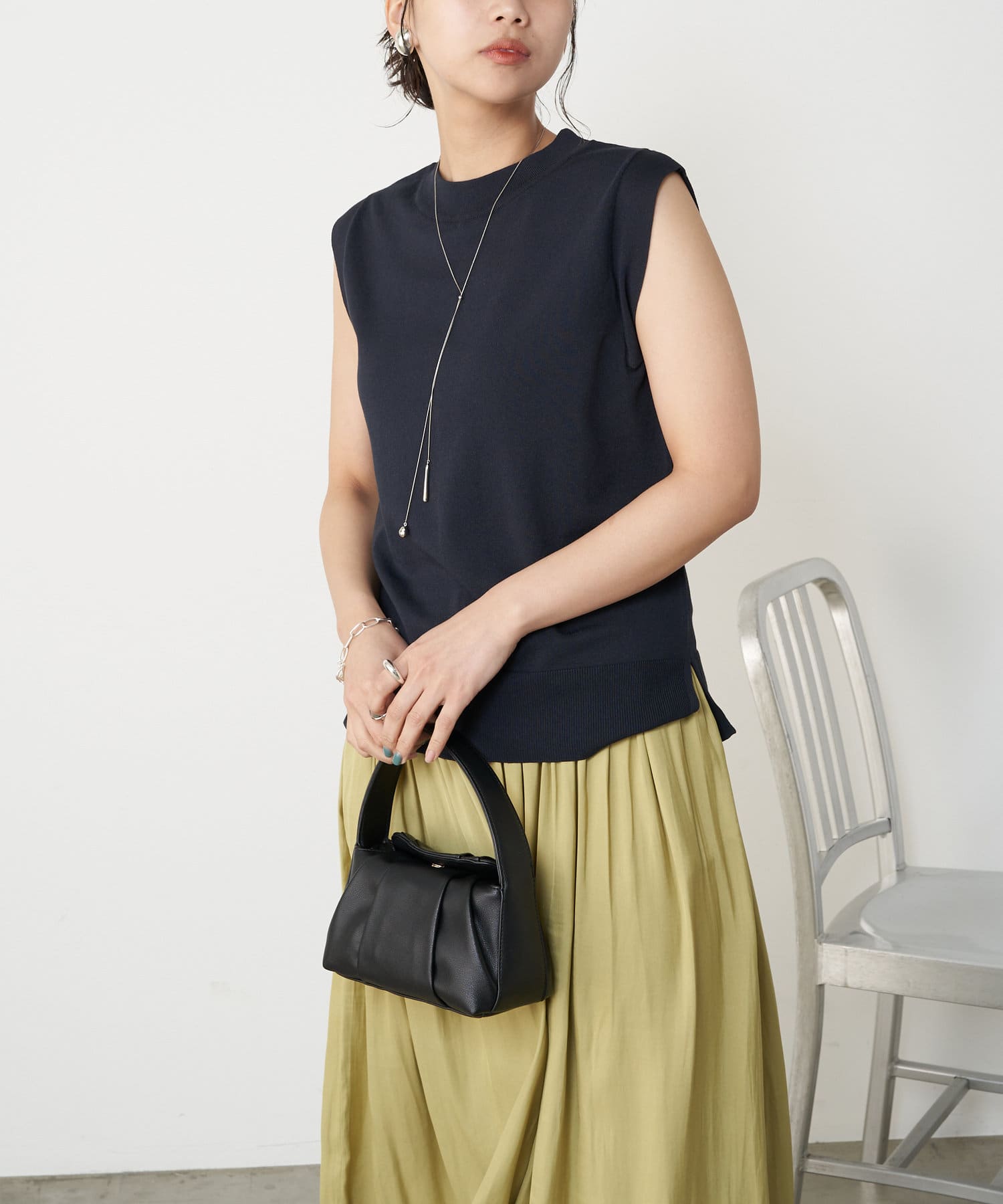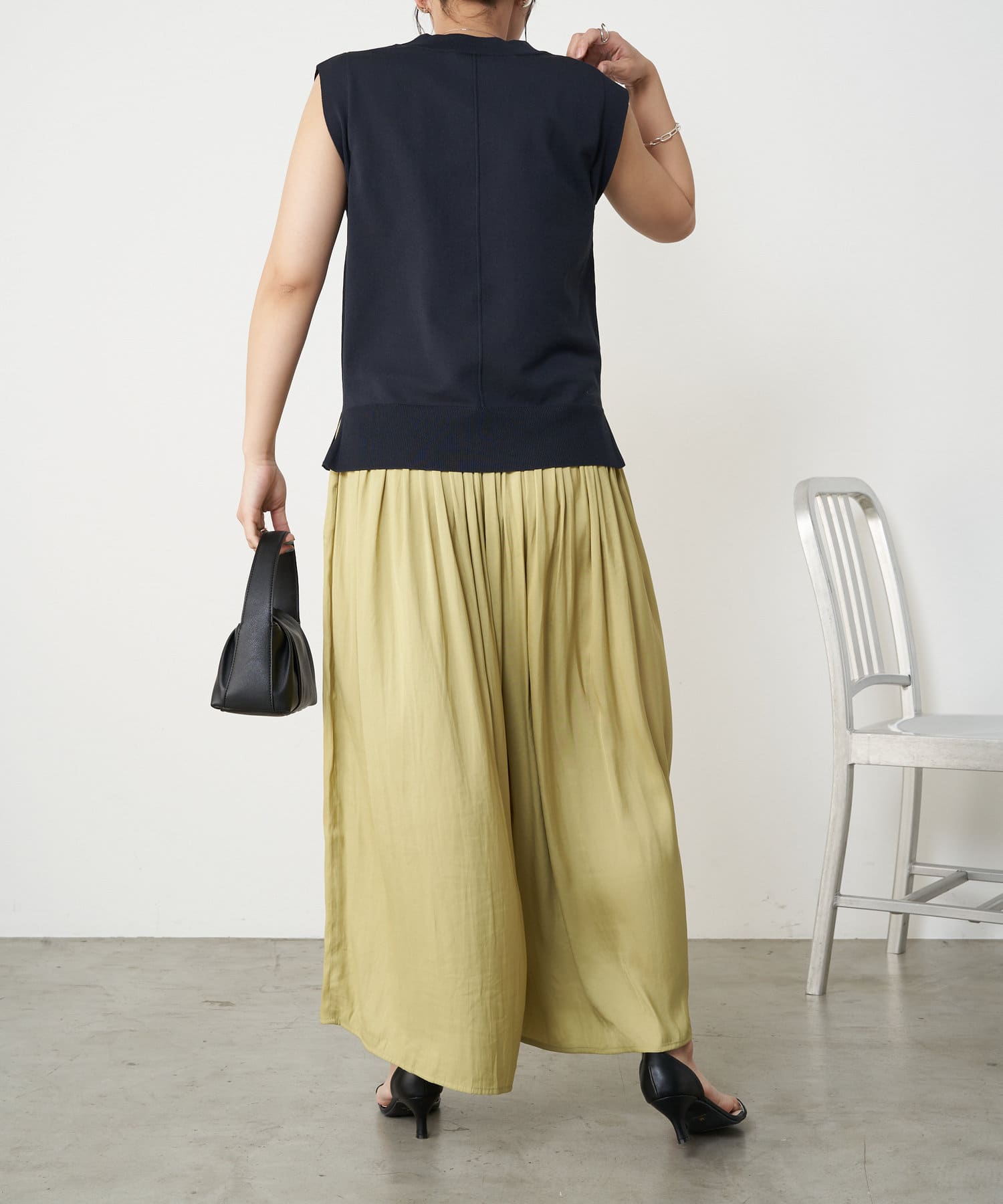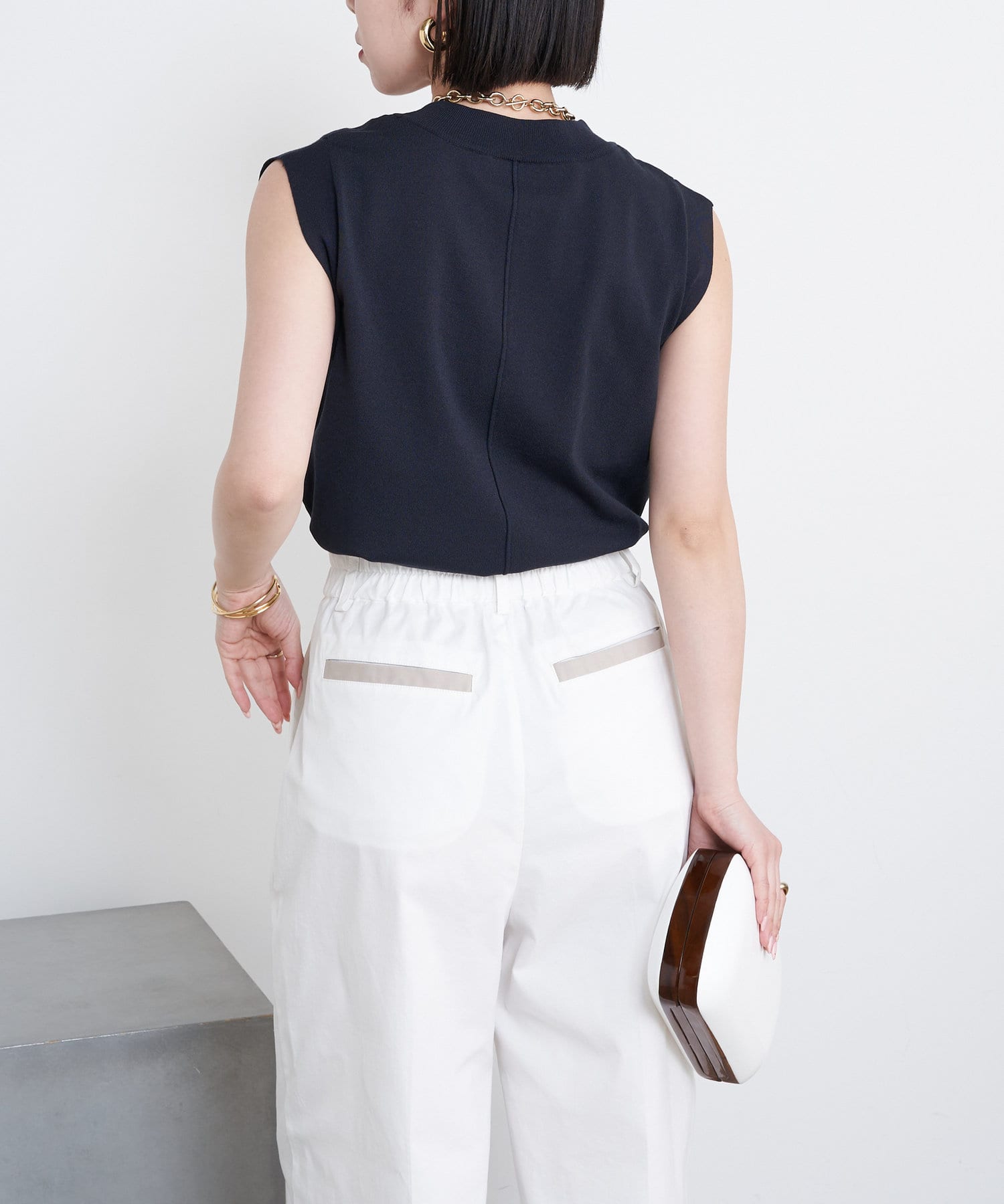 ・肩にタックが入ったノースリーブで程よく二の腕がカバーできる袖丈に。