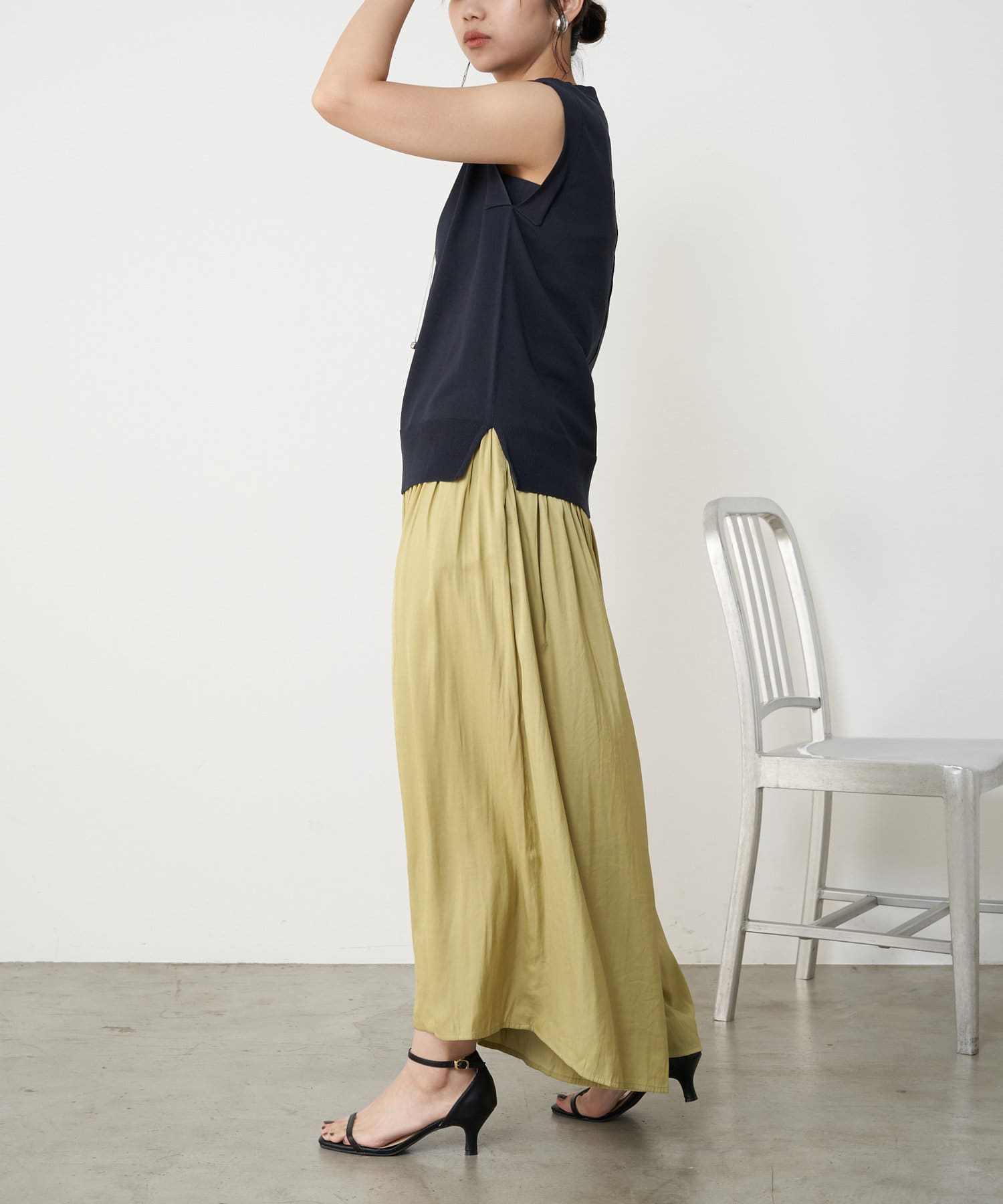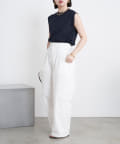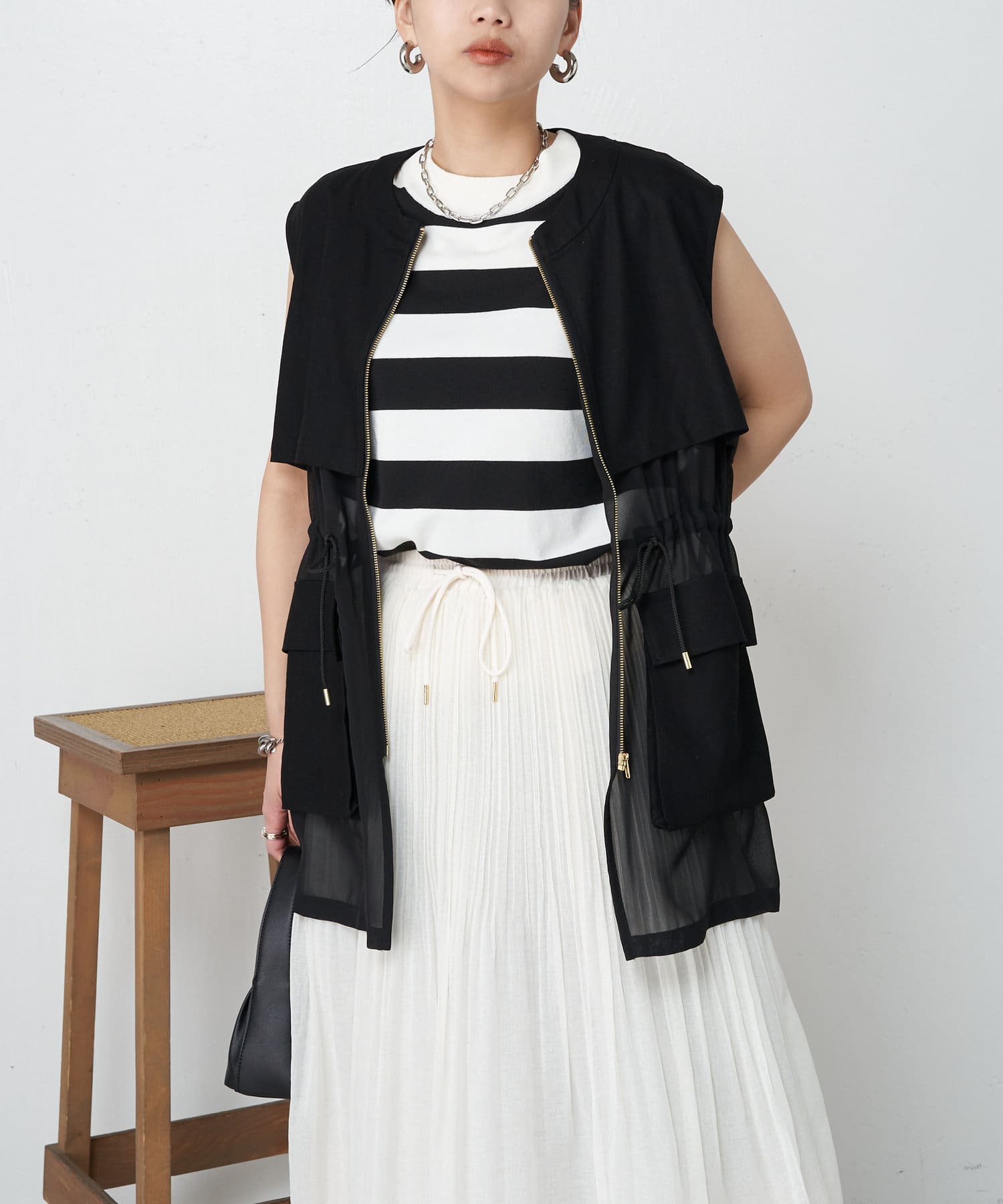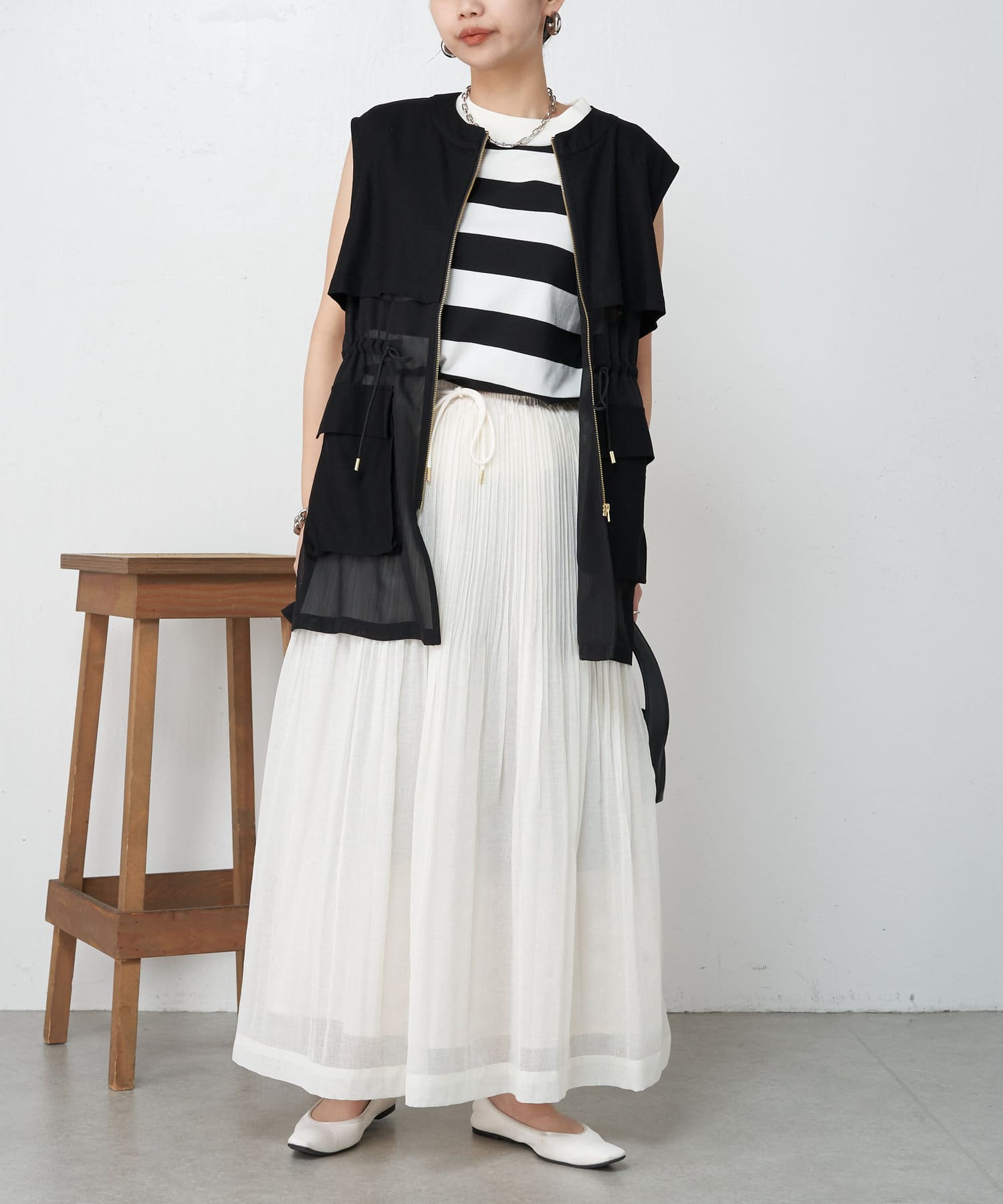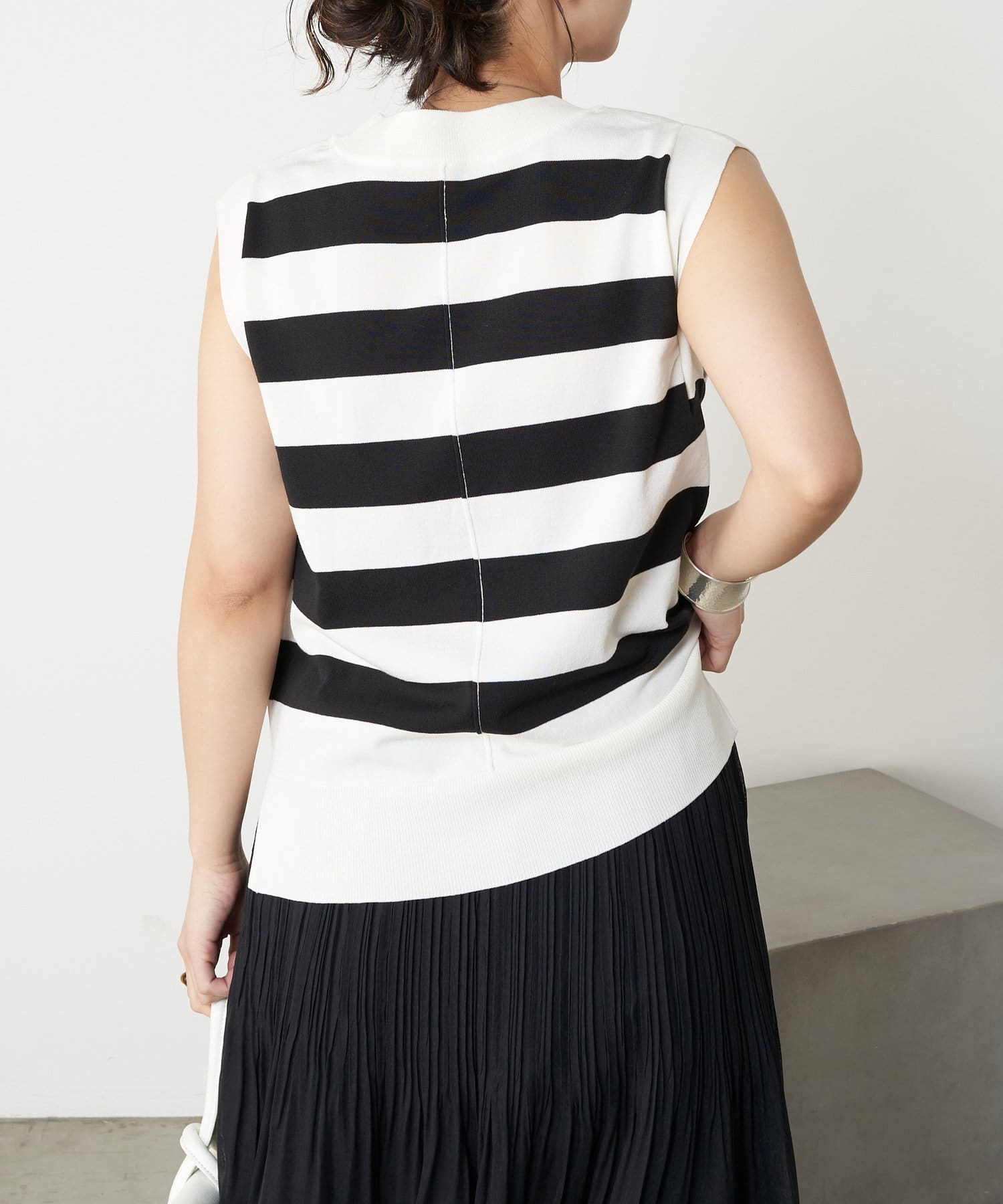 ・肩にタックが入ったノースリーブで程よく二の腕がカバーできる袖丈に。