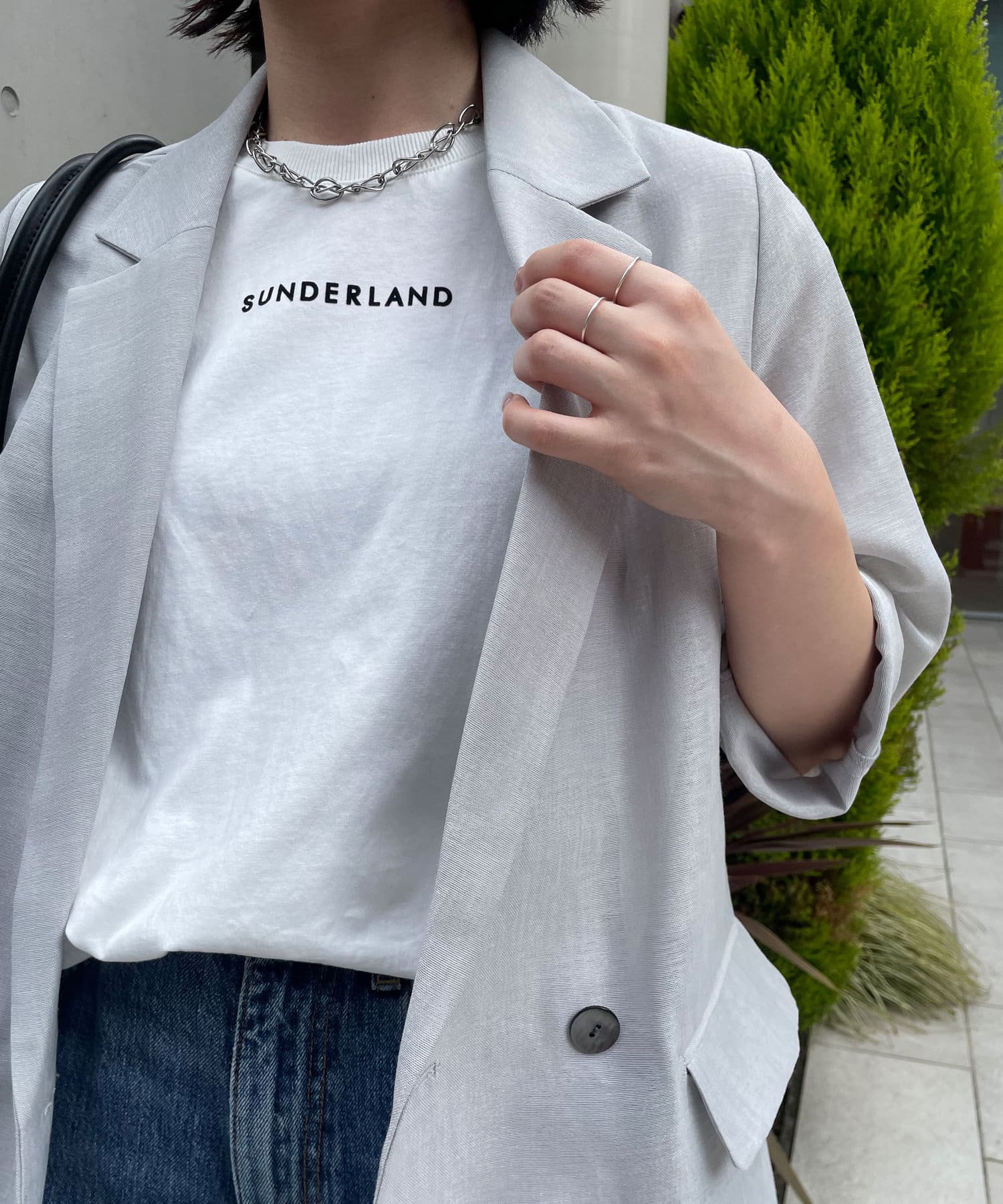 ・さりげないロゴなのでカジュアル過ぎずにお召いただけます。