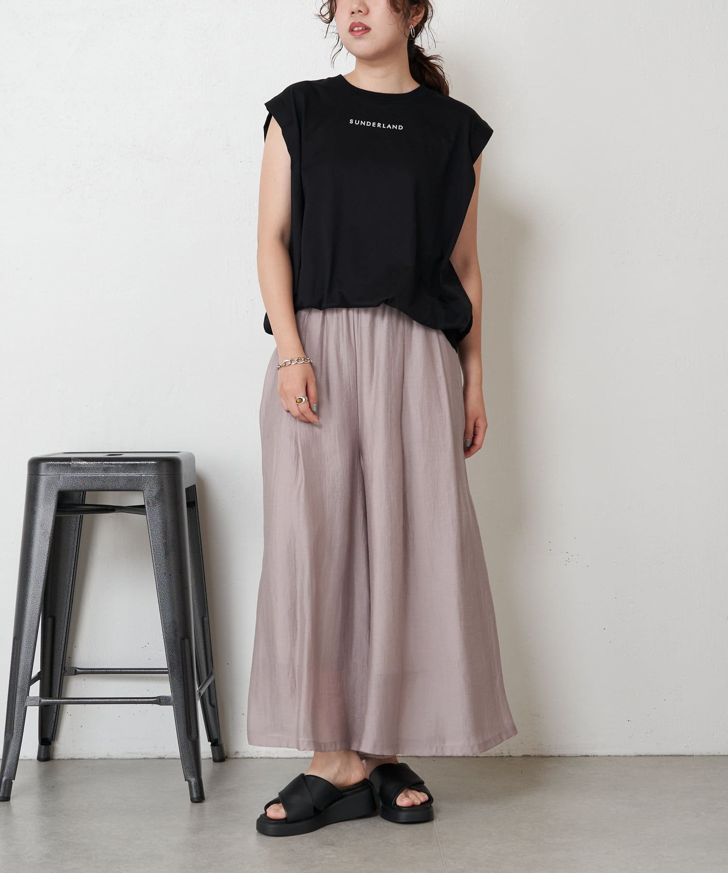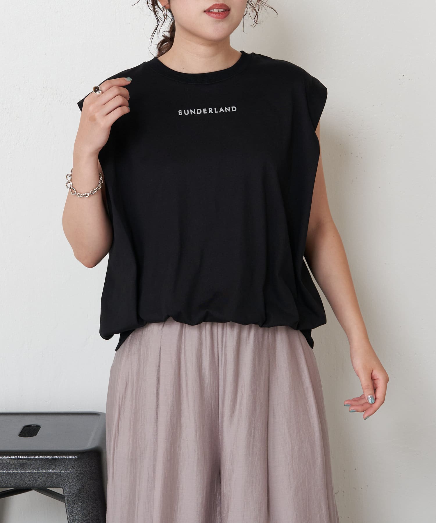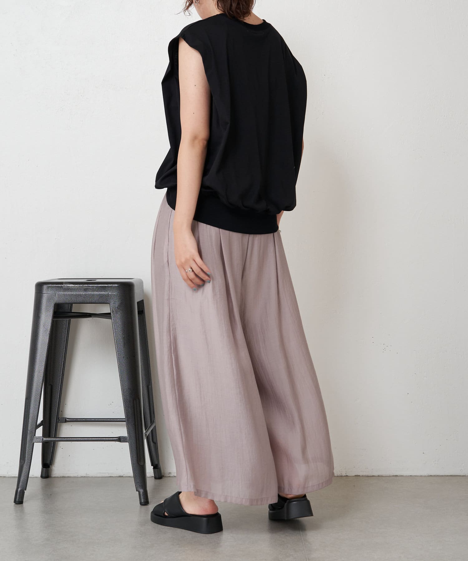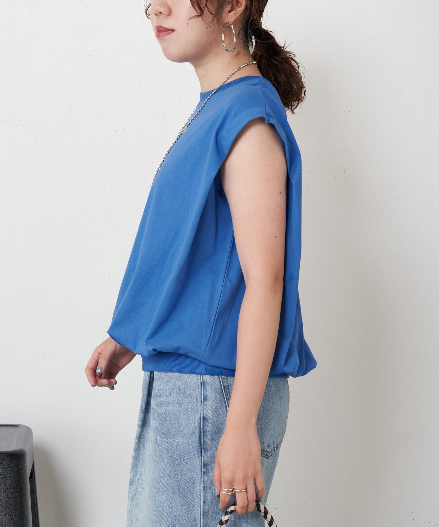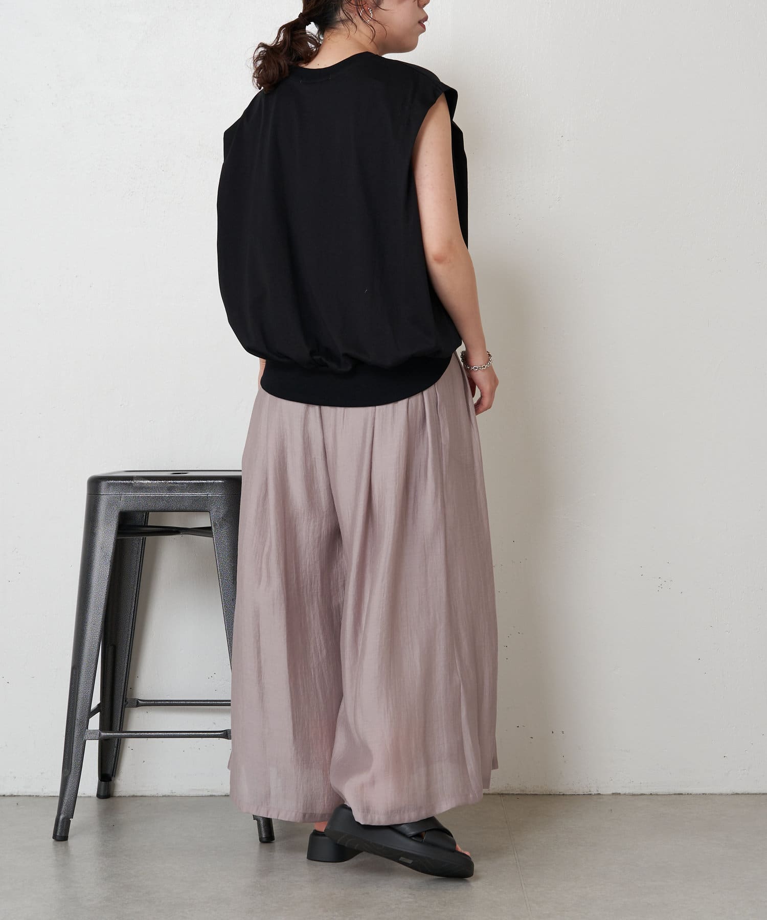 ・裾がゴムになっていることで、ギャザーを寄せて立体的なシルエットに。