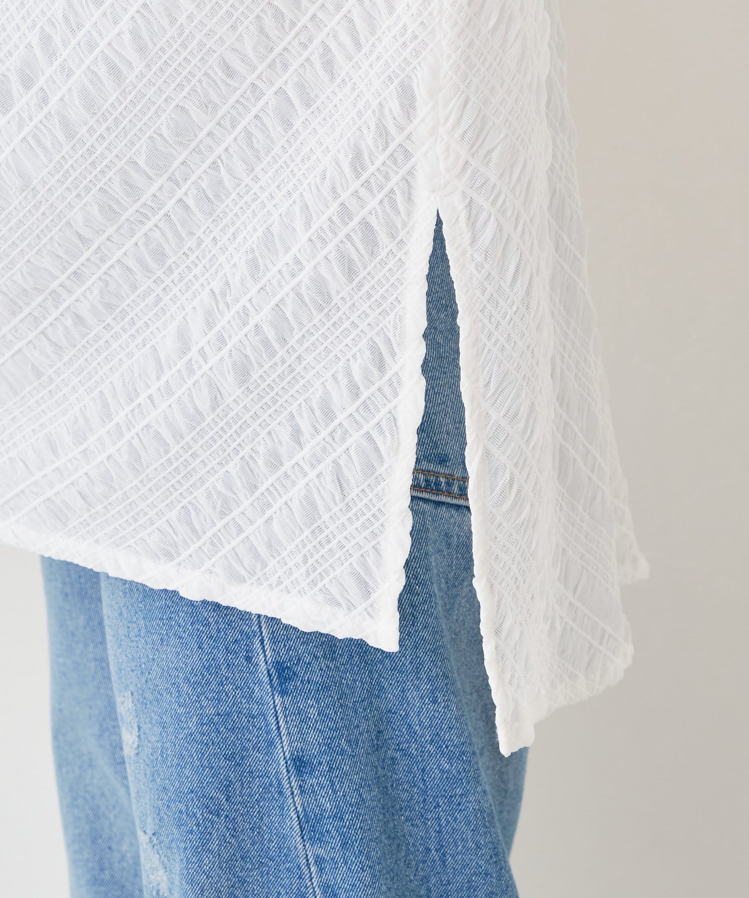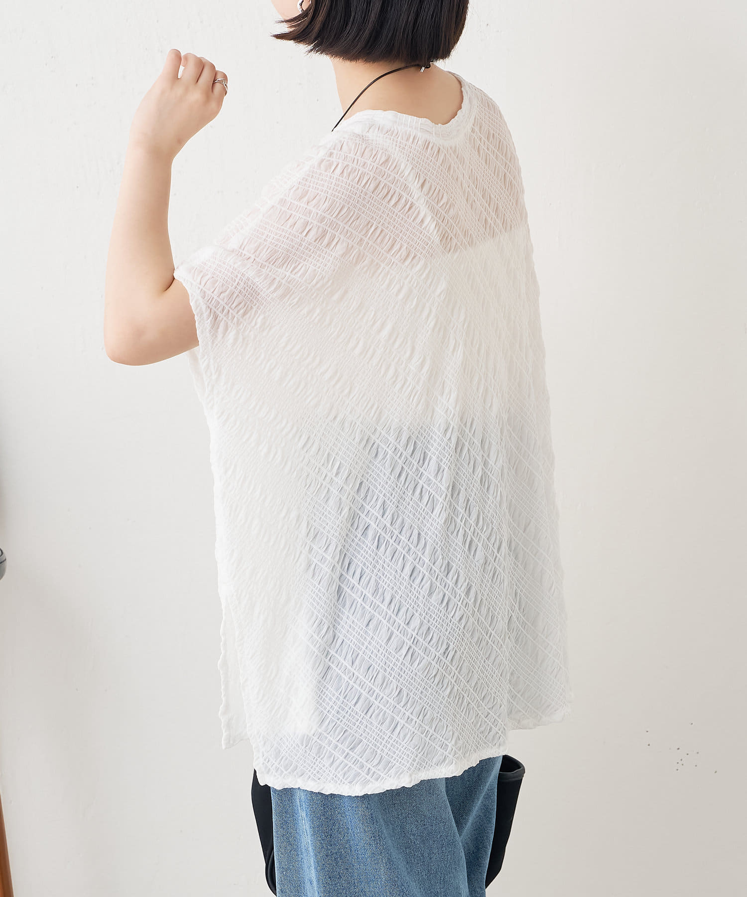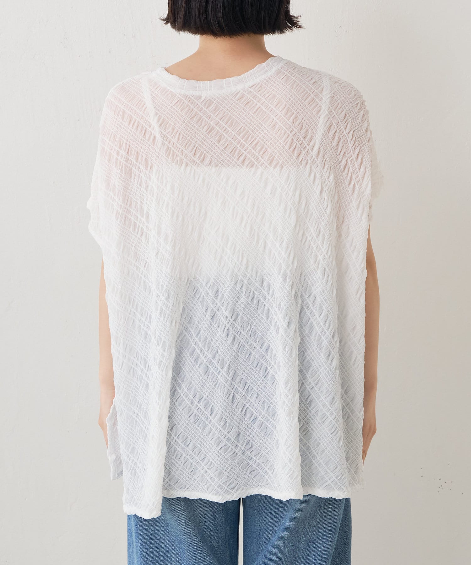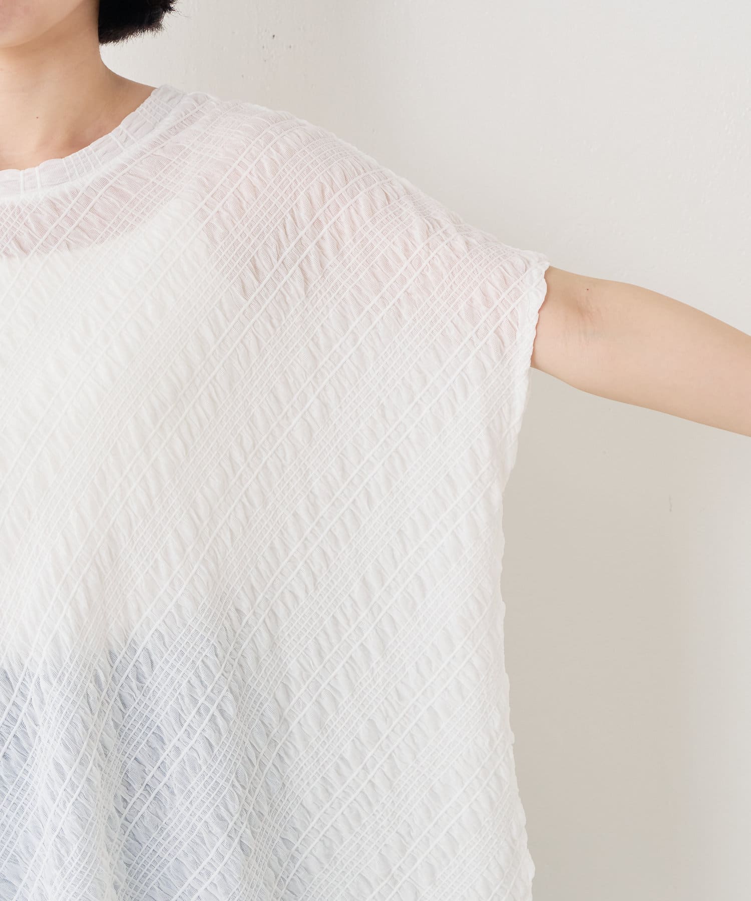 ・フクレジャガード生地がソフトタッチな質感で、清涼感があり初夏にぴったりの一枚です。