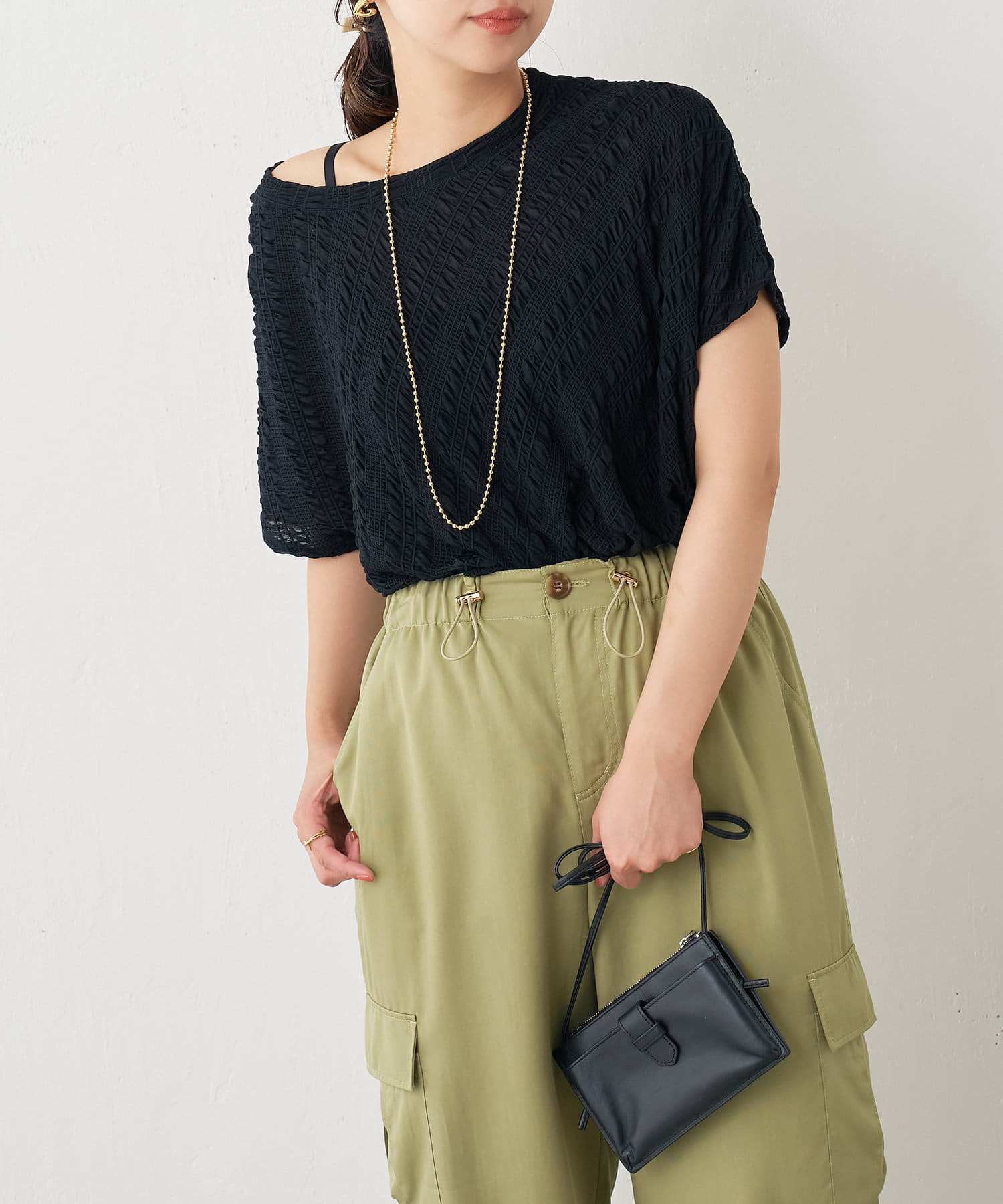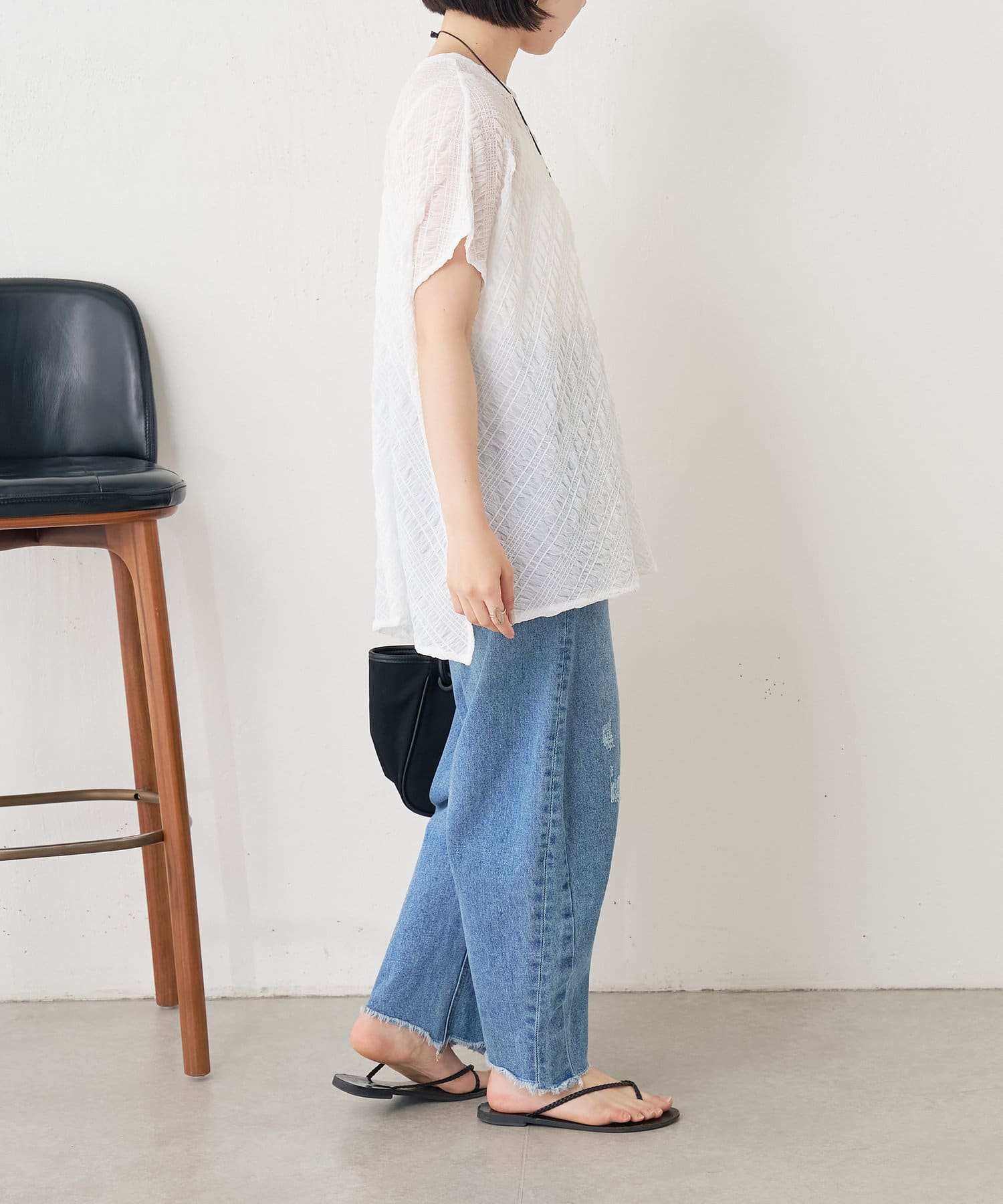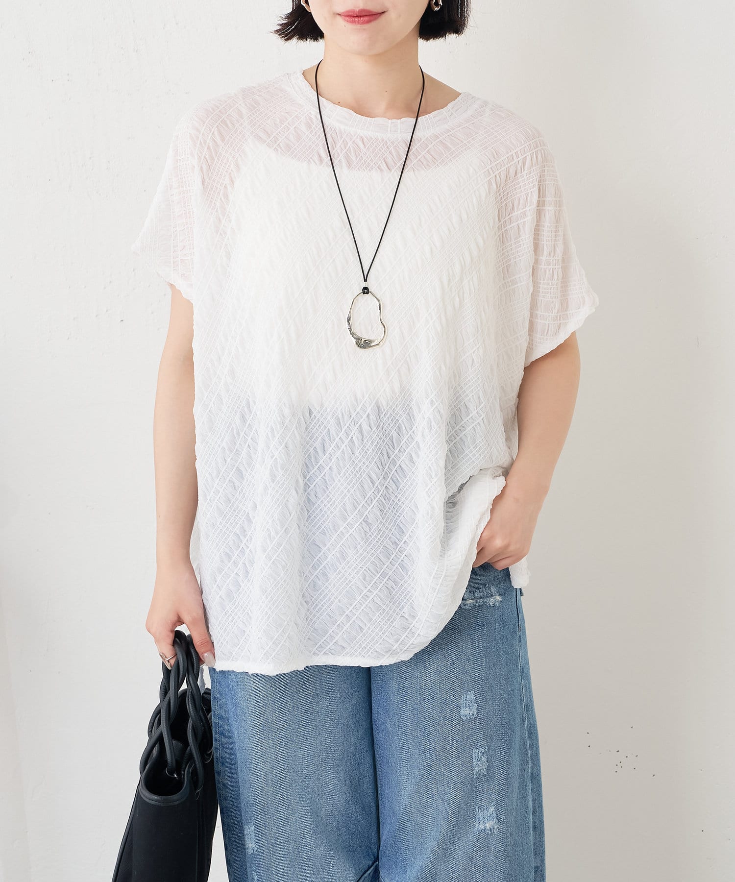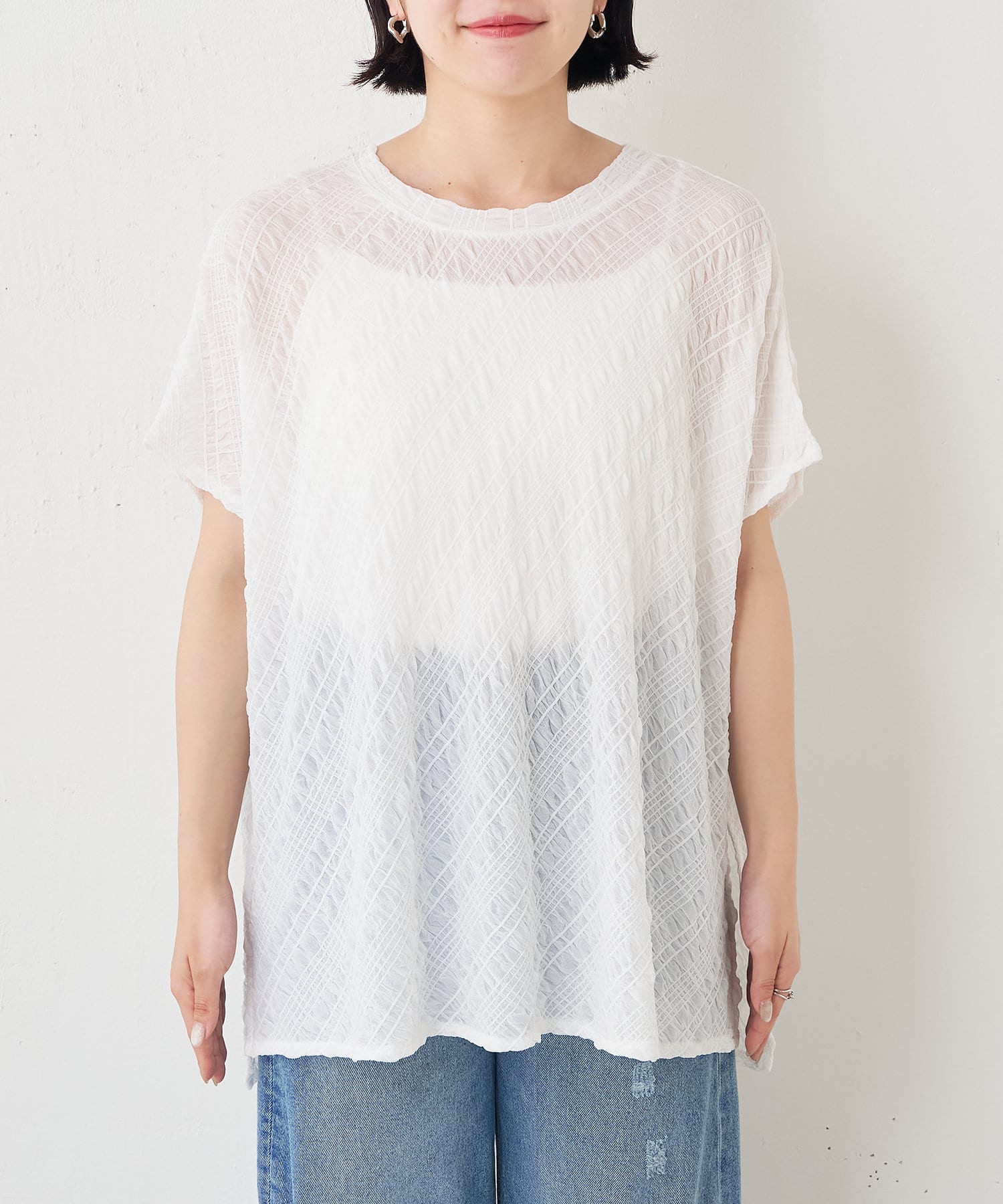 ・フクレジャガード生地がソフトタッチな質感で、清涼感があり初夏にぴったりの一枚です。